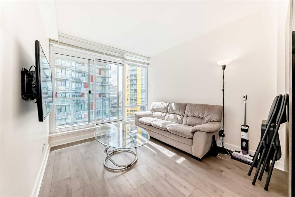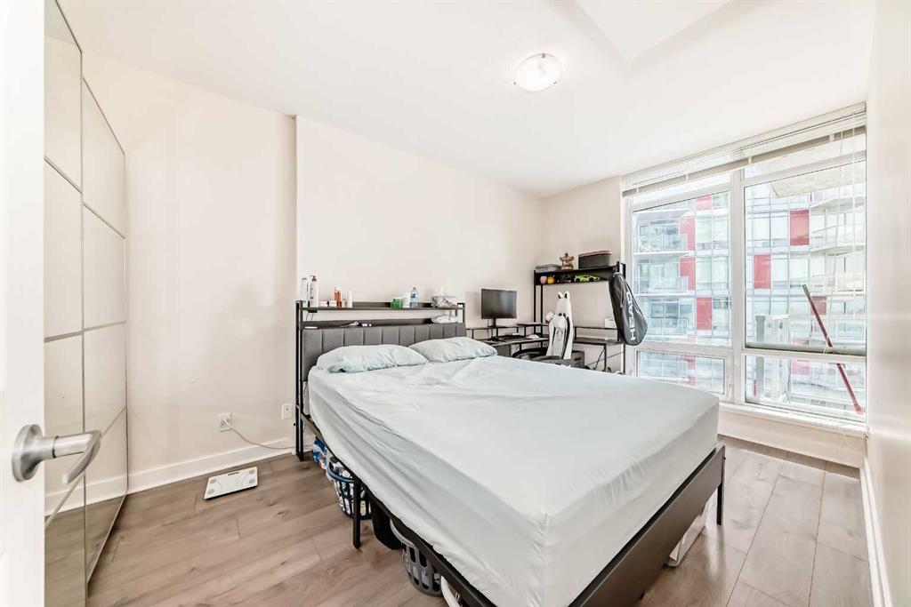 await you. This spacious unit features an open-concept design with floor-to-ceiling windows that bathe the space in natural light. The bedroom is