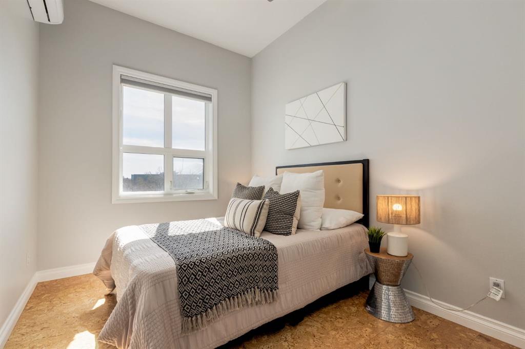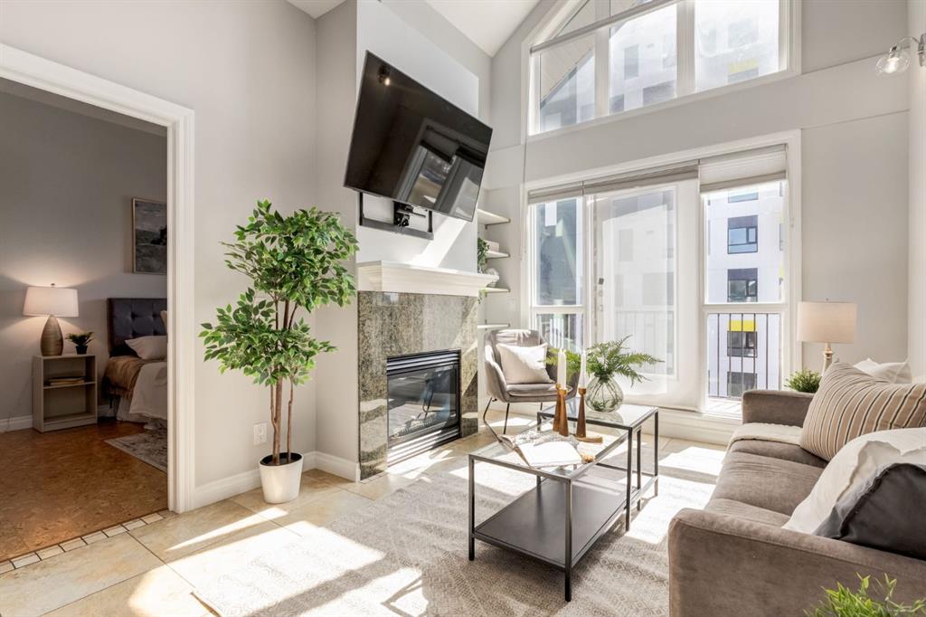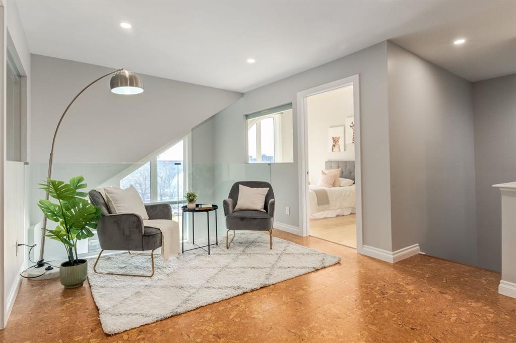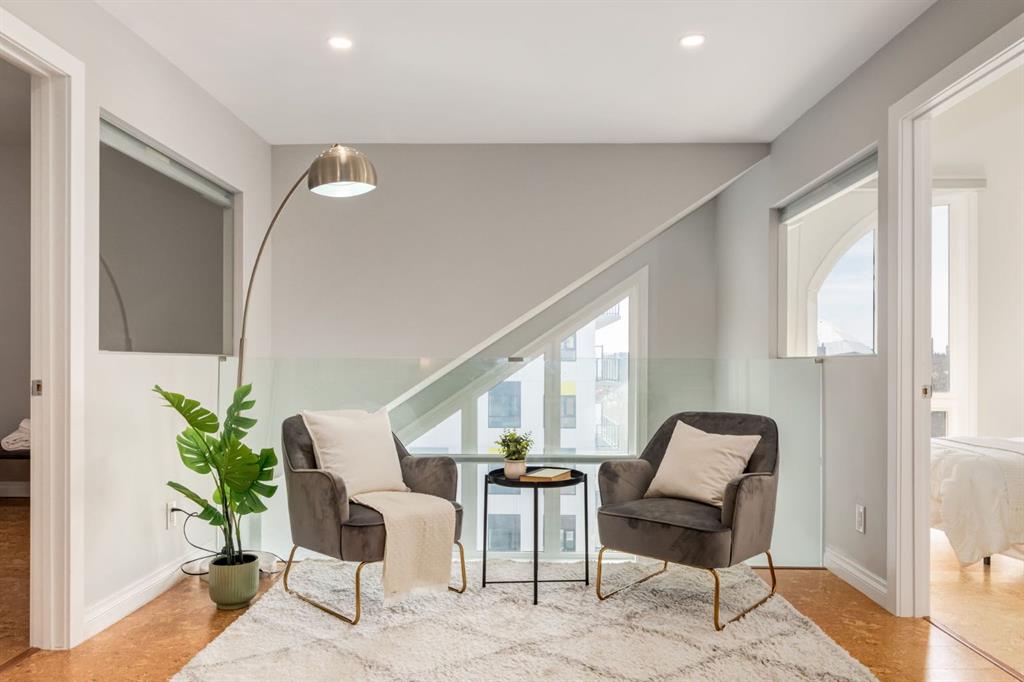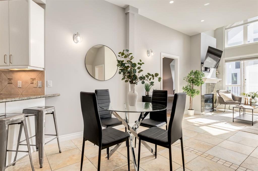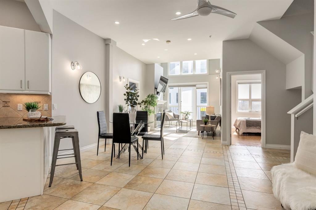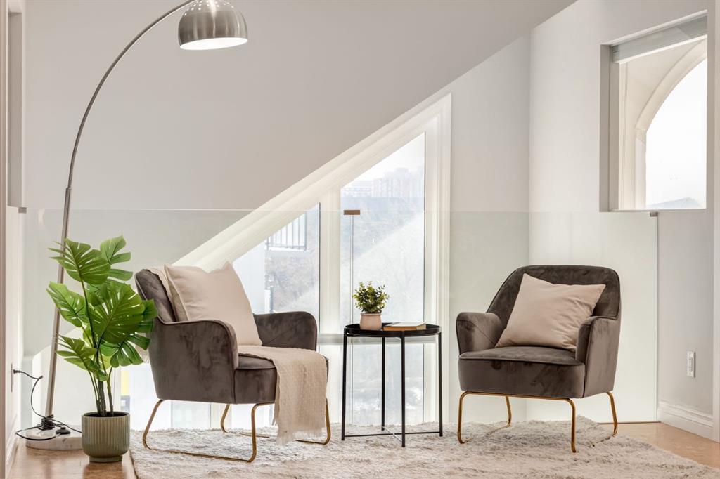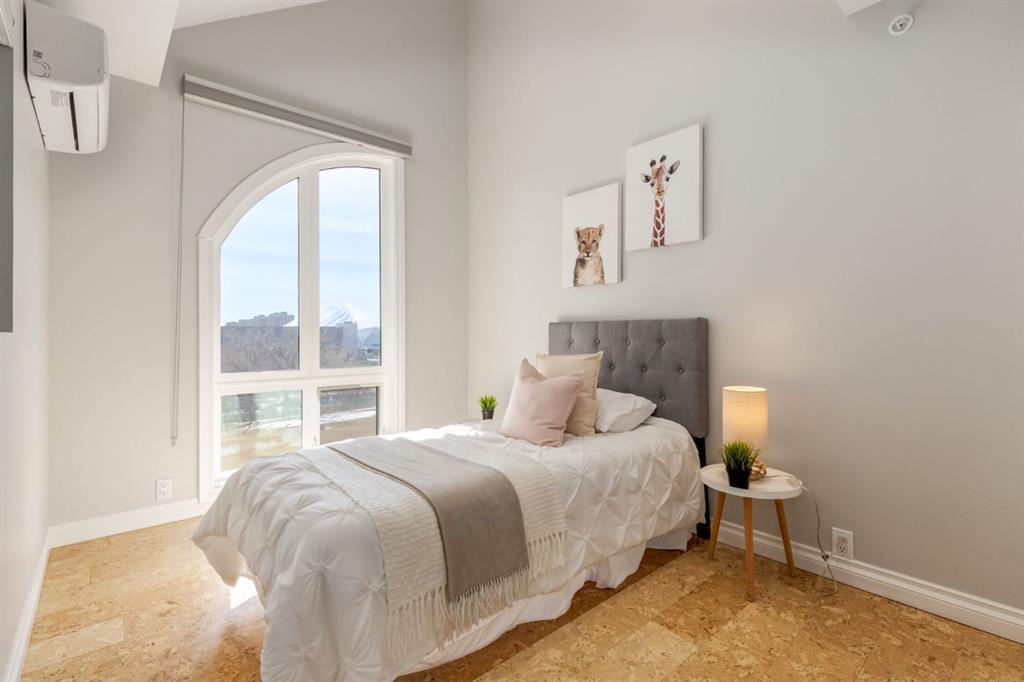 This spectacular, one of a kind four-bedroom penthouse loft offers unparalleled luxury lifestyle in trendy Mission, offers 4 bedroom, 1,791sqft of space, the feel of a large two-storey home, and an unbelievably low condo fee. This crown jewel, top floor home showcases soaring 19ft vaulted ceilings, three full bathrooms, air conditioning, is flooded with natural light through enormous south facing windows and has the character and charm that is hard to find in today’s cookie-cutter world. Located just steps from the Elbow River, Stampede Park, MNP Center, transit, and all the amenities downtown and 17th Ave have to offer, this unique home is an unforgettable masterpiece. As you enter, you are greeted by a sprawling front entryway with a large coat closet, and room for bench seating. The entryway leads to your expansive, open-concept living space that showcases massive south facing windows, and boasts 10-foot ceilings with a 19ft vault over the living room. The stylish kitchen features granite countertops, bar seating, stainless steel appliances, and timeless white cabinetry. Just off the kitchen, your dining space flows perfectly with room to host family and friends. Your eye will be naturally drawn to your impressive living room with a striking gas fireplace with an elegant tile surround and classic, white mantle. The living room is drenched with natural light through vast windows that reach up to the vaulted ceiling. Step outside onto your south facing balcony that comes complete with natural gas and provides views of the river valley and Stampede Park. The main floor showcases your sprawling primary suite with vaulted ceilings, room for king-sized furniture and a designated seating nook. The primary bedroom has two large walk-in closets, and an enormous ensuite bathroom that features a large soaker tub and stand-up shower. The main floor also has a large second bedroom with warm cork flooring and is completed by a 4-piece bathroom with granite countertops, and laundry. Upstairs has been completely re-imagined and renovated in 2019, providing a one-of-a-kind layout, and extra square footage. The upper level is dripping with elegance and includes two additional large bedrooms, and a quaint sitting area overlooking the Elbow River. The upper-level features warm cork flooring, and a bonus space that is perfect for crafts, playing, work, or as a secondary media space. The upper level also boasts a sprawling kitchenette that provides can be used as a bar space, a secondary kitchen, or for your creative business endeavours. The upper level is finished by a beautiful 4-piece bathroom with dual vanities, and a sophisticated stand-up shower with elegant niche and stunning white tile. This masterfully designed home has the space and feel to provide an incredible home for your family while still enjoying the benefits of inner-city living. Featuring A/C throughout, a separate storage unit, and the feel of a detached home, this stunning penthouse is a one-of-a-kind opportunity.