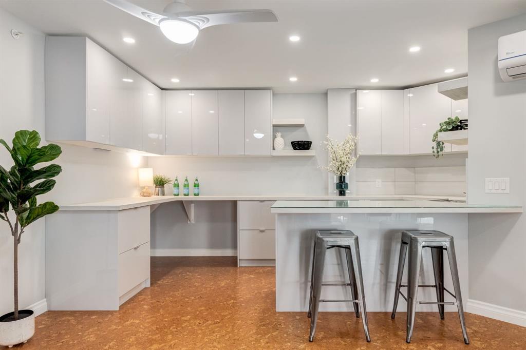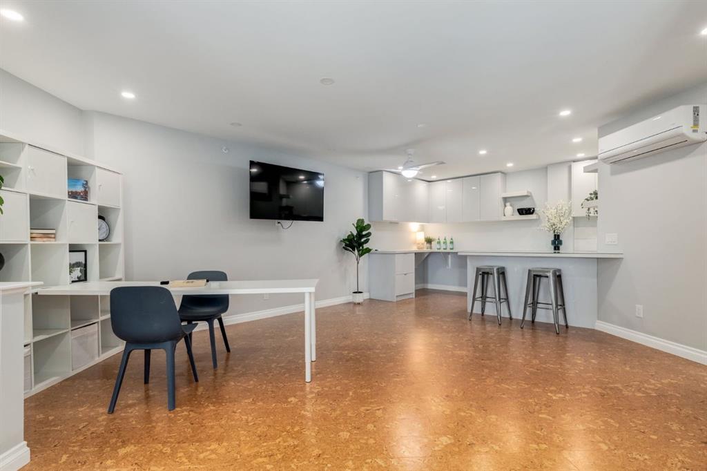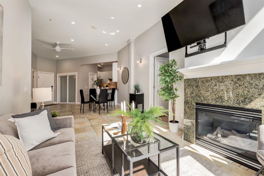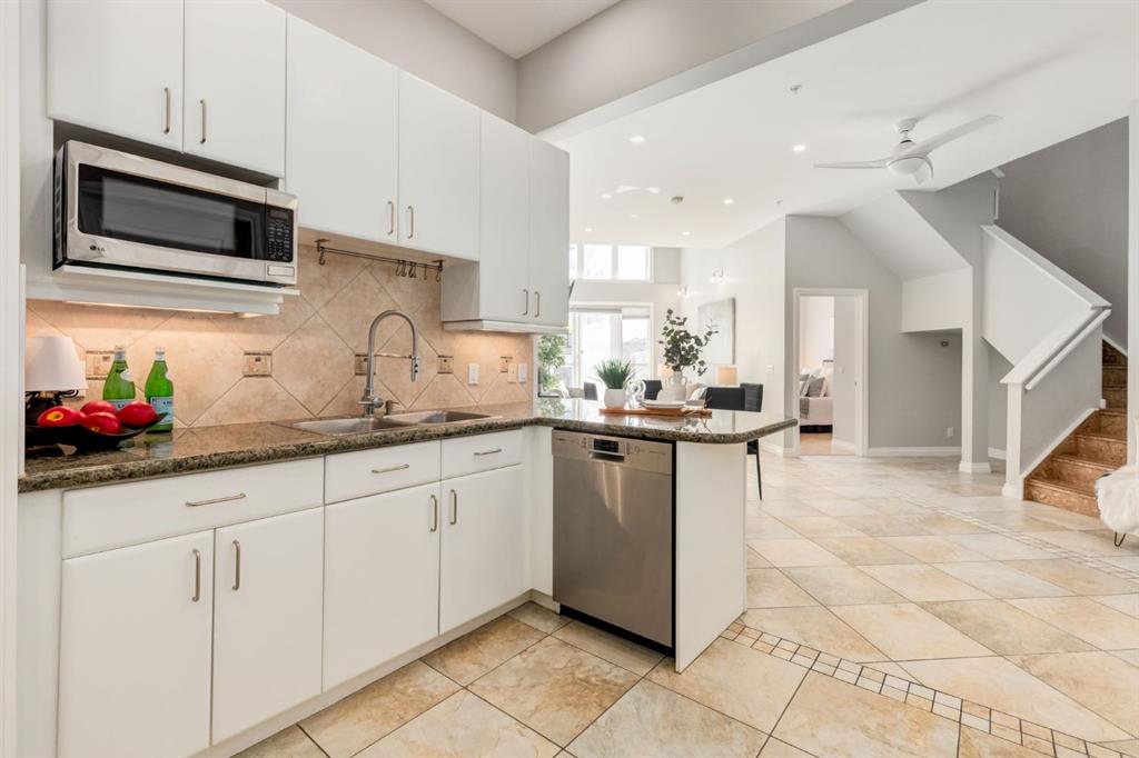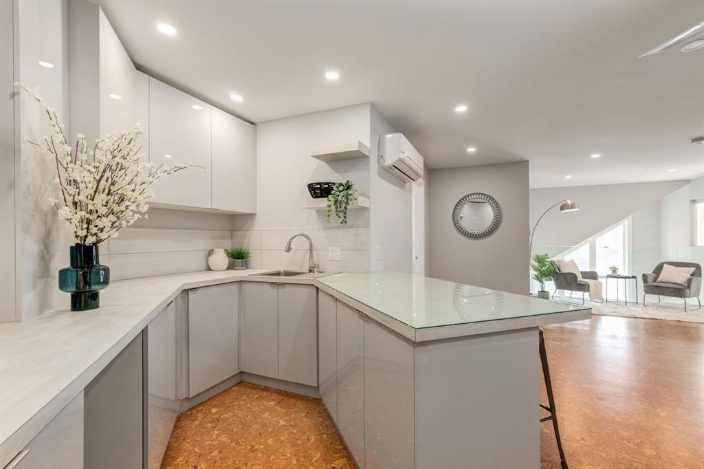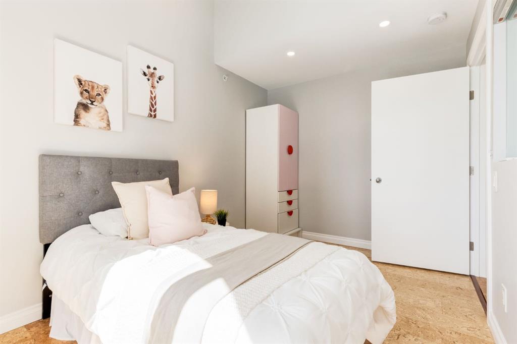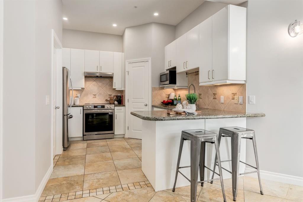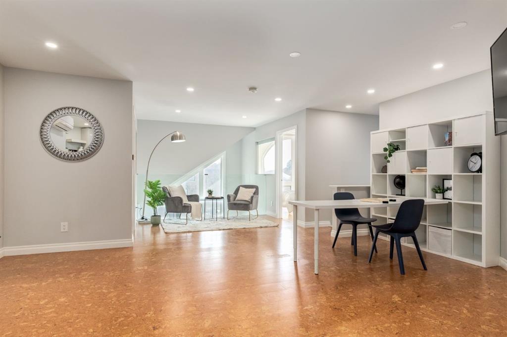 This spectacular, one of a kind four-bedroom penthouse loft offers unparalleled luxury lifestyle in trendy Mission, offers 4 bedroom, 1,791sqft of space, the feel of a large two-storey home, and an unbelievably low condo fee. This crown jewel, top floor home showcases soaring 19ft vaulted ceilings, three full bathrooms, air conditioning, is flooded with natural light through enormous south facing windows and has the character and charm that is hard to find in today’s cookie-cutter world. Located just steps from the Elbow River, Stampede Park, MNP Center, transit, and all the amenities downtown and 17th Ave have to offer, this unique home is an unforgettable masterpiece. As you enter, you are greeted by a sprawling front entryway with a large coat closet, and room for bench seating. The entryway leads to your expansive, open-concept living space that showcases massive south facing windows, and boasts 10-foot ceilings with a 19ft vault over the living room. The stylish kitchen features granite countertops, bar seating, stainless steel appliances, and timeless white cabinetry. Just off the kitchen, your dining space flows perfectly with room to host family and friends. Your eye will be naturally drawn to your impressive living room with a striking gas fireplace with an elegant tile surround and classic, white mantle. The living room is drenched with natural light through vast windows that reach up to the vaulted ceiling. Step outside onto your south facing balcony that comes complete with natural gas and provides views of the river valley and Stampede Park. The main floor showcases your sprawling primary suite with vaulted ceilings, room for king-sized furniture and a designated seating nook. The primary bedroom has two large walk-in closets, and an enormous ensuite bathroom that features a large soaker tub and stand-up shower. The main floor also has a large second bedroom with warm cork flooring and is completed by a 4-piece bathroom with granite countertops, and laundry. Upstairs has been completely re-imagined and renovated in 2019, providing a one-of-a-kind layout, and extra square footage. The upper level is dripping with elegance and includes two additional large bedrooms, and a quaint sitting area overlooking the Elbow River. The upper-level features warm cork flooring, and a bonus space that is perfect for crafts, playing, work, or as a secondary media space. The upper level also boasts a sprawling kitchenette that provides can be used as a bar space, a secondary kitchen, or for your creative business endeavours. The upper level is finished by a beautiful 4-piece bathroom with dual vanities, and a sophisticated stand-up shower with elegant niche and stunning white tile. This masterfully designed home has the space and feel to provide an incredible home for your family while still enjoying the benefits of inner-city living. Featuring A/C throughout, a separate storage unit, and the feel of a detached home, this stunning penthouse is a one-of-a-kind opportunity.