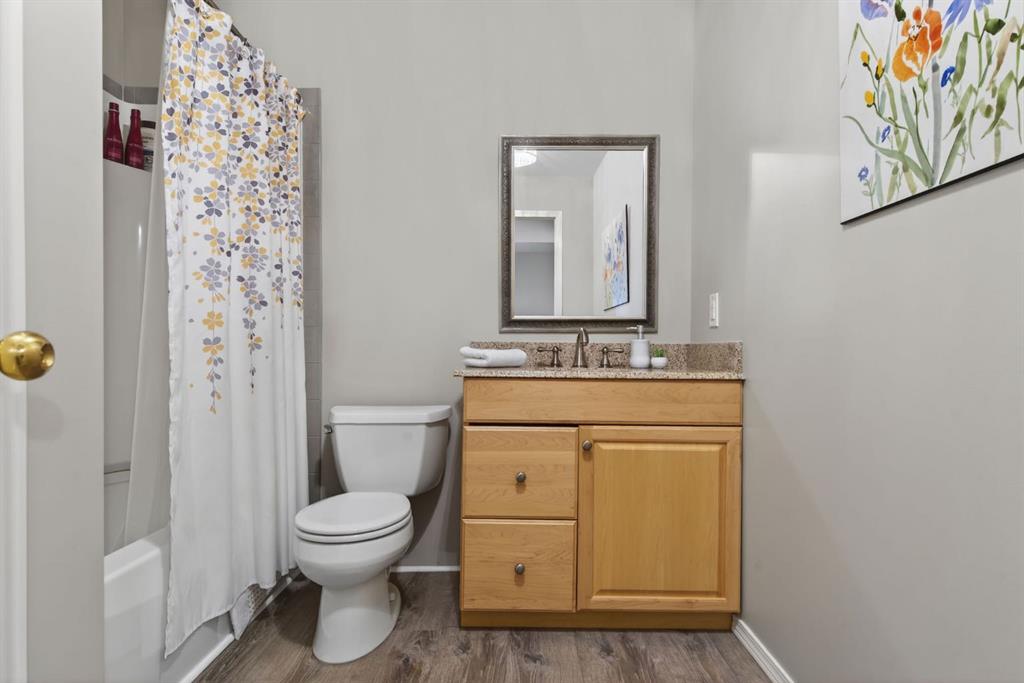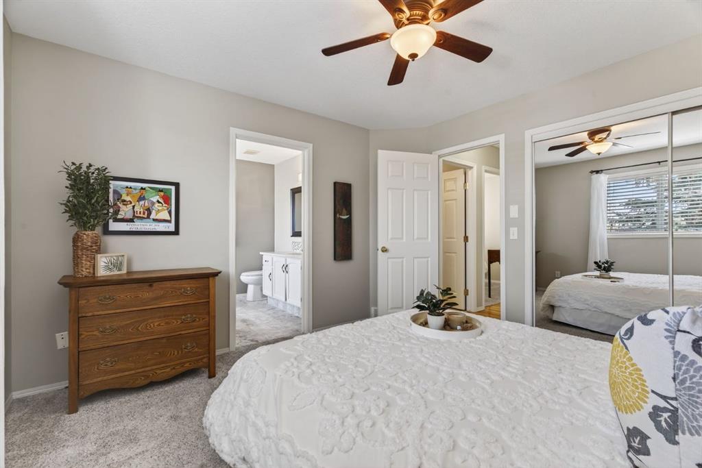 Welcome to easy, comfortable living in this well-maintained bungalow in the desirable lake community of Crystalridge. Perfect for those looking to simplify without sacrificing space, this home has been lovingly cared for by its original owner and offers main floor convenience plus a fully developed walkout lower level with 9 foot ceilings for guests, hobbies, or extended family. The main floor features a bright, functional layout with living and dining areas that flow seamlessly. The kitchen offers ample white cabinetry and workspace, as well as some newer appliances and recently upgraded quartz counters. On the same floor, the spacious primary bedroom includes a private ensuite and custom closet organizers. A second bedroom and full bathroom on the main level provide flexibility for guests or a home office. Downstairs, the walkout basement has a large recreation area and a third large bedroom, creating the perfect space for entertaining or hosting visitors while maintaining privacy. The attached garage features epoxy flooring and lots of shelving. Recent updates to the home include a new furnace, hot water tank and roof within the last 5 years. Kitchen was done 4 years ago as well as paint throughout the home, counters and floors in bathrooms, carpet throughout the upstairs, the front deck with composite as well as glass railing and the railing inside the home. Outside, the low maintenance backyard is ideal for relaxing