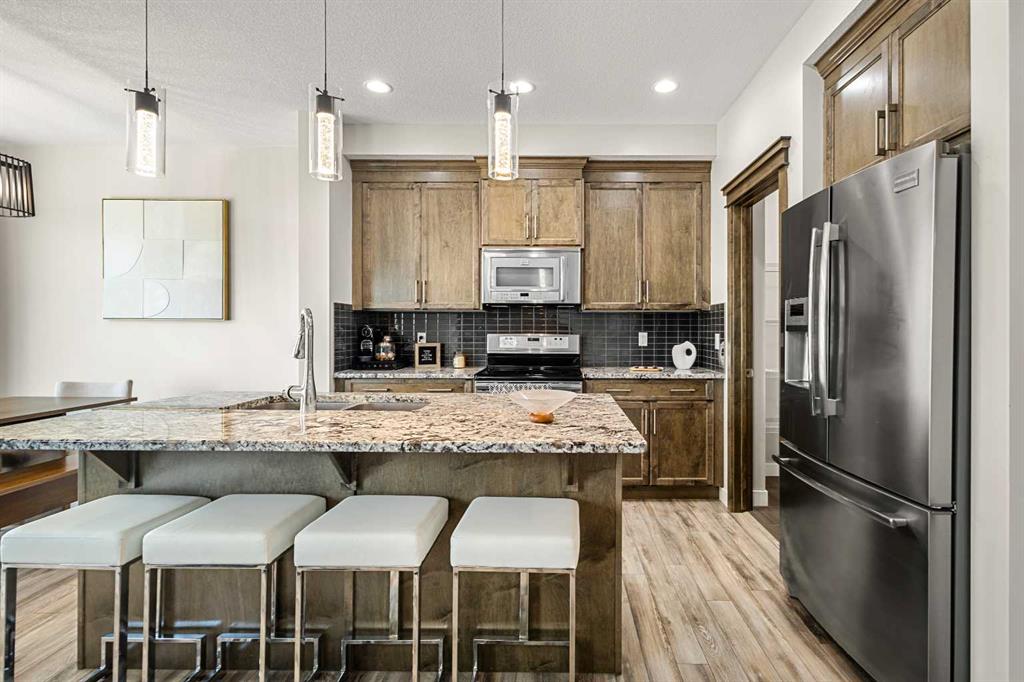 This home stands out with 9-foot ceilings on all three levels, creating an elevated sense of space and light throughout. The main floor showcases a bright and inviting open-concept design, centered around a cozy fireplace that anchors the living area. Expansive windows flood the home with natural sunlight, while beautiful crown moulding throughout adds a refined, upscale touch. The kitchen is thoughtfully designed with granite countertops, upgraded stainless steel appliances, modern cabinetry, and a central island—ideal for both entertaining and daily living.