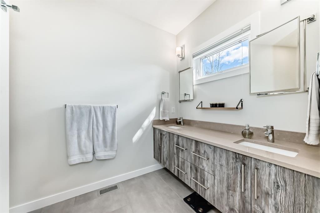 The primary retreat is a true standout, showcasing vaulted ceilings that create an airy, luxurious feel. A large walk-in closet, and large ensuite bathroom featuring a double vanity and IN-FLOOR HEAT. Downstairs, the fully finished basement expands your living space with a stylish wet bar, additional bedroom, full bathroom (with in-floor heat!), storage, and a cozy lounge area—perfect for guests, relaxing evenings at home, or entertaining!