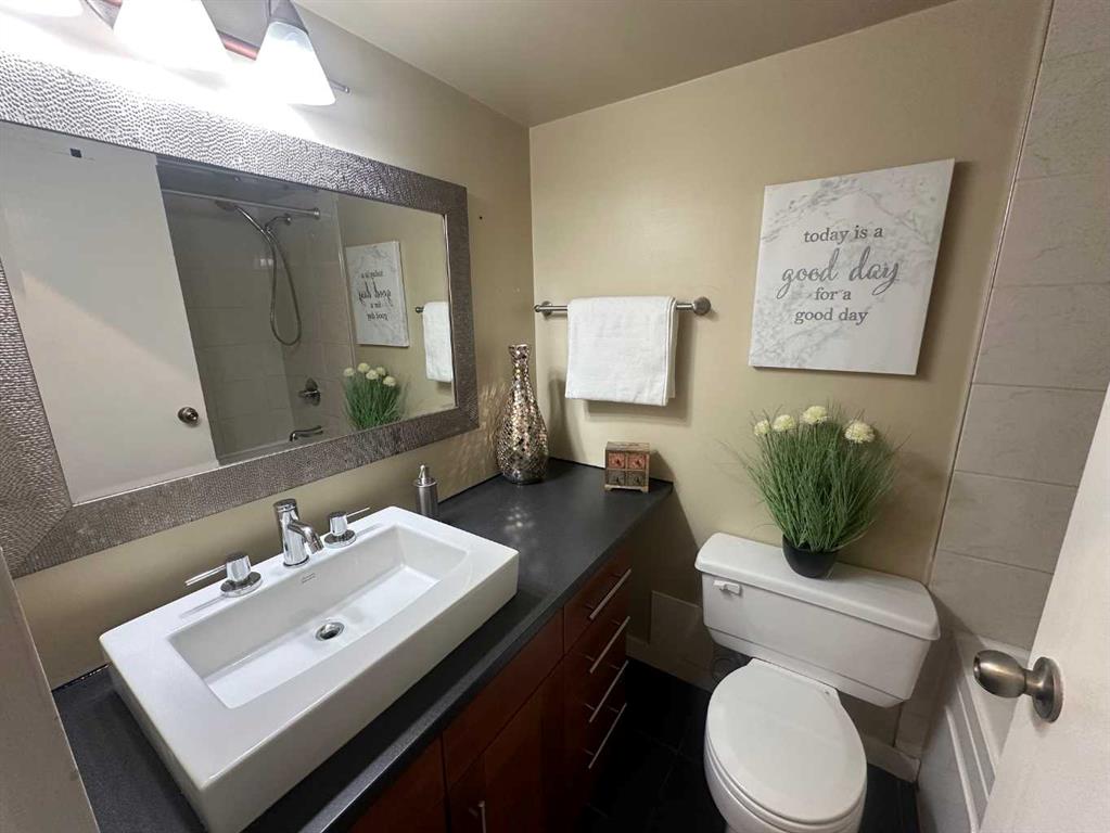 Wow, what an absolutely gorgeous condo!!! This spectacular unit is totally updated & modern, with thousands of dollars in renovations recently spent to create one of the most hip & stylish homes around! SHOW SUITE CONDITION. This wonderful condo features deluxe laminate hardwood floors, a very bright & open kitchen with raised eating bar, new cabinets & counter tops, a mosaic tile backsplash, stainless steel appliances, and a spacious living room with a sunny south facing balcony. Located in the very popular concrete building THE PALISADES. The complex is extremely well maintained and boosts a very healthy 2.5 million dollar reserve fund. The building features a beautiful indoor salt water pool, sauna, and a large exercise facility. Condo fees include all the basics including electricity. Only steps to the trendy shops & restaurants of 17th Avenue or a 5 min walk to downtown Calgary. THIS IS THE HOME YOU’VE BEEN DREAMING OF…