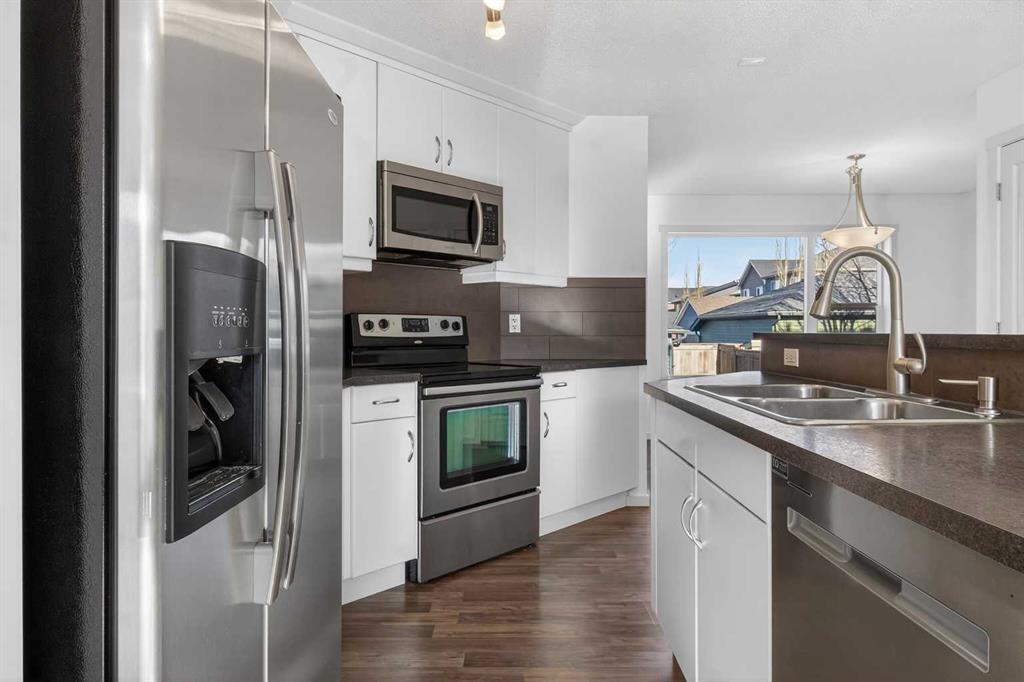 This beautifully presented END-UNIT townhouse offers exceptional value and functionality, The best part? It’s not a condo—so NO CONDO FEES, and it truly feels and functions more like a semi-detached home at townhouse pricing. Offering an incredibly rare, OVERSIZED BACKYARD with tons of grass, this outdoor space is perfect for children, pets, and all kinds of activities. Inside, the open and flowing main floor features a central, functional kitchen with island and breakfast bar, large windows that flood the home with natural light, and a dining area with direct access to a deck, making indoor-outdoor living a breeze. Upstairs are THREE FULL BEDROOMS—a standout feature in the neighbourhood where many townhomes offer only two—including a spacious primary bedroom with ensuite, plus an additional 4-piece bathroom. The basement is wide open and awaiting your customization, offering ample room for a large rec room, an additional bedroom, and is roughed-in for a bathroom. Completing the package is a DOUBLE DETACHED GARAGE with space for two vehicles, tools, bikes, and extra storage, along with beautiful curb appeal showcased by modern colours and a welcoming exterior. Ideally located in desirable Evanston, this family-oriented community is close to great schools, parks, amenities, and offers a friendly atmosphere where you can truly get to know your neighbours.