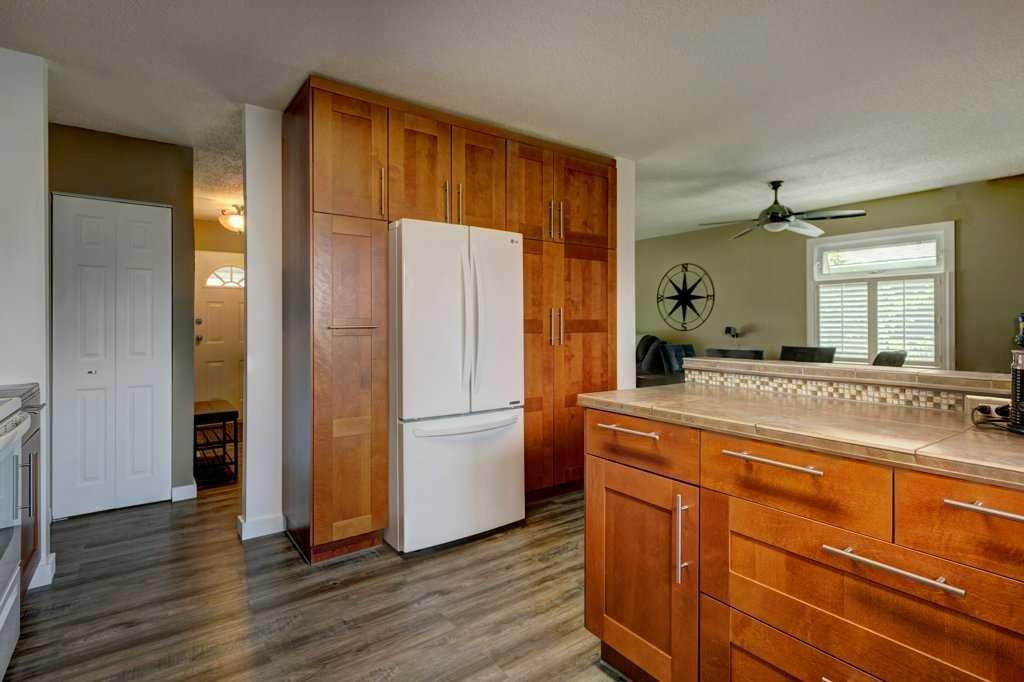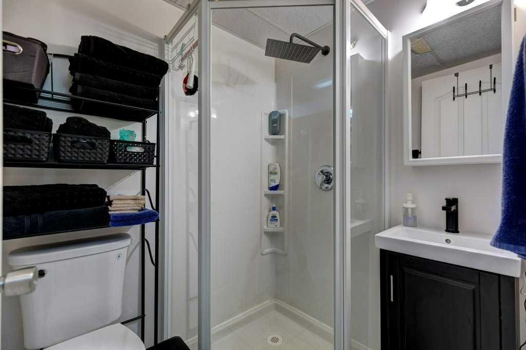 The main level is thoughtfully designed, featuring durable luxury vinyl plank flooring and custom blinds and shutters throughout. At the heart of the home is a professionally renovated kitchen, complete with stone countertops, full-height cabinetry, built in pantry, and tasteful finishes that balance both form and function. The main-floor bathroom has also been updated with a clean, modern aesthetic and a practical 3-piece layout, featuring a large trough sink, walk-in shower and stylish tile.
