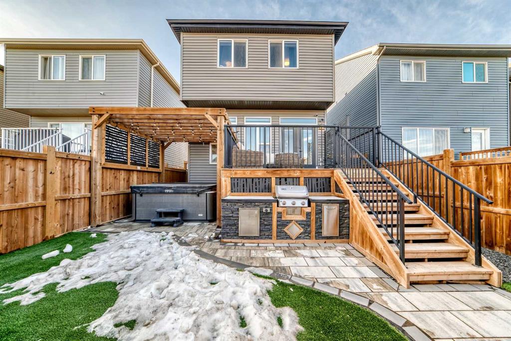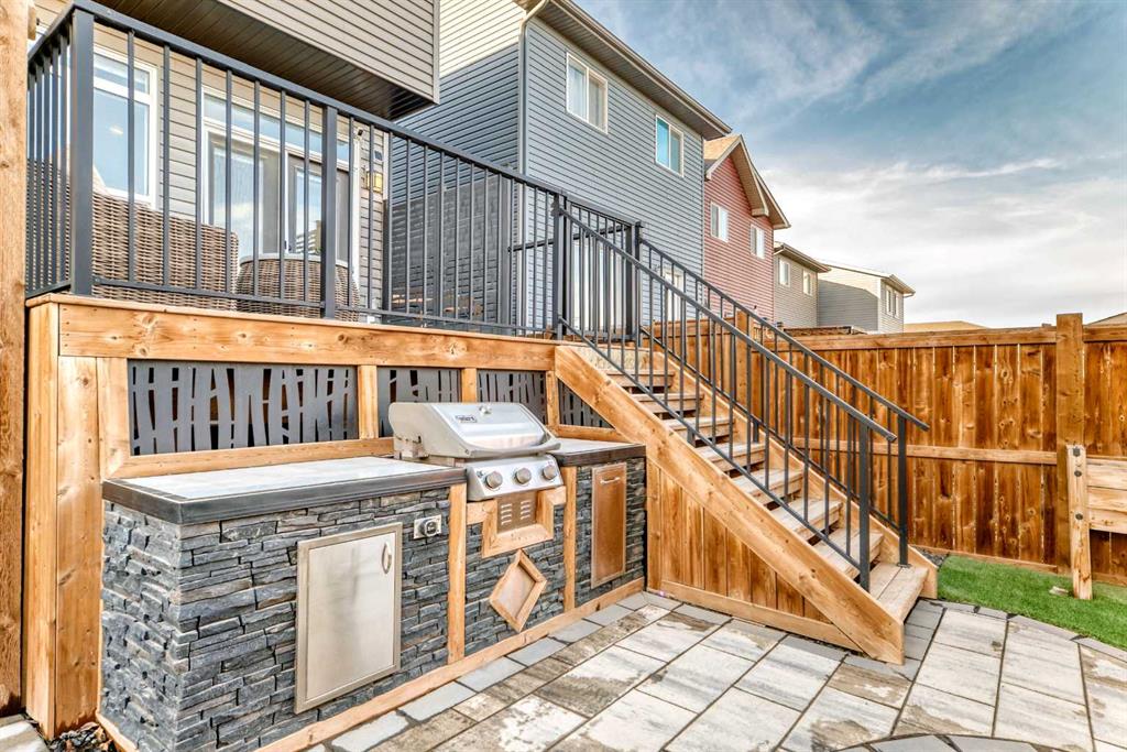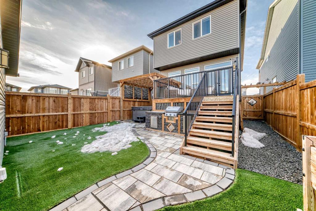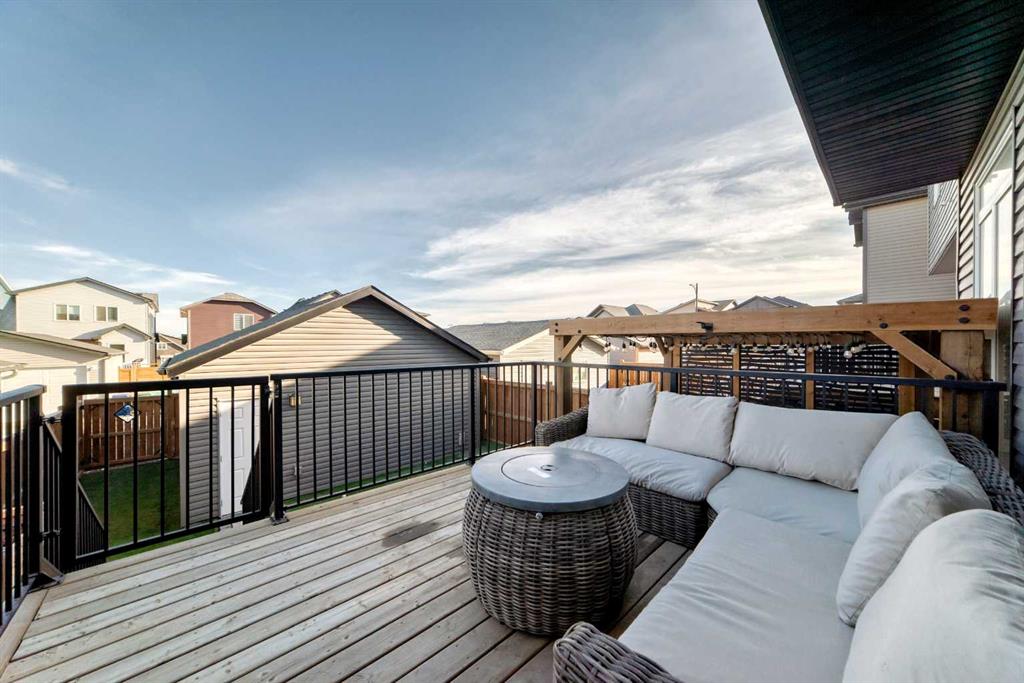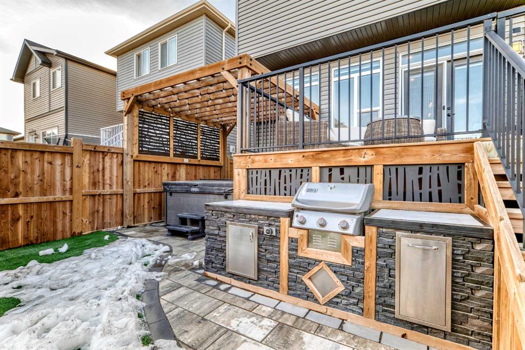 ** OPEN HOUSES, SAT. FEB. 14, 12-2PM & SUN. FEB. 15, 2-4PM ** Welcome to this stunning, completely move-in ready home in the sought-after community of Chinook Gate. Meticulously maintained and beautifully finished, the pride of ownership is evident from the moment you step through the front door. A generous west-facing office/den offers the perfect work-from-home space, filled with natural light. The bright, open-concept main living area is both functional and stylish, featuring a beautiful kitchen with upgraded lighting, a large island, pantry, ample cupboard space and gas stove. Timeless blue cabinetry paired with grey stone countertops creates a warm yet sophisticated atmosphere. The east-facing living room is a true showpiece, highlighted by an electric fireplace with a shiplap feature wall, natural wood mantle, and custom built-in shelving. An entire wall of windows floods the space with morning light. Both the front and backyard have been thoughtfully landscaped with low-maintenance turf. The backyard is an entertainer’s dream, complete with a large deck, a built-in outdoor kitchen with BBQ, pergola and stone walkway — a space you’ll never want to leave. Upstairs, you’ll find a spacious bonus room and three bedrooms, including a large primary retreat featuring a 4 piece ensuite, a walk-in closet and incredible west-facing private balcony — the perfect place to enjoy your morning coffee. Convenient upper-floor laundry adds to the home’s thoughtful design. The fully finished basement expands your living space with a fourth bedroom, generous recreation area, full bathroom, and plenty of storage. Additional highlights include air conditioning for summer comfort and a double detached garage for secure parking. There is truly nothing missing in this exceptional home — simply move in and start making memories. Located in the vibrant community of Chinook Gate, residents enjoy year-round family events such as community BBQs, summer movie nights, and Easter egg hunts. Just a block from a park and minutes to Chinook Winds Park, schools (elementary through high school), and all amenities, this location offers the perfect blend of lifestyle and convenience.