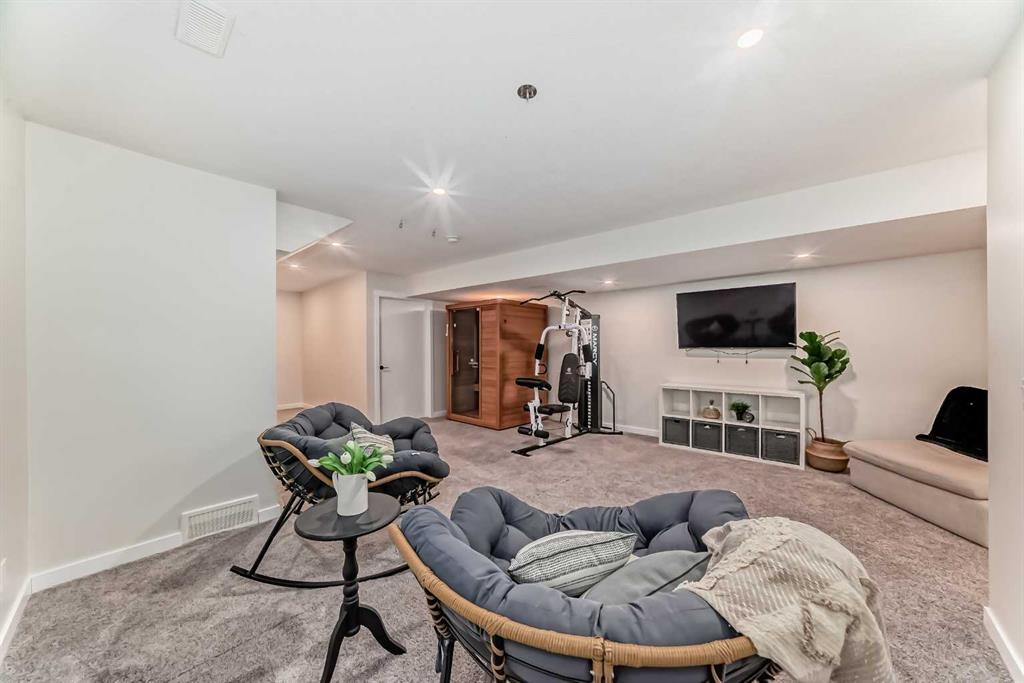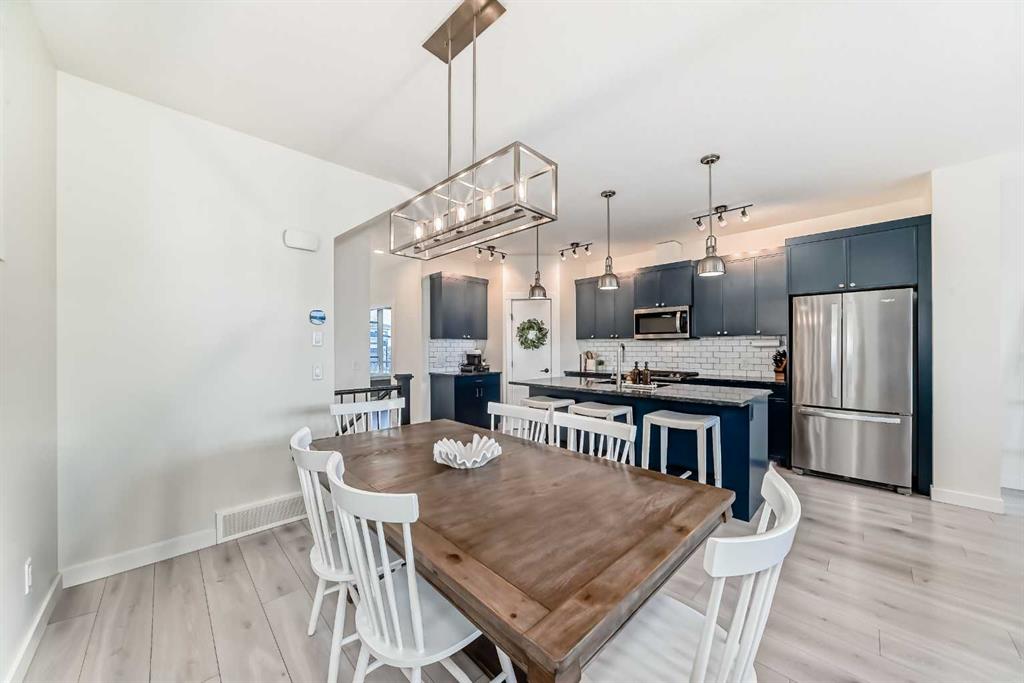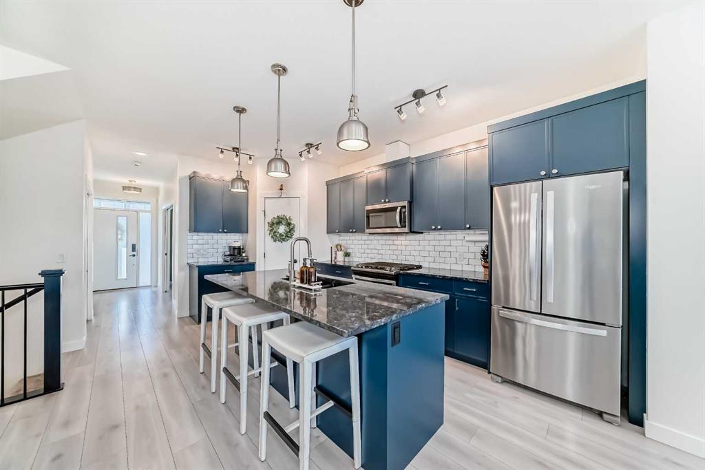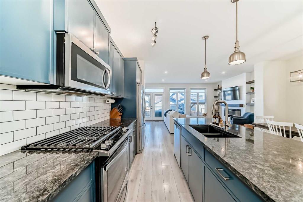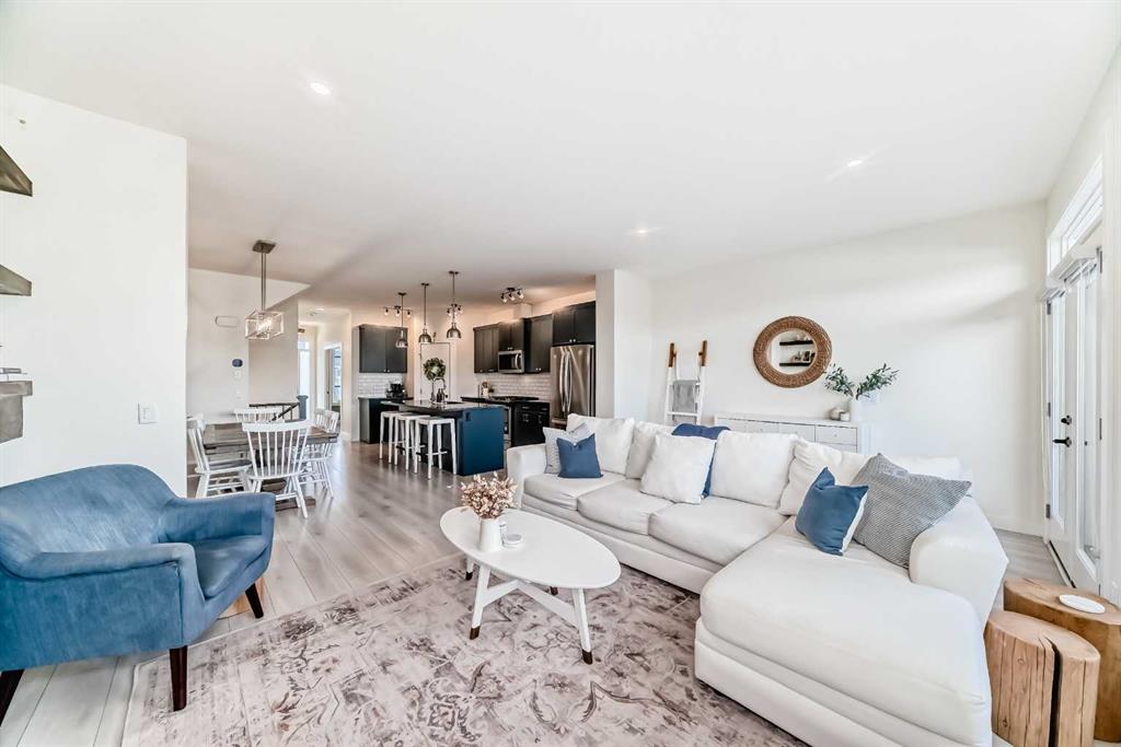 ** OPEN HOUSES, SAT. FEB. 14, 12-2PM & SUN. FEB. 15, 2-4PM ** Welcome to this stunning, completely move-in ready home in the sought-after community of Chinook Gate. Meticulously maintained and beautifully finished, the pride of ownership is evident from the moment you step through the front door. A generous west-facing office/den offers the perfect work-from-home space, filled with natural light. The bright, open-concept main living area is both functional and stylish, featuring a beautiful kitchen with upgraded lighting, a large island, pantry, ample cupboard space and gas stove. Timeless blue cabinetry paired with grey stone countertops creates a warm yet sophisticated atmosphere. The east-facing living room is a true showpiece, highlighted by an electric fireplace with a shiplap feature wall, natural wood mantle, and custom built-in shelving. An entire wall of windows floods the space with morning light. Both the front and backyard have been thoughtfully landscaped with low-maintenance turf. The backyard is an entertainer’s dream, complete with a large deck, a built-in outdoor kitchen with BBQ, pergola and stone walkway — a space you’ll never want to leave. Upstairs, you’ll find a spacious bonus room and three bedrooms, including a large primary retreat featuring a 4 piece ensuite, a walk-in closet and incredible west-facing private balcony — the perfect place to enjoy your morning coffee. Convenient upper-floor laundry adds to the home’s thoughtful design. The fully finished basement expands your living space with a fourth bedroom, generous recreation area, full bathroom, and plenty of storage. Additional highlights include air conditioning for summer comfort and a double detached garage for secure parking. There is truly nothing missing in this exceptional home — simply move in and start making memories. Located in the vibrant community of Chinook Gate, residents enjoy year-round family events such as community BBQs, summer movie nights, and Easter egg hunts. Just a block from a park and minutes to Chinook Winds Park, schools (elementary through high school), and all amenities, this location offers the perfect blend of lifestyle and convenience.