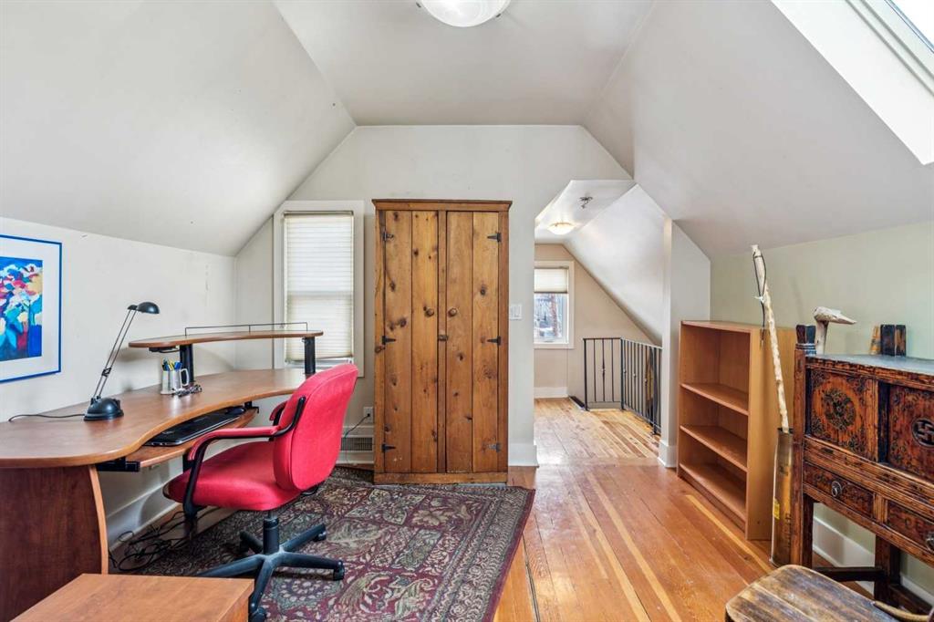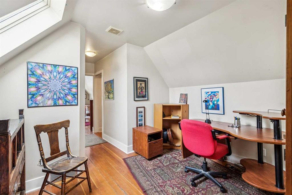 OPEN HOUSE APRIL 5th 2-4pm! Welcome to this charming 1.5-storey home in the heart of vibrant Bridgeland one of Calgary’s most sought-after inner-city communities. Blending timeless character with thoughtful updates, this home features hardwood floors, an open-concept main level, and beautiful natural light throughout with sunny east-facing mornings and warm west-facing evenings. The main floor offers a functional and inviting layout, complete with a SEPERATE ROOM with a versatile Murphy bed which is perfect for guests or a flexible home office, along with a full bathroom featuring a classic clawfoot tub. The original brick chimney adds warmth and charm, creating a cozy yet stylish living space. Upstairs, you’ll find a spacious primary retreat filled with natural light, complete with a walk-in closet, a large shower in the bathroom, and a dedicated home office setup – ideal for today’s lifestyle. The outdoor spaces are just as impressive. Enjoy your morning coffee on the sunny back deck, relax in the shaded garden by the fire pit, or take in the beauty of the garden especially stunning in the spring. Designed for both entertaining and everyday enjoyment, this home offers a seamless indoor-outdoor experience. Additional highlights include a well-appointed kitchen with ample storage, a quiet lower-level den perfect for guests with easy access to a full bath, and a detached garage (no scraping or plugging in during winter) plus unrestricted street parking. Unbeatable location just steps to all that Bridgeland has to offer. Walk to your favourite coffee shops, local restaurants, Bridgeland Market, and the popular summer farmer’s market. With the Bow River pathways and LRT just blocks away, commuting downtown is effortless whether by foot, bike, or transit. A rare opportunity to enjoy character, comfort, and an exceptional lifestyle in one of Calgary’s most beloved communities.