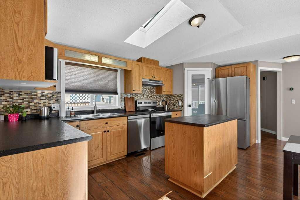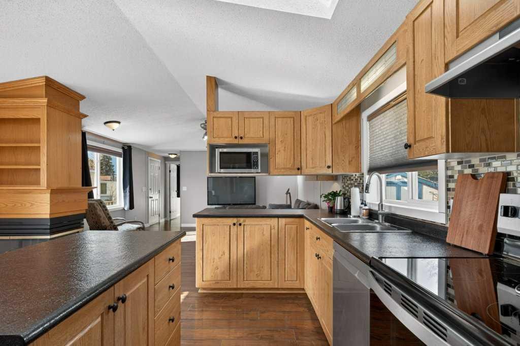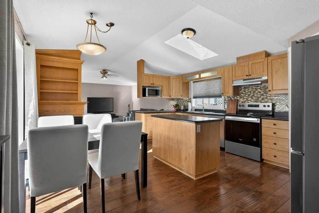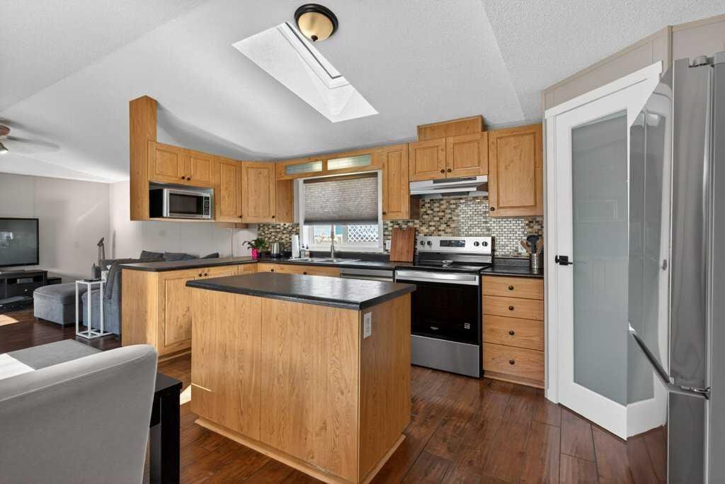 Welcome to this beautifully maintained 3-bedroom mobile home in the well-established community of Greenwood Village, offering comfort, convenience, and exceptional value. Step inside to discover a bright and inviting interior featuring high-quality laminate flooring throughout, complemented by tile in the private primary ensuite. Vaulted ceilings enhance the sense of space, creating an open and airy feel across the main living areas. The functional layout includes three bedrooms and two full bathrooms, with the primary suite offering its own ensuite for added privacy. This home has seen several key updates, providing peace of mind for years to come. Recent improvements include new shingles, rain troughs, and a skylight (2023), a hot water tank replacement (2022), and brand-new stainless steel appliances—including hood fan, stove, and fridge (2025). Located in a highly accessible area, you’ll enjoy quick connections to 16 Avenue NW Calgary and Stoney Trail, making commuting around the city a breeze. The community itself features a renovated centre and offers a welcoming neighbourhood atmosphere. Monthly fees add excellent value, conveniently covering water, sewer, garbage pickup, snow removal, and common-area maintenance—helping simplify your lifestyle. Enjoy nearby amenities including public transit, the vibrant Calgary Farmers’ Market West, and outdoor recreation at Bowness Park. An ideal opportunity for first-time buyers, downsizers, or investors—this move-in-ready home combines thoughtful updates with an unbeatable location.