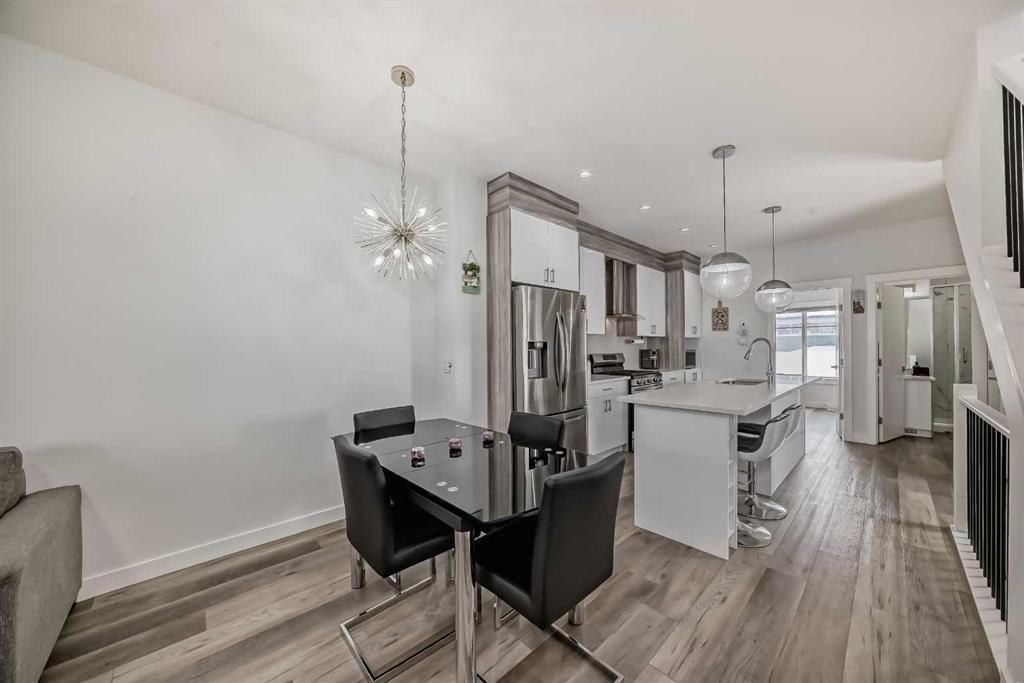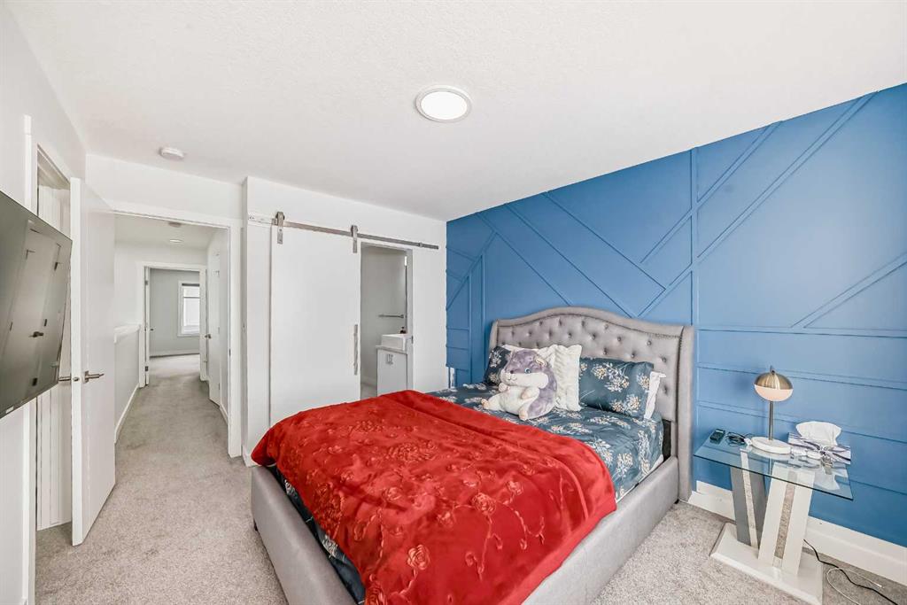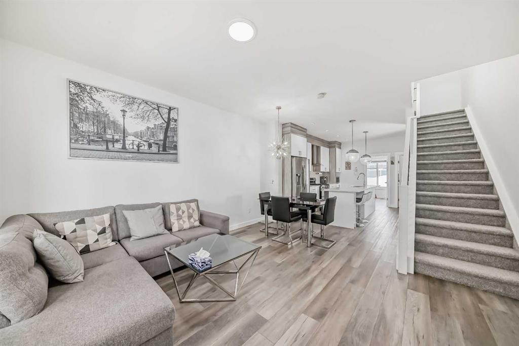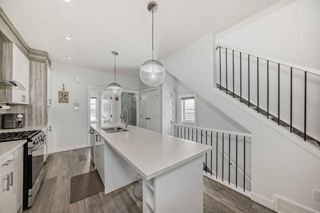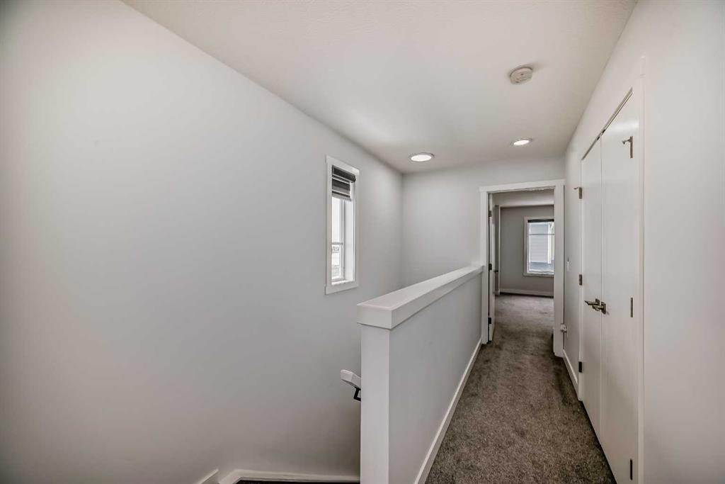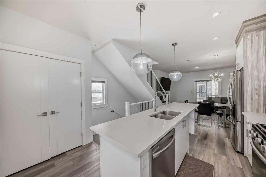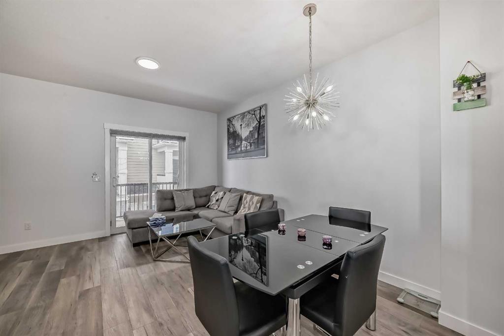Stunning Townhome | 3 Bedrooms | 3 Bathrooms | Dual Primary Suites | Upgraded Corner Unit.Presenting a thoughtfully designed townhome in community of Skyview featuring a double tandem attached garage. Upon entry, the spacious foyer leads to the main level with high ceilings and an open floor plan, creating an inviting atmosphere in the living room, complete with an electric fireplace and adjacent dining area. The private balcony allows natural light to illuminate the space throughout the day. The gallery-style kitchen is equipped with dual-tone ceiling-height cabinets, quartz countertops, stainless steel appliances including a gas range and chimney hood fan, as well as designer finishes. This level offers a full bedroom and bathroom, ideal for guests or family. The townhouse features upgraded iron spindle railings throughout. Upstairs features two primary bedrooms, each with a 4-piece ensuite and walk-in closet. A dedicated laundry room provides additional convenience. The extended tandem garage includes extra storage. The complex is professionally managed, offers low condo fees, ample visitor parking, and is conveniently located near amenities, schools, shopping, transit, Stoney Trail, Deerfoot Trail, and the airport. Contact your favorite realtor to book private viewing today!