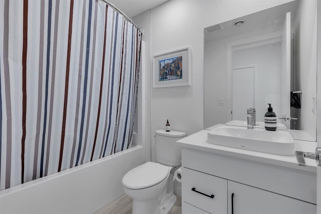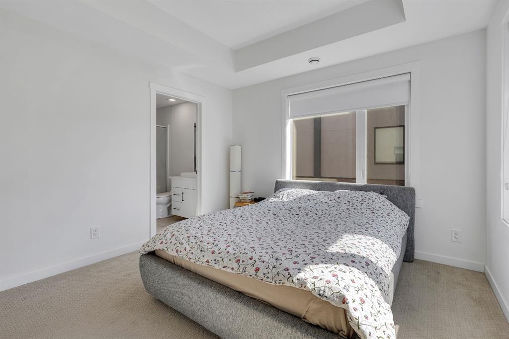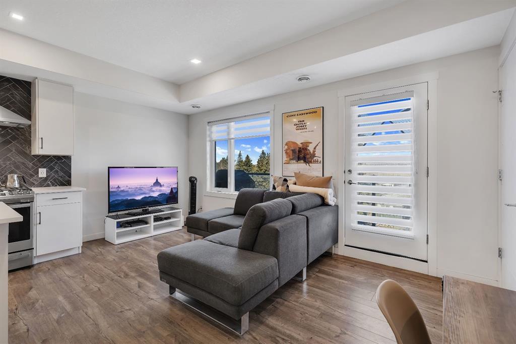 Welcome to 516 Greenbriar Common NW, located in the highly sought after community of Greenwich in Calgary. This top floor, end unit stacked townhome showcases upgraded luxury finishes and a bright, open concept layout designed for modern living. Offering over 1,000 sq ft of living space, this thoughtfully designed home features 2 bedrooms and 2 full bathrooms, along with a private, secure single attached garage and a full builder show home upgrade package. It perfectly blends the privacy of a townhome with the convenience of an apartment style layout. Upon entry, you are greeted by a welcoming foyer with under stair storage, leading to two flights of stairs up to your exclusive top floor retreat. The upper level opens into a spacious living and dining area, complemented by a beautifully upgraded kitchen featuring stainless steel gourmet appliances, a gas stove, chimney hood fan, built in microwave, and a full herringbone tile backsplash. Just off the living room, enjoy a large glass panelled balcony with sweeping views toward Bowness and the surrounding green space, perfect for relaxing or entertaining. With only a limited number of upper level units, just 8 in the community, this home offers a rare opportunity for elevated privacy and scenic outlooks over established greenery and ridge pathways. The single level floor plan includes two well appointed bedrooms and two full bathrooms. The primary suite is enhanced by additional corner windows, providing abundant natural light with east facing and south backing exposure. It also features a spacious closet and a private ensuite with a walk in shower, upgraded tile work, and quartz countertops. Built with quality and attention to detail, this home includes vinyl plank flooring from Divine Flooring’s Voyage line, quartz countertops throughout, upgraded stainless steel appliances, enhanced tile work in the kitchen and bathrooms, upgraded carpet and underlay, window coverings, and 9 foot ceilings. Greenwich is a vibrant, growing community offering excellent walkability to nearby amenities such as the Calgary Farmers’ Market, Analog Coffee, Market Wines, and Mash Pizza. Residents also enjoy access to established walking and biking trails, two playgrounds, and an off leash dog park. Conveniently located just 18 minutes to downtown Calgary, 12 minutes to the University of Calgary and Foothills Hospital, and only 45 minutes to the mountains, this home offers the perfect balance of urban convenience and outdoor lifestyle.