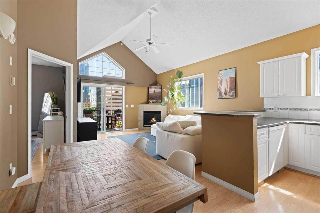 LUXURY TOP-FLOOR LOFT WITH ONE OF CALGARY’S BEST VIEWS! This PENTHOUSE-STYLE CORNER UNIT in Polo Terrace offers SOARING VAULTED CEILINGS, a PANORAMIC VIEW OF THE CALGARY TOWER, and a versatile layout perfect for professionals, couples, or small families. With 1,080 SQ FT of open-concept living, this rare 2-BEDROOM + 2 BATHROOM + LOFT gem is the ideal blend of lifestyle and location in the heart of the Beltline. The spacious living room features a cozy gas fireplace, dramatic vaulted ceilings, and direct access to your private balcony with jaw-dropping city views. The kitchen is modern and functional, with some updated appliances, generous counter space, and a layout that’s great for cooking or entertaining. Upstairs, the loft adds bonus flexibility, perfect for a home office, fitness zone, or creative studio. The king-sized primary suite includes a walk-through closet and private ensuite, while the second bedroom and full bath are ideal for guests or roommates. Enjoy the convenience of in-suite laundry with a storage room, and an additional under-stair storage area. You’ll also love the underground titled parking and optional storage rental ($30/month). Step outside to the best of urban living, just blocks from 1st Street, 17th Ave, the Saddledome, Lindsay Park, Calgary’s Memorial Library, the MNP Centre, dog parks, daycare and more. This is a walker’s paradise in a vibrant and connected building. Condo fees include heat, water, sewer, garbage, insurance, professional management, and reserve fund contributions. Pet-friendly with board approval. Whether you’re upsizing, downsizing, or investing, this iconic Beltline loft is the lifestyle move you’ve been waiting for.