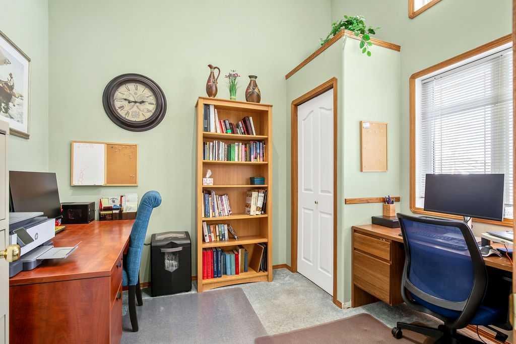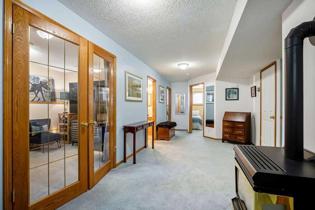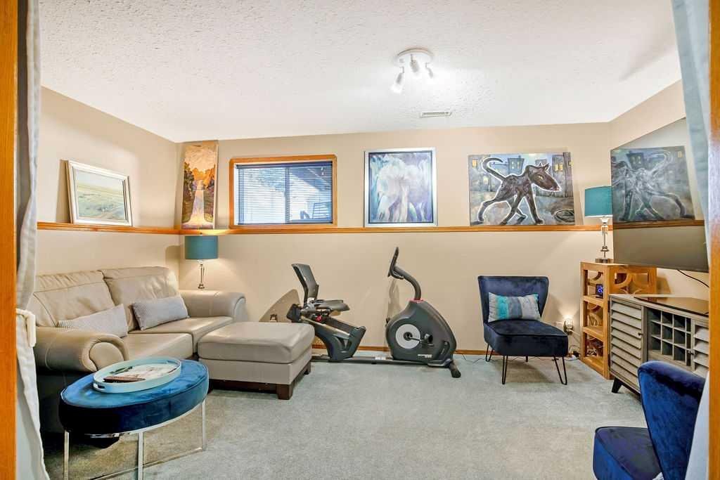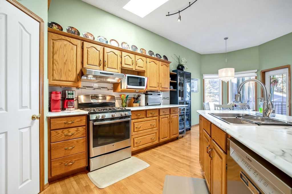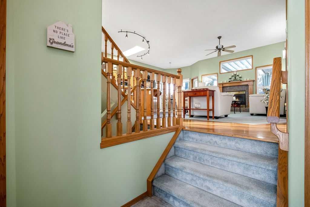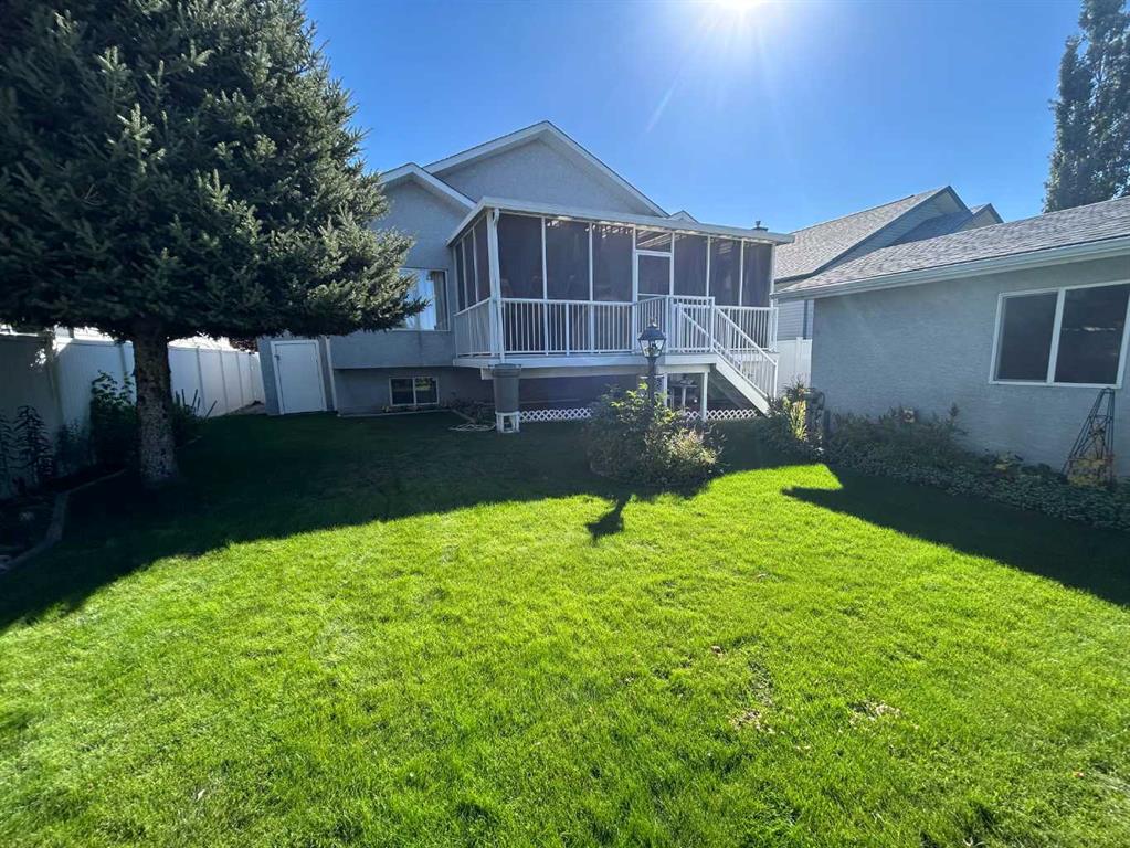 Welcome to your lovingly maintained and updated home located in Cambridge Glen, close to schools and recreational facilities, this home backs onto the bike/walking path system connecting you and your family to several parks including Dinosaur Hill just steps away. The yards are beautifully landscaped with large trees and lush gardens and feature an underground sprinkler system. The home boasts an open concept main floor with kitchen, dining area, living room, and full bathroom. You will immediately notice the soaring 10 foot ceilings with three skylights bringing in incredible natural light throughout the day. The kitchen features loads of cabinets, a large island, and a large corner pantry. The bonus room above the garage is great space for an office, den, or tv room, featuring built in cabinets and bar. The home has three bedrooms, incl the conveniently accessible main floor primary bedroom with en-suite bathroom and walk-in closet. The entry level features a den/office with closet which could also be used as an additional bedroom. The basement features two additional bedrooms, a 4 piece bathroom, and a rec room. The large covered and fully screened-in composite (maintenance free) back deck is a tranquil oasis to enjoy your morning coffee or game night with the family. Head down from your covered deck, through the landscaped back yard and you’ll find the heated and finished 14×18 shop, perfect for the hobbyist/tinkerer/gardener/mechanic. At the front of the home you’ll find the heated double attached garage and veranda. Recent updates include: new 50 year architectural roof shingles, eavestroughs and facia (2025), new skylights (2025), new A/C (2025), newer high efficiency furnace (2023), newer HWT (2023), Bosh dishawsher (2024). So many more features to mention… convenient main floor laundry, gas fireplaces up and down, water softener, central vac, additional shed for storage, maintenance free vinyl and chain link fencing, gas BBQ outlet, and Telus Fibre internet wiring. This home shows incredibly well with clear pride of ownership throughout.
