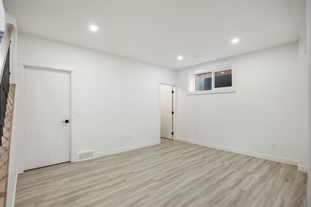 The fully developed basement offers three additional bedrooms and two full bathrooms, including one with its own ensuite, along with a custom wet bar, spacious recreation area, theatre or flex room, and a dedicated gym space.