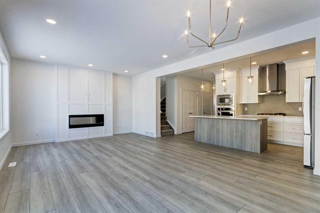 Introducing the Stanley—a stunning BRAND-NEW home built by Excel Homes, an award-winning builder with over 35 years of experience, more than 15,000 homes constructed, and 75 industry and design awards. Excel continues to deliver exceptional quality, innovation, and long-lasting peace of mind. Perfectly positioned on a quiet circle and directly facing a tranquil green space/park, this beautifully upgraded home features a FULLY DEVELOPED BASEMENT WITH A LEGAL SUITE. Offering 2068 sq ft of thoughtfully designed living space, the Stanley delivers an open, family-friendly layout with impressive finishes throughout. The main level features 9’ ceilings, luxury vinyl plank flooring, and a welcoming flow from the spacious foyer into the main living area. The large L-shaped kitchen includes an island overlooking the dining nook, crisp white cabinetry, pot/pan drawers, striking stone countertops, and stainless steel appliances including a gas range, chimney hoodfan, and built-in microwave + oven. The family-sized dining nook sits beside the bright great room—an ideal setup for entertaining and family gatherings—with patio doors leading to your backyard. Upstairs offers three generous bedrooms centered around a dramatic bonus room with vaulted ceilings, perfectly positioned to provide privacy for the spacious primary suite. The elegant ensuite features dual sinks, abundant storage, a soaker tub, and a separate shower. A full 4-piece family bath and a conveniently located laundry room complete this level, with all bathrooms finished in stone counters for a cohesive, upscale feel. The fully developed basement suite features its own private entrance, a good-sized bedroom, a bright open family room, a full kitchen, and a 4-piece bath. The home includes separate utilities for the upper floor and the suite—ideal for multigenerational living or future rental income. This BUILT GREEN® home is equipped with modern essentials including a Smart Home package, radon rough-in, Energy Star appliances, dual-pane Low-E windows, a high-efficiency furnace, and solar panel rough-in. A quick possession is available on this beautifully upgraded, ideally located home—an exceptional opportunity to own a brand-new Excel home in a premier setting.