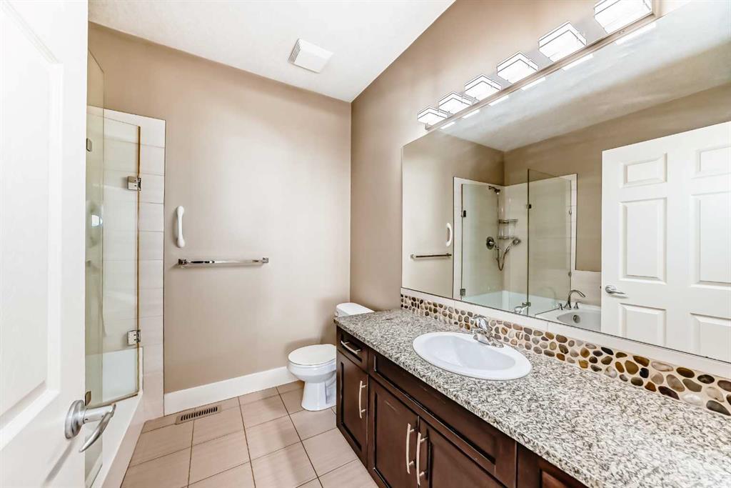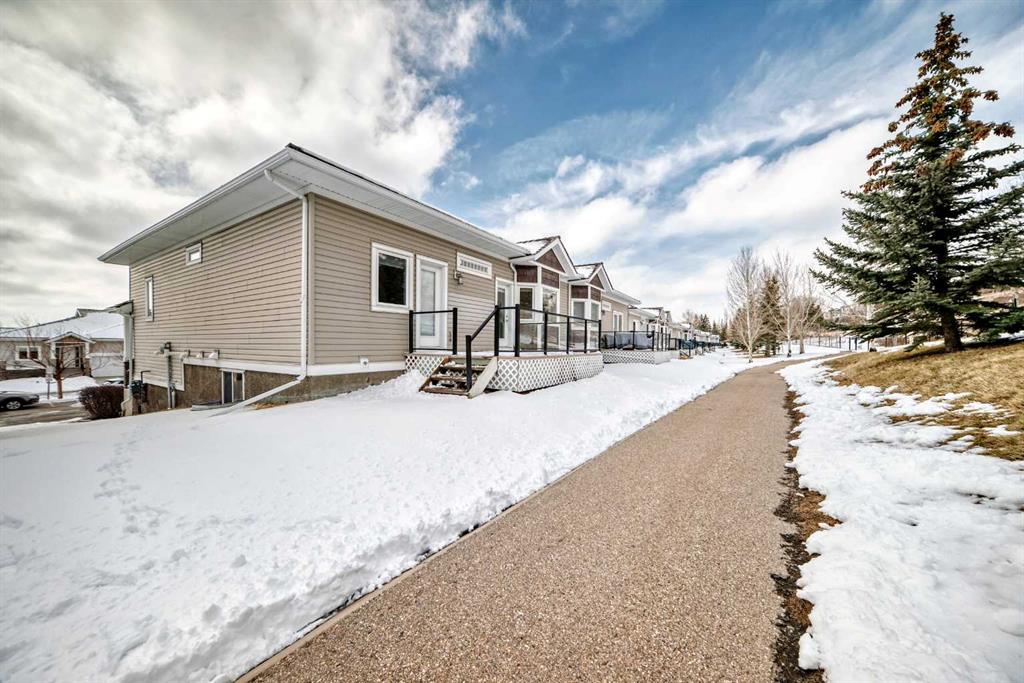 Welcome to your perfect retreat! Tucked away at the end of a peaceful street, this stunning villa-style duplex offers the ideal blend of comfort, style, and convenience. Spanning 1,335 sq. ft., the home greets you with a bright, airy atmosphere, highlighted by high ceilings, rich hardwood floors, elegant maple cabinetry, and high-end appliances throughout. Designed for both relaxation and entertaining, this home features two inviting outdoor spaces: a charming front patio where you can unwind and enjoy the tranquility of your quiet street, and a private rear patio accessible from both bedrooms that backs directly onto a scenic walking path. The spacious primary bedroom is a true sanctuary, complete with a 4-piece ensuite bathroom. Thoughtfully designed, the home also offers in-hall laundry for added convenience, a cozy gas fireplace for those cooler evenings, and a heated garage to make winters effortless. The basement is partially unfinished waiting for your finishing touches. Ideally located close to the C-Train, shopping, and everyday amenities such as the YMCA, this home delivers the perfect balance of peaceful living and urban accessibility. Don’t miss your chance to make it yours!