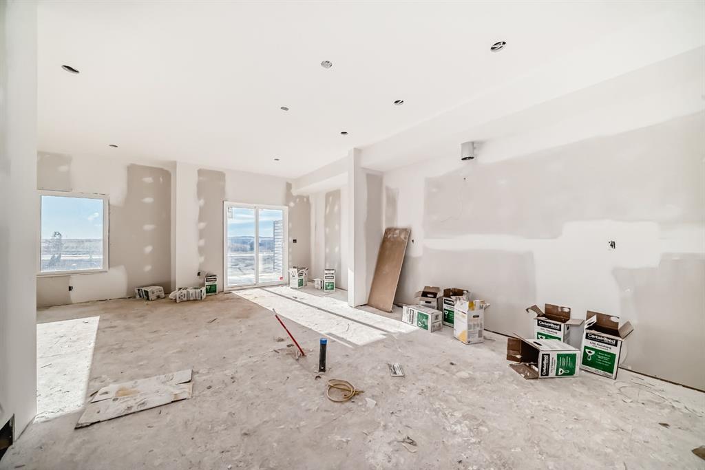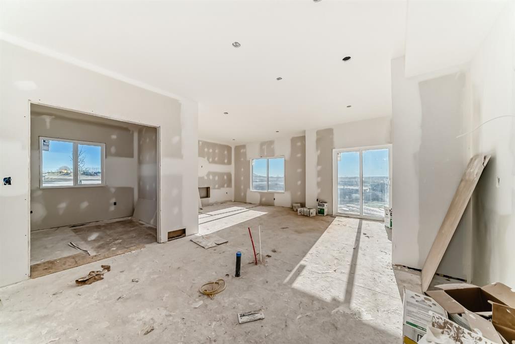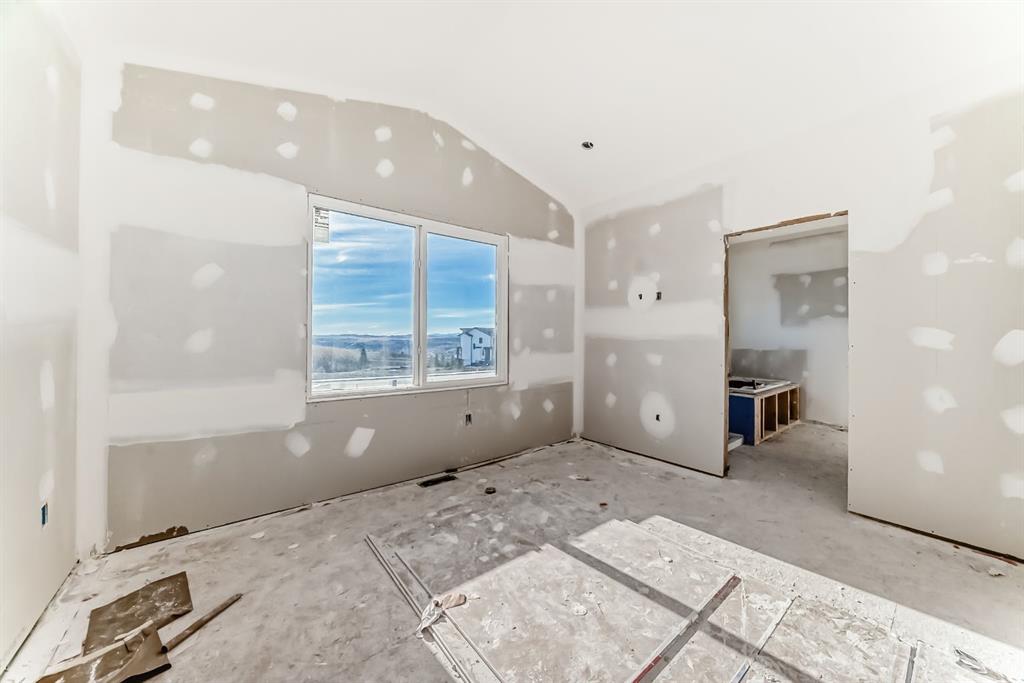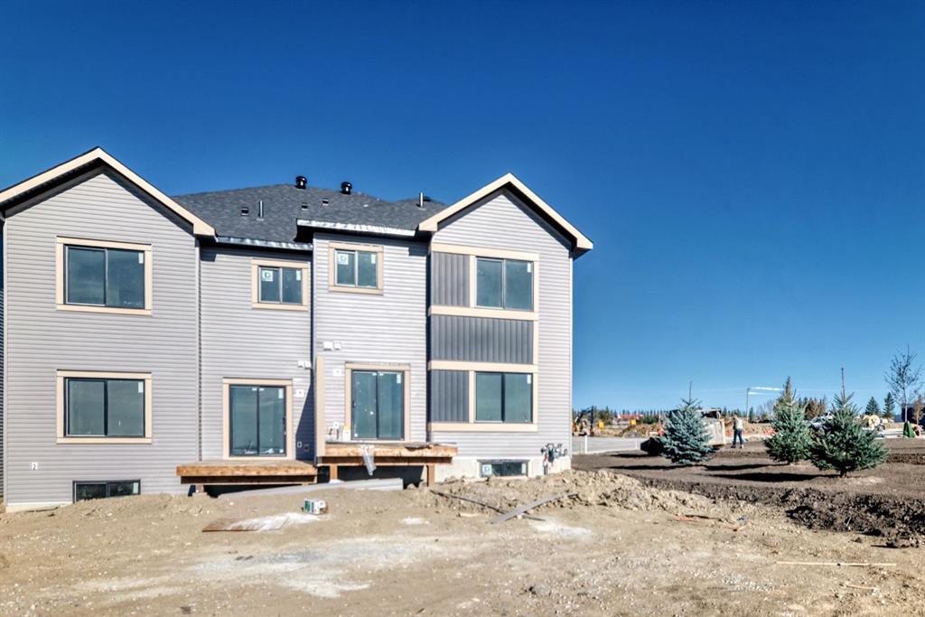 Open House: Sunday, Jan. 18th 12-2pm ** Discover the Cambridge by Paragon Custom Homes. A stunning 1,895 sq ft corner duplex situated on a premium lot with a park right beside you in the desirable West Hawk community. This beautiful home offers abundant natural light and 9ft ceilings throughout. Inside, you’ll be greeted by a bright foyer with engineered hardwood flooring and large windows. The walkthrough mudroom with built in storage connects effortlessly from the double attached garage into the pantry, keeping you organized. The spacious kitchen features stainless steel appliances, quartz countertops, a generous island, and custom cabinetry. A large main floor office with feature walls provides versatile space for work, study, or a cozy playroom. Relax in the inviting living room with an electric fireplace, or step out to the deck and backyard. Upstairs, you’ll find a great bonus room, two generously sized bedrooms, a family bathroom, laundry room with convenient built in storage, and the primary retreat boasting a vaulted ceiling, a luxurious 5-piece ensuite with a soaker tub, and a walk-in closet with custom built ins. An additional side entrance offers extra convenience for future developments or separate living spaces. Located close to schools, educational facilities, a variety of amenities, and easy access east to Calgary and west to the mountains, this home combines modern updates with classic charm in a sought after neighborhood. Just minutes from excellent dining, green spaces, and river walking paths, this remarkable property is ready for you to call home. Don’t miss your chance, schedule your showing today!