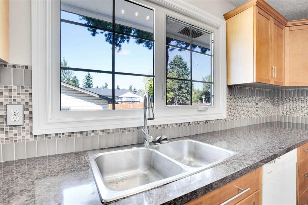 Ever dream of living in a newly renovated 5 bedroom family home, complete with double detached garage all on a massive yard (over 5000 sq ft)? Welcome HOME. The heart of home, the kitchen, boasts maple shaker cabinetry, full height glass tile backsplash, faux granite countertops, large fridge and you’ll be cooking with GAS on the upgraded 5 burner stove, complete with high CFM hoodfan. Entertain in the large L shaped living / dining room. The entire home has been freshly repainted, new luxury vinyl plank flooring (main level, 3rd level, and basement), with over a dozen new light fixtures, and everything ready for it’s next occupants. Upstairs you’ll find 3 bedrooms (primary + 2 kid) and 4 piece bathroom. The 3rd level has the 4th bedroom, the 2nd full bathroom and a large family room, complete with a cosy fireplace. The lower level has a large rec room, complete with a roughed in water, perfect for either a bar sink or a potential second kitchen, along with the 5th bedroom and a THIRD full bathroom. Expensive upgrades like windows have already been done. Stepping outside, you’ll love the large deck; just steps down you’ll find the large lower patio, with the door to the DOUBLE garage right there. The large rear yard is perfect for kids tofrolic and play. You’ll love living in Whitehorn, with the LRT just down the hill, tons of shopping (32nd ave, Costco, Sunridge Mall), 4 schools (K-9) with the closest school (K-6) only 500 feet away. There is even a hospital under 1 mile away. A great blend of new renovations, amazing lot, spacious double garage, LRT, and schools. Don’t miss s out on the chance to own this slice of paradise. Call your agent to book a viewing today.
