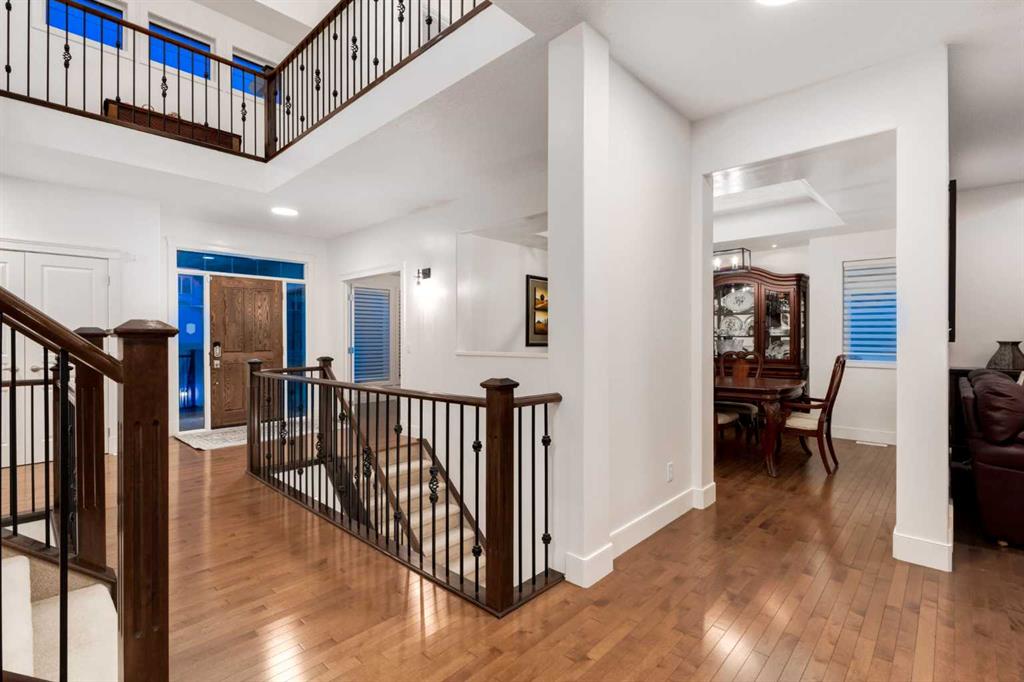 Stunning Fully Finished Walkout Backing onto Green Space in Aspen Woods! Located in the sought-after community of Aspen Woods, this beautifully maintained 2-storey walkout offers an impressive 4,800 sq. ft. of total developed living space and true pride of ownership throughout. Backing onto green space and surrounded by great neighbours, this home delivers luxury, space, and comfort in an exceptional location. A grand foyer with soaring 23’5” ceilings welcomes you into a bright, open-concept layout filled with natural light from large windows on all three levels. Elegant wrought iron railings accent the staircase throughout. The gourmet kitchen features stainless steel appliances, custom cabinetry and hood fan, granite countertops, a large island, and a walk-through pantry with ample storage. The main floor also includes a den, formal dining room, and a cozy family room with gas fireplace. Step onto the west-facing deck to enjoy sunshine and peaceful green space views. Upstairs offers a spacious bonus room with a grand chandelier, a luxurious primary suite with sitting area, gas fireplace, dream walk-in closet, and a 5-piece ensuite with upgraded shower and corner jetted tub. Two additional bedrooms, a 5-piece main bath, and upper laundry complete the level. The fully finished walkout basement features in-floor heating, two more bedrooms, a 4-piece bath, wet bar, and gas fireplace—ideal for entertaining or extended family. A finished oversized garage and numerous upgrades—including new furnaces (2023 & 2025), tankless hot water (2026), in-floor heating system updates (2026), new window coverings (2025), upgraded lighting (2025), and fresh paint (2026)—add even more value. Close to top private and public schools, shopping, parks, LRT, downtown, and Stoney Trail, this is an exceptional opportunity in one of Calgary’s most desirable communities. Please click the Virtual Tours for more detail!