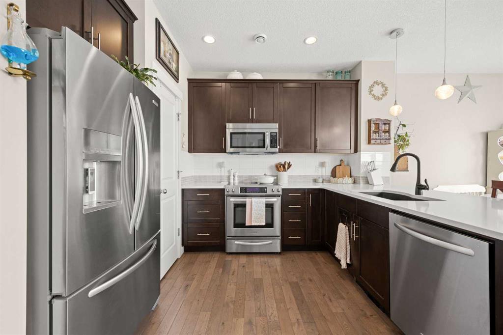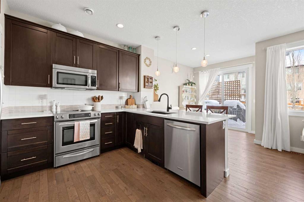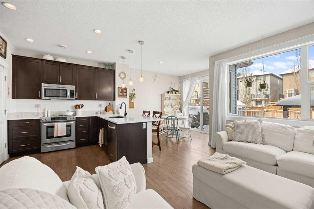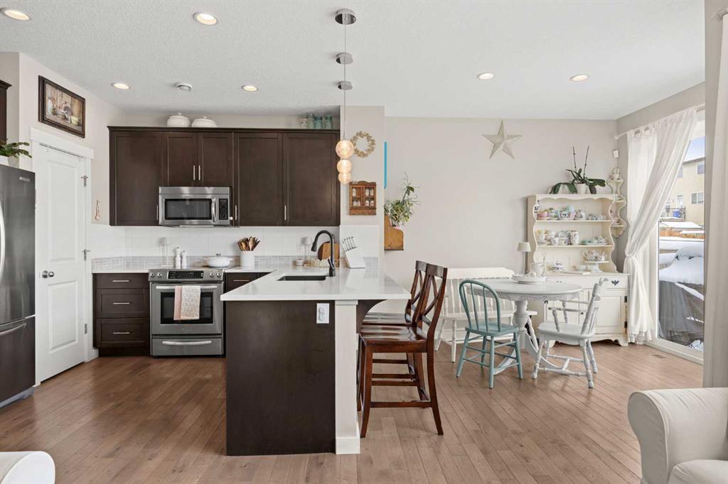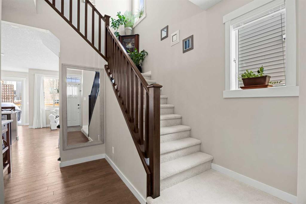 Welcome to a beautiful home in Northwest Calgary, offering great value at an affordable price point. With 3 bedrooms and 2.5 bathrooms, this is the perfect fit for a first-time buyer or a young family! A bright, open main floor layout is complemented by hardwood flooring throughout. The kitchen features quartz countertops, stainless steel appliances, and ample counter space. Just off the kitchen, the dining area is well-sized and makes everyday meals and hosting feel easy. Nearby, the living room offers a warm and inviting space with a natural gas fireplace, flowing seamlessly from the dining area. A powder room completes this level, while the single attached garage adds everyday comfort and convenience.