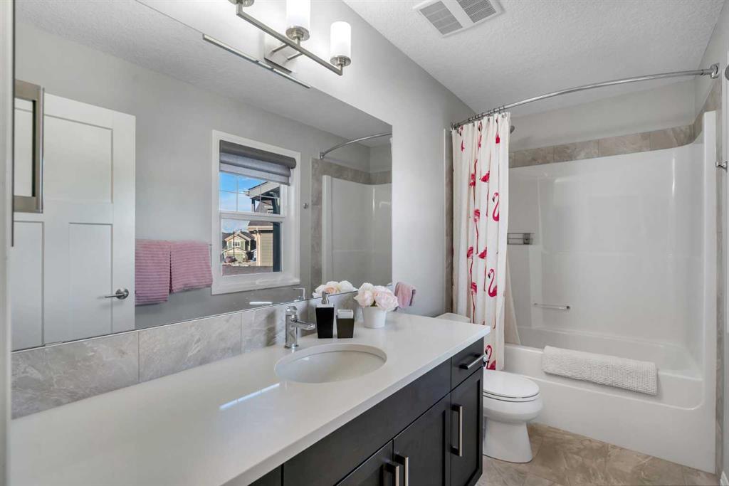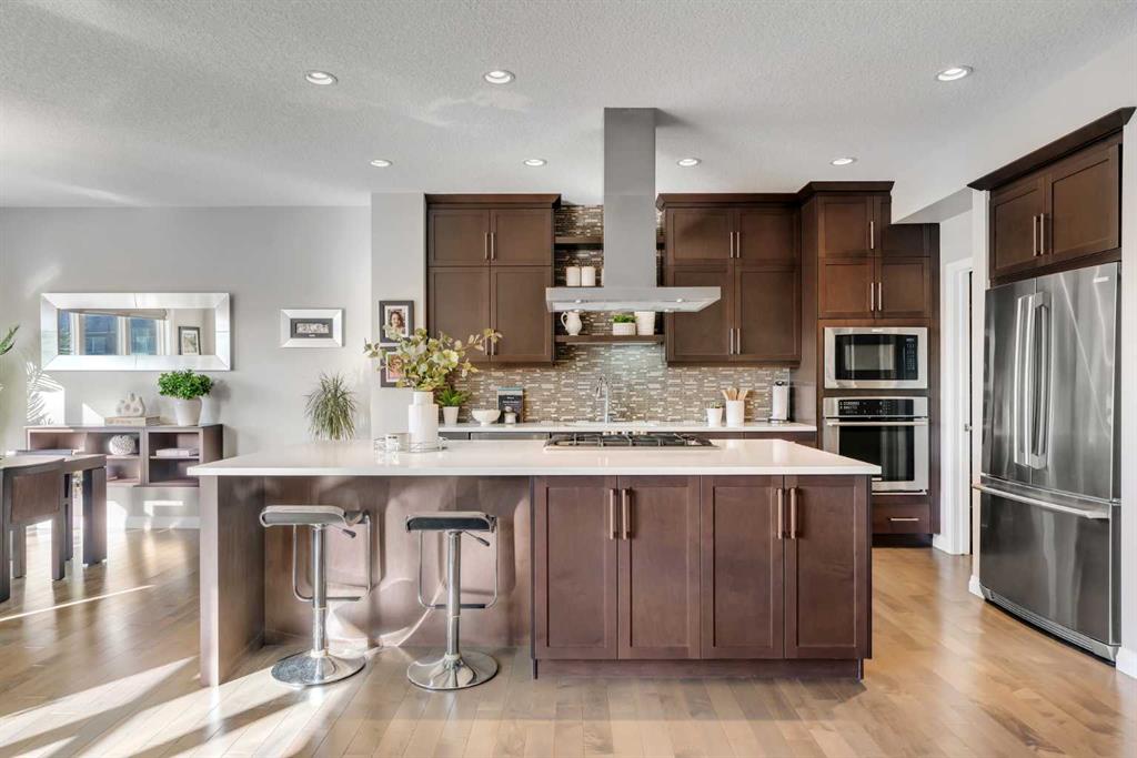 The fully finished walkout basement offers incredible flexibility with a fourth bedroom, a modern bathroom with a tiled stand-up shower, a private office ,and a large rec room that could serve as a media room. Step outside to the huge backyard — ideal for kids, pets, and entertaining — complete with a cozy fire pit area. Additional features include central A/C, dual newer furnaces, a newer hot water tank, an oversized driveway, & triple-pane windows throughout. Conveniently located with just 20 minutes to Calgary, 30 minutes to Downtown, and only an hour from the mountains, this home truly offers the best of both worlds. This is your opportunity to own a stunning home with a modern spacious layout on an expansive lot with gorgeous views from all levels. Welcome Home!