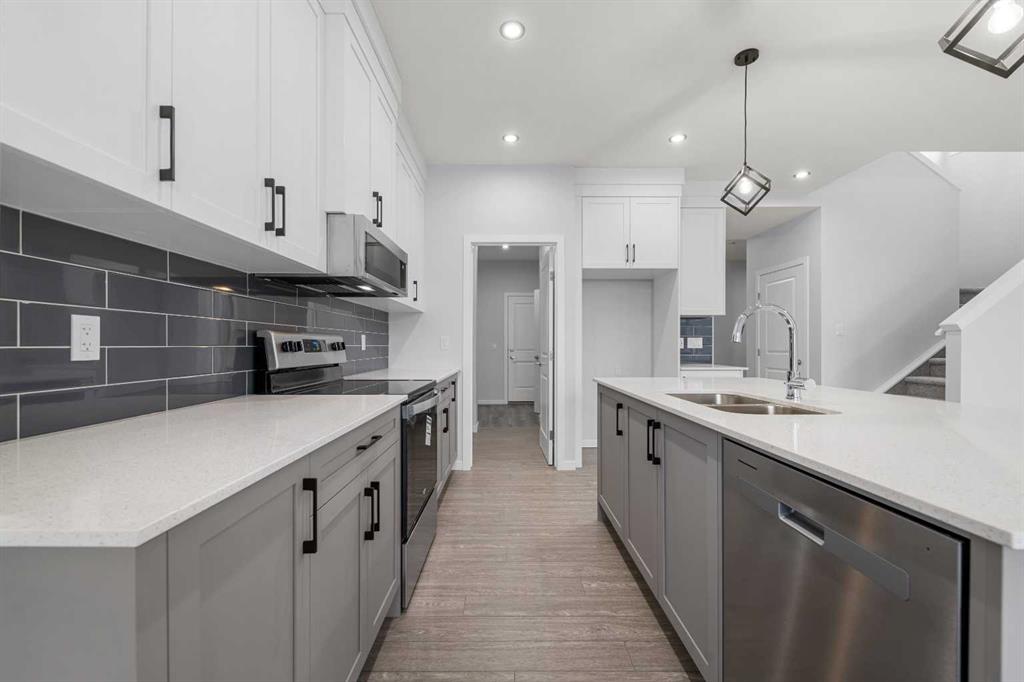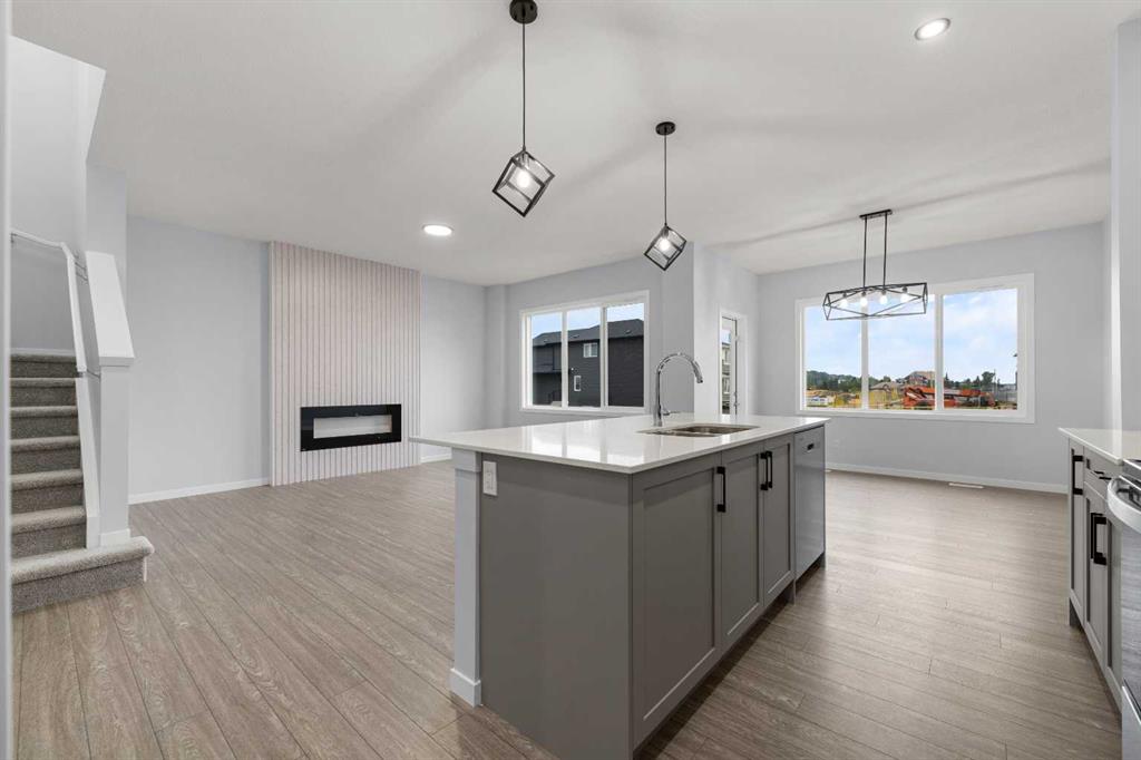 Brand New | Never Occupied | 1,930 SqFt | 3 Beds | 2.5 Baths | Top of the Line Finishes | Sparkling Chef’s Kitchen | Quartz Countertops | Stainless Steel Appliances | Full Height Cabinets | Kitchen Island | Barstool Seating Area | Walkthrough Pantry | Open Floor Plan | High Ceilings | Electric Fireplace | Upper Level Bonus Family Room | Walk-in Laundry Room | Spacious Bedrooms | Side Entry to Basement | Basement Rough-ins | Huge Backyard Space | Front Attached Double Garage | Driveway. Welcome to your gorgeous brand new home boasting 1,930 SqFt throughout the main and upper levels with an additional 787 SqFt in the unfinished basement. This home has expansive living space, high ceilings and large windows. The front door opens to a grand foyer with plenty of space for bench seating! The open concept floor plan makes this the perfect home to host friends and family for dinners and holiday events. The sparkling kitchen is outfitted with full height cabinets, quartz countertops, stainless steel appliances and a centre island with barstool seating. Off the kitchen is a walkthrough pantry that connects to the mud room and interior garage door making your grocery drop easy. The dining and living rooms are framed with large windows filling the home with ample natural light. The dining room is paired with a door that leads to your blank canvas back yard which will be your go to spot for outdoor dining and summer BBQs. The living room is centred with an accent wall and electric fireplace. The main level is complete with a 2pc bath. Upstairs is finished with plush carpet flooring throughout the 3 bedrooms and bonus family room. The primary bedroom is partnered with a walk-in closet and private 3pc ensuite bath. The ensuite has an extended single vanity with great storage below and a walk-in shower. Bedrooms 2 & 3 are both a great size and share the main 4pc bath with a tub/shower combo. The bonus family room is the perfect space to unwind the in evenings with your family. This home’s laundry is located upstairs near all the bedrooms- every home owner’s dream. The walk-in laundry room has wire linen shelves and plenty of space for all cleaning supplies. Downstairs, the unfinished basement has a separate side entry making future development easy! Outside is a great backyard with a blank canvas; customize this space to your family’s needs! The front attached double garage and driveway allows for 4 vehicles to be parked at any time. Hurry and book a showing at your gorgeous brand new home today!