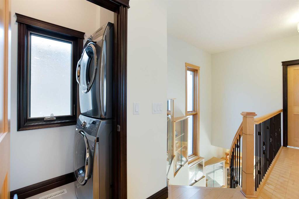 Your exciting forever home in the heart of Parkdale, set on 30 x 120 foot flat lot. This beautiful property features quiet luxury perfect for a family and is steps away from a peaceful yet vibrant community center. The playground, skating rink, and community garden offers amenities for individuals of all ages. Its proximity to Edworthy Park and Foothills Hospital add additional convenience without the noisy disruption. Enjoy walking, running, or cycling the pathways just a few blocks away from the Bow River. The property features a detached high ceiling garage connected by a garden with entry option to the house via the side or through a spacious stone patio. The main floor represents comfort and function for everyone. A practical mud room leads directly to the pantry, which provide abundant floor to ceiling cabinets for added storage space. These custom cabinets with silent close function wrap around to the heated tile kitchen that is every home chef’s dream. This space features high quality Miele steamer/convection oven, fridge, dishwasher, microwave, and a 5 burner Capital gas stove. It boasts 10′ high ceilings with plenty of natural light along with textured glass windows for added privacy. A spiral staircase leads to the 2nd floor, which consists of master bedroom with a walk in closet and a fully equipped bathroom. The other side of the floor has 2 bedrooms along with a spacious living room. The carpeted in-floor heat throughout in the basement with an additional bedroom and full bath, extending towards a large living room and bar space. Equipped with air conditioning, this property is perfect for your everyday needs.