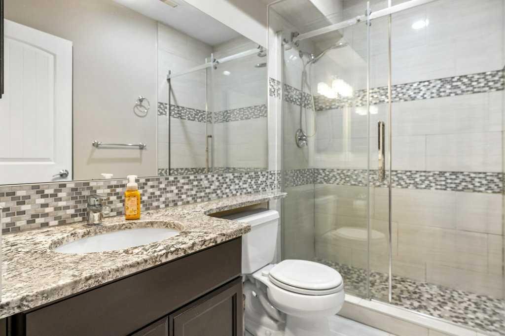 Downstairs, the professionally developed basement (with permits) offers exceptional additional living space with 9’ ceilings, dry core flooring, and a second gas fireplace. The recreation area includes a fully equipped wet bar with island, fridge, dishwasher, storage cabinetry, and tiled finishes, making it ideal for entertaining. The basement also features a 4th bedroom, a 3-piece bathroom with tiled shower and granite vanity, a workout area, and additional storage, with potential space for another bedroom. Speaker rough-ins are also installed throughout the recreation area.
