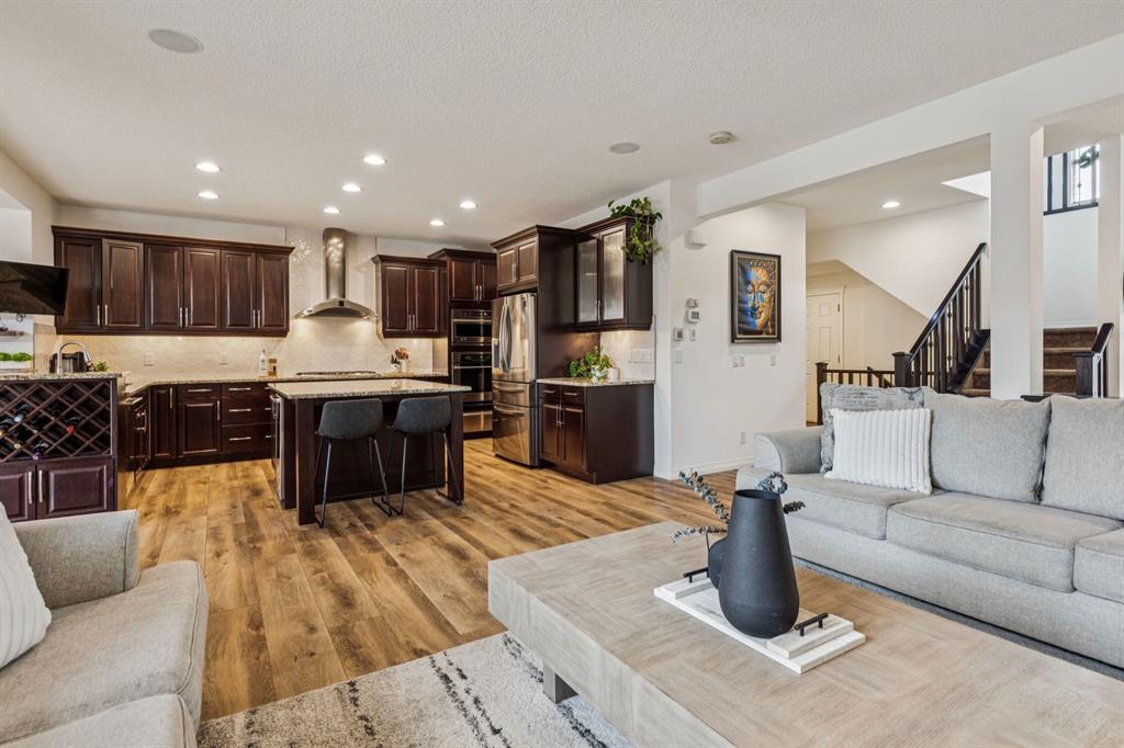 Situated on a quiet, kid-friendly cul-de-sac, this immaculate home offers over 3,200 square feet of beautifully developed living space. The “showhome-quality” main floor features an open-concept layout with newer LVP flooring and a gourmet chef’s kitchen boasting granite countertops, new backsplash, a gas range, and a central island. This space flows seamlessly into the dining area and a living room centered around a cozy gas fireplace- all enhanced by an integrated built-in speaker system, perfect for setting the mood while entertaining. The upper level is designed for relaxation, featuring a spacious bonus room ideal for movie nights. The primary suite serves as a true retreat with a spa-like five-piece ensuite and a large walk-in closet, complemented by two additional oversized bedrooms and a functional laundry room with custom shelving. For even more versatility, the fully finished basement provides a fourth bedroom, a full bathroom, a large recreation room, and a private den/ office. Outside, your professionally landscaped backyard oasis awaits, complete with a new expansive deck, a custom wood privacy screen, and a cozy fire pit. Located just minutes from Auburn Bay Lake, Westman Village, and the amenities of Seton, this home offers an unbeatable lifestyle in a premier lake community. Don’t miss out—schedule your private viewing today.