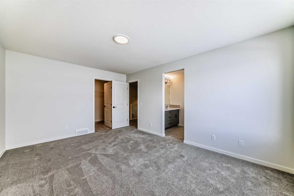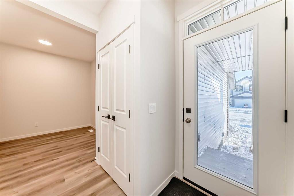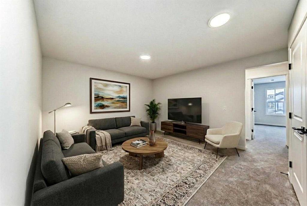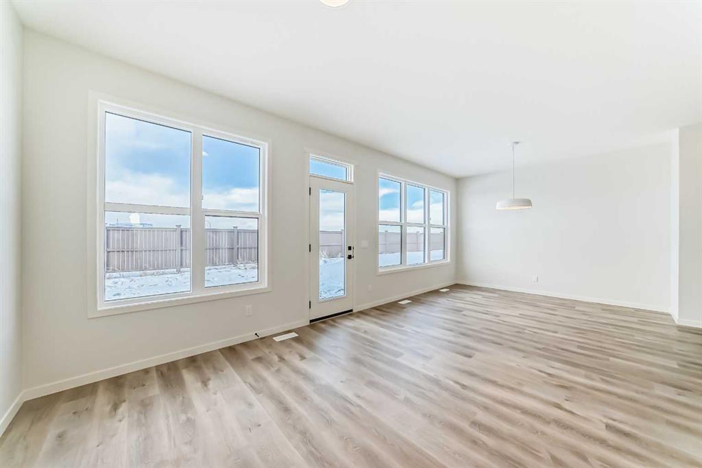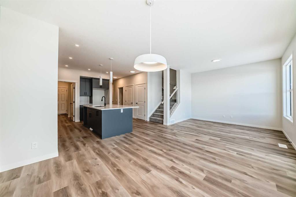 Welcome to The “Luna” a beautifully designed home in the vibrant, garden-to-table community of Rangeview—where modern style, smart function, and everyday comfort come together in a layout that simply lives well. From the moment you step inside, the home feels bright and open thanks to wall-to-wall windows and an airy main floor design that’s ideal for both busy weekdays and easy entertaining. At the front of the home, an open flex room adds incredible versatility, perfect as a home office, reading nook, homework zone, or a kids’ playroom, giving you a dedicated space that can evolve with your lifestyle. The heart of the home is the upgraded kitchen, designed to look sharp and work hard. You’ll love the modern grey flat panel cabinetry raised to the bulkhead, paired with crisp white quartz countertops and sleek black hardware for a clean, contemporary finish. The upgraded kitchen layout offers improved flow and function, while a statement chimney hood fan is framed by a modern vertically laid, stacked subway tile backsplash that adds just the right amount of texture and style. Light wood grain vinyl plank flooring runs throughout the main level, bringing warmth and contrast to the modern palette and tying the space together beautifully. The open-concept design keeps the kitchen connected to the dining area and living room so you can cook, host, and relax without missing a beat—made even better by all the natural light pouring in throughout the day. Upstairs is where this floor plan really shines, offering the kind of space and separation families appreciate. A large central entertainment room/bonus room becomes the natural hub of the upper level, ideal for movie nights, a gaming setup, a play area, or a cozy lounge for teens and guests. It’s the perfect “second living room” that keeps the main floor tidy and gives everyone a place to spread out. The primary suite feels like a true retreat, offering plenty of space for a king sized bed and furniture, along with a generous walk in closet and a spa inspired ensuite where you can unwind at the end of the day. Two additional bedrooms are thoughtfully positioned to offer comfort and privacy, each with excellent natural light and enough room for growing kids, guests, or a dedicated second office. A well appointed secondary bathroom completes the upper level, keeping daily routines easy and organized. Downstairs, the home continues to deliver long-term value with a separate entrance and 9’ foundation height, offering exciting flexibility for the future, whether your vision includes additional living space, extended family options, or potential for a future basement suite (subject to approval and permitting by the city/municipality). Outside, the west-facing backyard is a standout feature, perfect for soaking up afternoon sun, enjoying evening BBQs, or creating a patio and outdoor living space you’ll actually use all summer long. Set in Rangeview, a community known for its welcoming vibe!