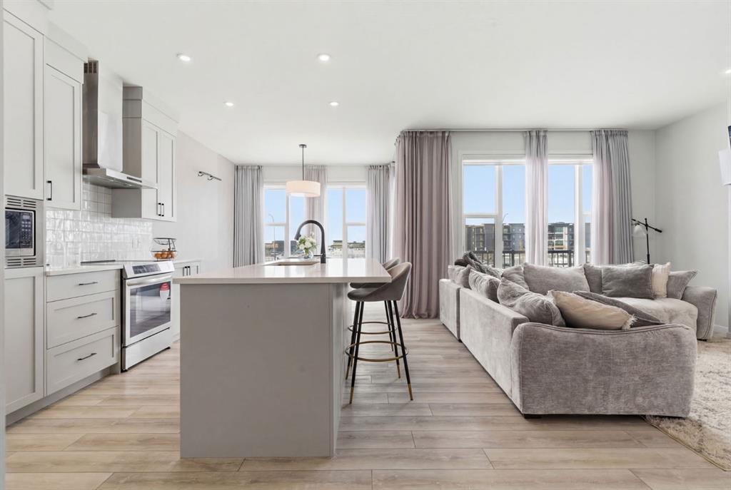 Welcome to this beautifully designed and thoughtfully upgraded two-storey home offering over 3,000 sq ft of developed living space, including a fully legal basement suite, ideally located in the vibrant community of Belmont. From the moment you step inside, you’ll appreciate the bright and open layout, enhanced by large windows that fill the home with natural light. The main floor is designed for both everyday living and entertaining, featuring a stylish kitchen complete with a large central island, sleek cabinetry, stainless steel appliances, and a walk-in pantry. The kitchen flows seamlessly into the dedicated dining area and inviting living room, anchored by a cozy fireplace. A versatile office space, convenient mudroom, and a 2-piece powder room complete the main level. Upstairs, you’ll find a spacious loft that offers the perfect bonus living area, along with four generously sized bedrooms. The primary suite is a true retreat, featuring a walk-in closet and a beautifully appointed ensuite with a double vanity and relaxing soaker tub. A full 4-piece bathroom and upper-level laundry room add to the home’s functional layout. The fully developed legal basement suite offers incredible flexibility and income potential, complete with its own kitchen, living area, two bedrooms, full bathroom, and separate laundry. Step outside and enjoy the added privacy of backing onto green space, creating a peaceful setting right in your backyard. Additional highlights include a double attached garage and a prime location with quick access to major routes including 194 Avenue and Macleod Trail, along with nearby amenities such as shopping and restaurants. This is a rare opportunity to own a move-in ready home with income potential in one of Calgary’s growing communities.
