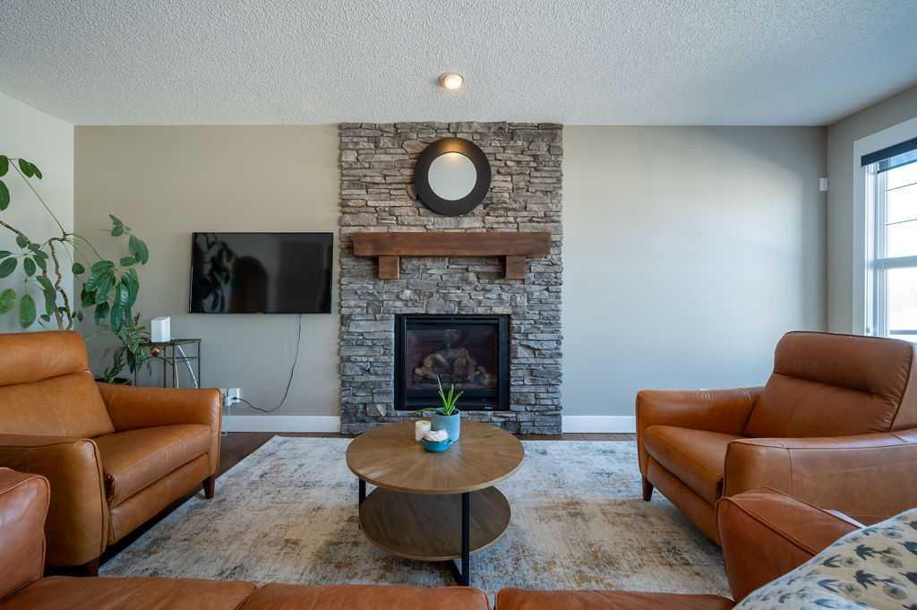 .Welcome to elevated family living in beautiful Chaparral Valley, Enjoy your morning coffee with the morning sunshine and stunning views of Blue Devil Golf Course, Valley and surrounding nature. This 4-bedroom, 3.5-bath home was designed for both luxury and everyday family life. The open-concept main floor features a custom chef’s kitchen with double islands, granite countertops, upgraded stainless steel appliances, and a built-in oven, convection microwave and beverage fridge — perfect for entertaining or busy mornings with the kids. The spacious dining area and cozy family room with fireplace create a warm, inviting atmosphere. Upstairs offers two generous kids’ bedrooms, a large laundry room with cabinetry, and a true primary retreat complete with a flex area, spa-inspired ensuite with soaker tub and steam shower, and a walk-in closet. The fully finished walkout basement adds even more living space with an additional bedroom, bright rec room with fireplace, flex space for a gym, and rough-ins for a future kitchen or bar. Enjoy your oversized deck with breathtaking morning sun, underground sprinklers, and a triple tandem garage with exceptional storage or perfect for developing the next hockey superstar. With recent exterior upgrades (new shingles & front stone work in 2022) and endless updates throughout, this is the perfect place to plant roots and call home.