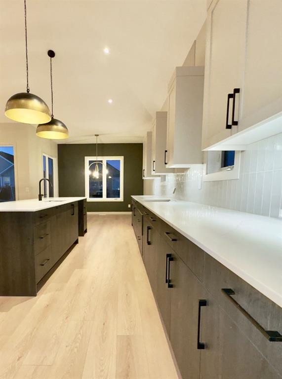 Absolutely gorgeous executive bungalow in the sought-after community of ‘Bridges of Langdon’! This home boasts a triple garage, soaring vaulted ceilings, and beautiful smooth flooring throughout. The dream kitchen features quartz counters, you’ll love the colour, a spacious sit-up island with seating for 4-5, don’t forget the huge walk-in pantry. The bright living room showcases sleek architectural shelving and a modern fireplace, windows and patio doors lead you to a lovely private deck. The dining area is filled with natural light and a fantastic spot for entertaining. The vaulted master retreat offers a large window, spa-inspired 5-pc ensuite, and walk-in closet. A versatile second bedroom or office, full bath, and laundry room complete the main floor. Stylish, functional, and move-in ready! Get away and live in tranquility, with only a 10 minute drive to Stoney Trail! Close to schools, shopping and all your families needs!