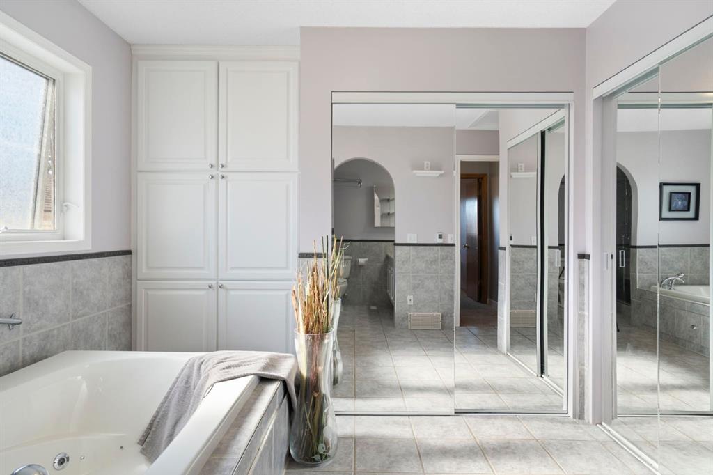 The main floor opens to a bright and spacious layout with vaulted ceilings and large windows that bring in natural light throughout the day. The kitchen, dining area and living room connect easily, creating a layout that works well for day-to-day living and having people over without feeling closed off. The primary bedroom is set on the main level and is complemented by a generous five-piece bathroom with dual sinks, a jetted tub, steam shower and a dedicated wardrobe area.