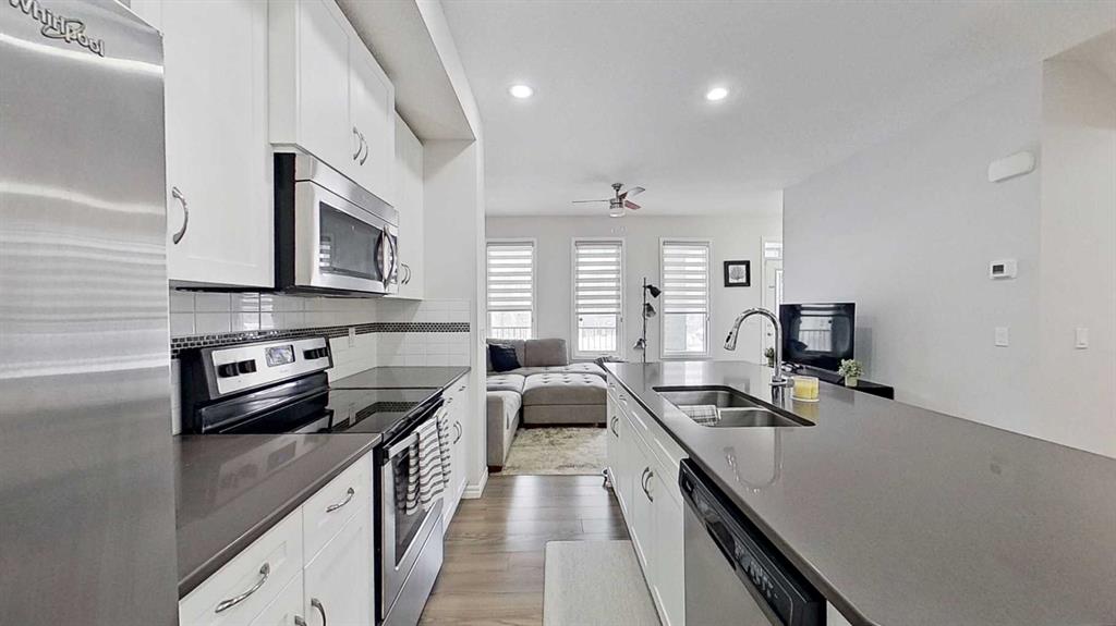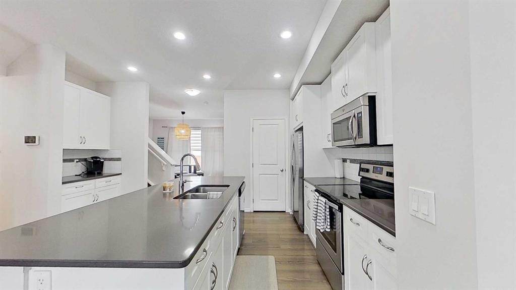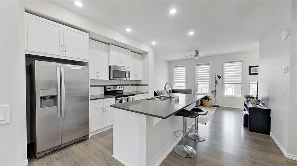 Welcome to this beautifully designed 2-storey half duplex offering 1,525 sq ft of modern, functional living space. This home features 3 spacious bedrooms and 3 bathrooms. The open-concept main floor showcases a bright kitchen with a large island, quartz countertops, and seamless flow into the living and dining areas—ideal for entertaining.