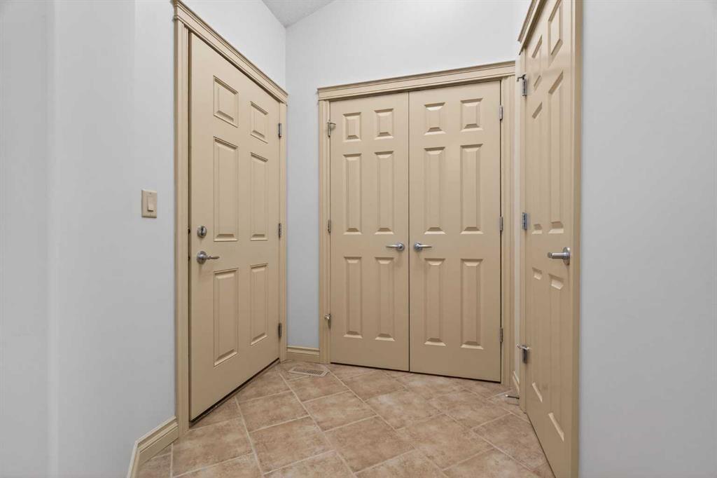 Inside, you’ll find a bright open foyer with direct garage access and a convenient 2-piece powder room. The front den/office showcases VAULTED ceilings and abundant natural light, and could easily function as a second main-floor bedroom. The spacious primary retreat offers vaulted ceilings, scenic views, a large walk-in closet, and a beautifully designed 4-piece ensuite with double sinks, custom vanity, and stand-up shower. A private ensuite laundry room with extra shelving and stacked washer/dryer adds everyday convenience.