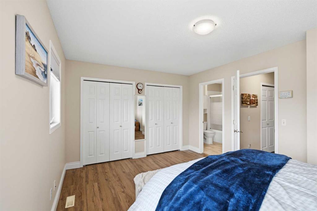Upstairs, both primary bedrooms are generously sized. One features double closets, while the other includes a walk-in closet—each complemented by its own private ensuite.
