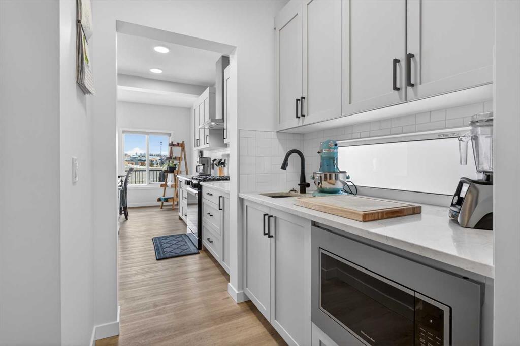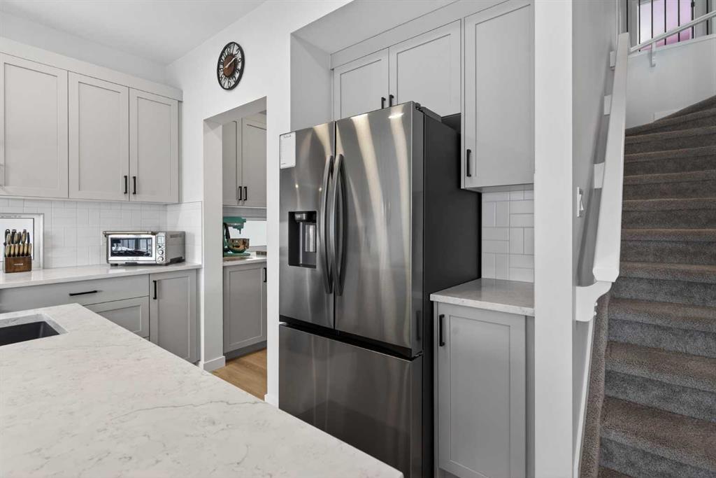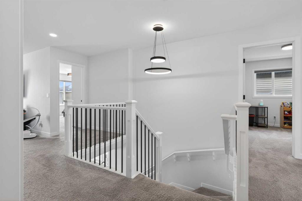 Looking for the perfect home for your family? Well you’ve found it in this beautifully crafted two storey in the popular Airdrie community of Bayside, located here on this quiet crescent within walking distance to neighbourhood parks, ponds & the canals. Built by McKee Homes for the original owners, this wonderful home enjoys luxury vinyl plank floors & quartz countertops, total of 4 bedrooms up, relaxing central air & fantastic outdoor space in the fully fenced & landscaped West backyard. With its 9ft ceilings & expanse of windows, you’ll love the bright & airy main floor with its gracious living room with remote-controlled gas fireplace & beamed ceilings, open concept dining room with views of the backyard, home office alcove & custom kitchen with centre island & quartz counters, butlers & walk-in pantry, ceramic tile backsplash & upgraded stainless steel appliances including a Samsung gas stove/convection oven. Upstairs there are 4 lovely bedrooms highlighted by the West-facing primary bedroom with walk-in closet & ensuite with quartz-topped double vanities, separate shower & soaker tub. Another full bathroom is shared by the other 3 bedrooms…2 of which have walk-in closets. A spacious bonus room & laundry room with GE steam washer & dryer complete the 2nd floor. The unspoiled lower level – with roughed-in bathroom plumbing & oversized windows, offers tremendous potential for future living space. Additional features include Clean Comfort HVAC system & triple-pane windows, natural gas line for your BBQ on the backyard deck, garage door opener with built-in camera, adjustable LED lighting throughout, Ecobee thermostat & upgraded SMART appliances. As one of Southwest Airdrie’s premier family communities, Bayside features 100km of paved pathways winding throughout the neighbourhood & along picturesque canals & ponds, with numerous parks & playgrounds for year-round activities. Nose Creek Elementary & W.H. Croxford High are both just minutes away, & with its prime location to Yankee Valley Blvd means all regional amenities are close-by (Chinook Winds Regional Park, Genesis Place, retail centers, Woodside Golf Course, etc) & you’ve got quick & easy access to the QEII to Cross Iron Mills, the airport & Calgary.
