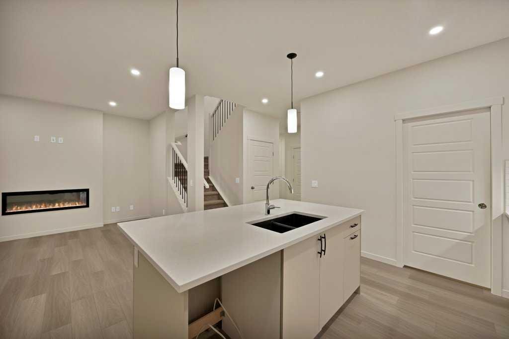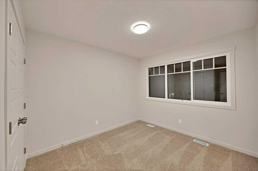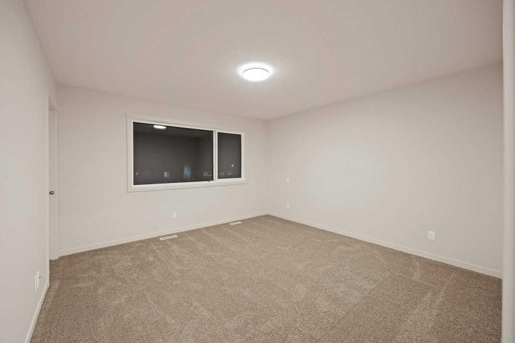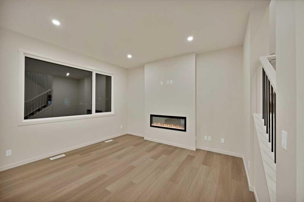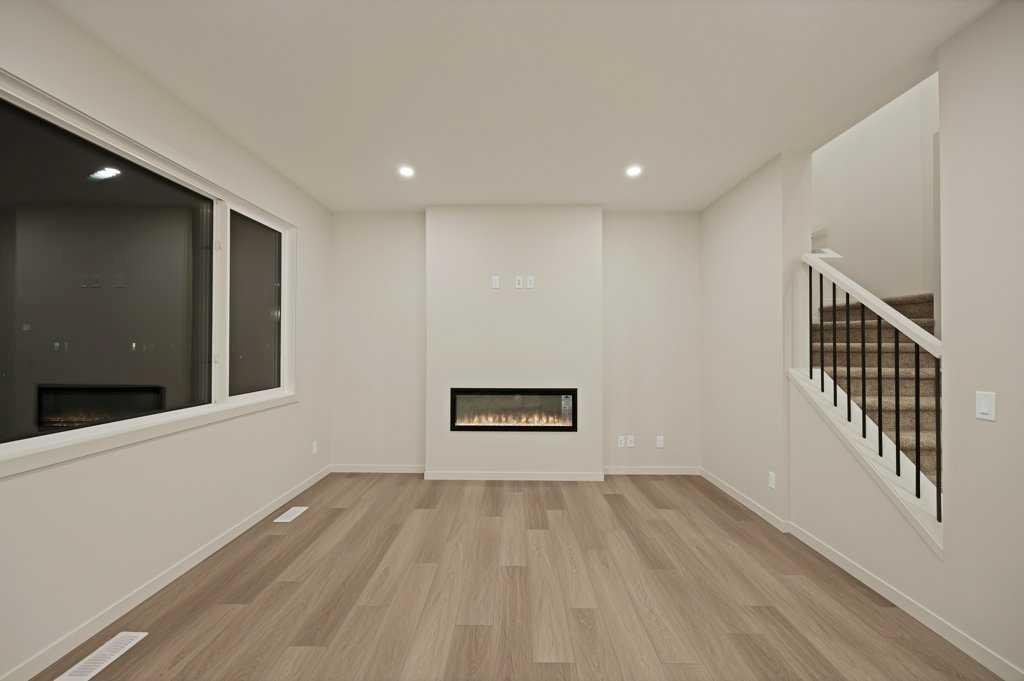 Welcome home to this stunning walkout duplex that perfectly blends modern elegance with functional design. This brand-new construction offers 1,565 square feet of meticulously crafted living space with an attached double front garage, set on a generous 3,579 square foot walkout lot that backs onto a beautiful greenspace with a pond. The main floor welcomes you with a spacious living area featuring an elegant electric fireplace, while a walkthrough pantry connects the mudroom to the gourmet kitchen. Here, stainless steel appliances, including a gas stove and chimney hood fan, shine under recessed lighting. The open-concept layout seamlessly integrates the kitchen, great room, and dining area, where large windows fill the space with natural light and create an inviting atmosphere for both everyday living and entertaining. Upstairs, the primary bedroom serves as a private retreat, complete with a luxurious four-piece ensuite and a sprawling walk-in closet that provides ample storage for your wardrobe essentials. Enjoy serene views of the pond and green space, with no adjoining backyard to interrupt the scenery. Two additional spacious bedrooms offer large windows framing picturesque views of the surrounding landscape. A conveniently located laundry room, equipped with a front-load washer and dryer, adds both comfort and practicality to your daily routine.