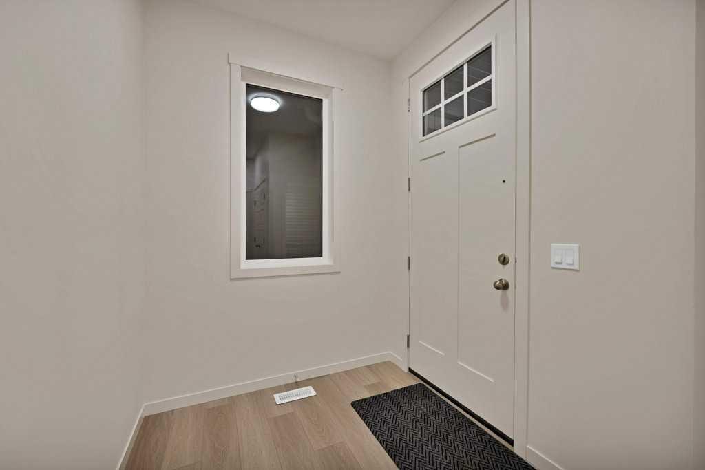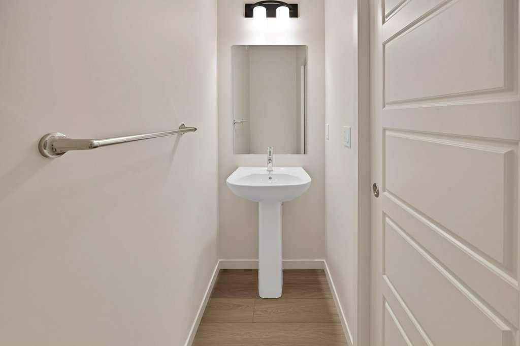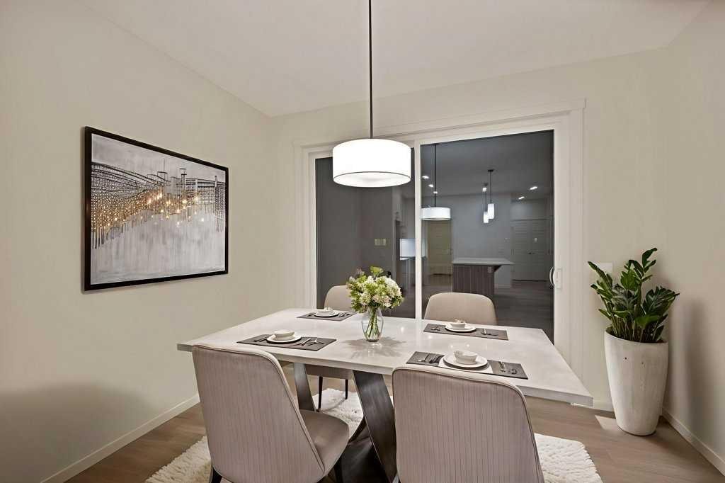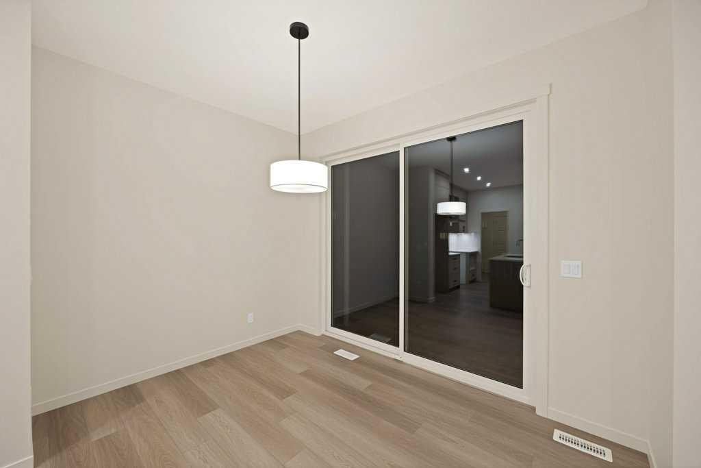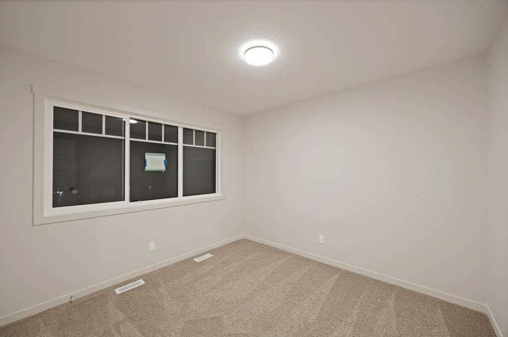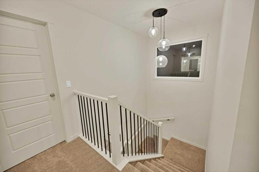 Welcome home to this stunning walkout duplex that perfectly blends modern elegance with functional design. This brand-new construction offers 1,565 square feet of meticulously crafted living space with an attached double front garage, set on a generous 3,579 square foot walkout lot that backs onto a beautiful greenspace with a pond. The main floor welcomes you with a spacious living area featuring an elegant electric fireplace, while a walkthrough pantry connects the mudroom to the gourmet kitchen. Here, stainless steel appliances, including a gas stove and chimney hood fan, shine under recessed lighting. The open-concept layout seamlessly integrates the kitchen, great room, and dining area, where large windows fill the space with natural light and create an inviting atmosphere for both everyday living and entertaining. Upstairs, the primary bedroom serves as a private retreat, complete with a luxurious four-piece ensuite and a sprawling walk-in closet that provides ample storage for your wardrobe essentials. Enjoy serene views of the pond and green space, with no adjoining backyard to interrupt the scenery. Two additional spacious bedrooms offer large windows framing picturesque views of the surrounding landscape. A conveniently located laundry room, equipped with a front-load washer and dryer, adds both comfort and practicality to your daily routine.
