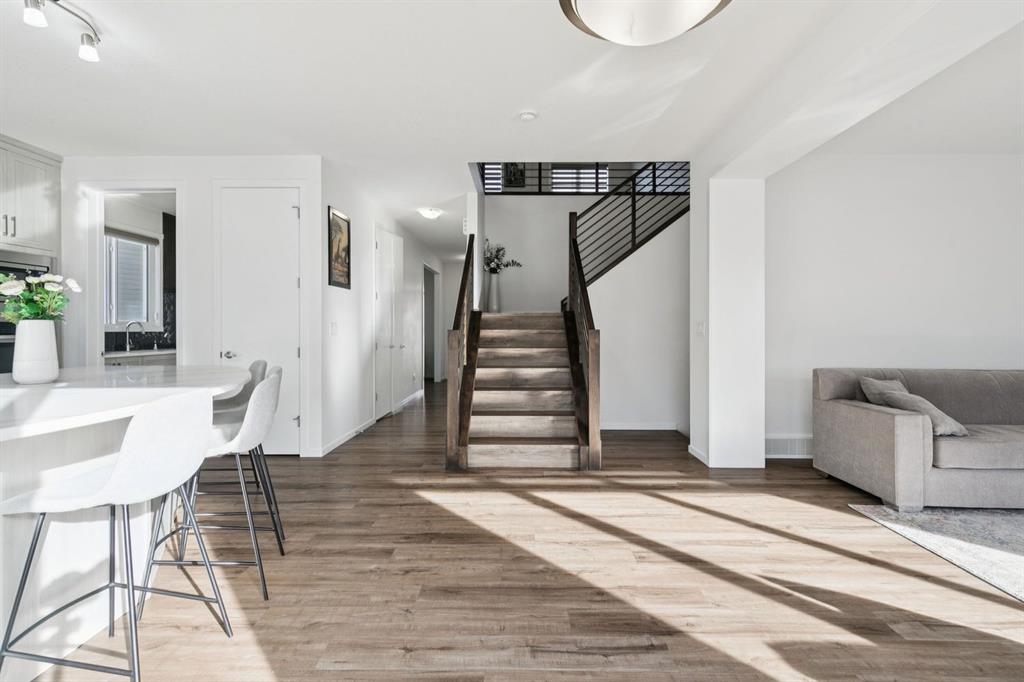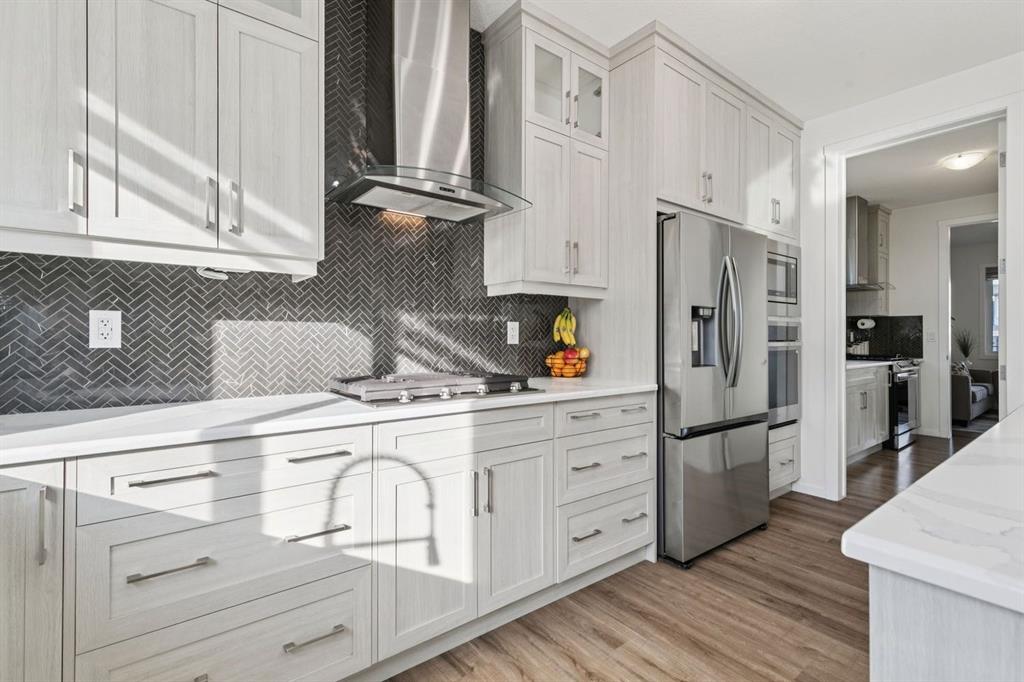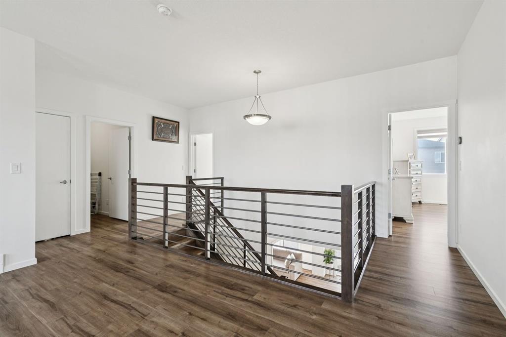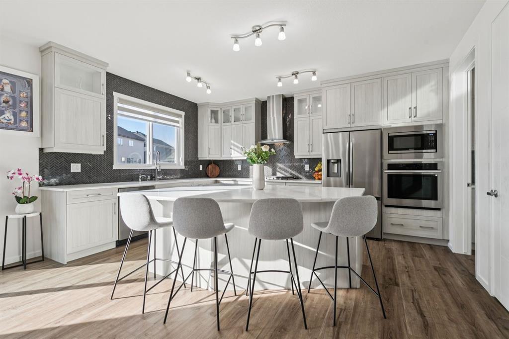 Welcome to #557 Southwinds Close SW, Airdrie, a stunning original-owner, highly upgraded family home perfectly positioned on a massive SW-facing pie lot on a quiet, low-traffic street. Offering over 2,800 sq ft above grade, 4 bedrooms, and 3.5 bathrooms, this home showcases thoughtful design, elevated finishes, and near-new condition throughout. From the moment you arrive, the charming front veranda and excellent curb appeal set the tone. Inside, you’re greeted by 9’ ceilings, 8’ interior doors, tasteful modern colours, and an open-concept layout flooded with natural light. Durable and stylish upgraded luxury vinyl plank flooring runs throughout the main and upper levels, creating a cohesive, family-friendly space. The heart of the home is the bright, chef-inspired kitchen, featuring upgraded stainless appliances, a gas cooktop, built-in oven, under-cabinet lighting, and an abundance of cabinetry and prep space. The full butler’s kitchen elevates both entertaining and daily life, complete with a second gas stove and additional storage. Overlooking the spacious dining and living areas, the living room is anchored by a gorgeous gas fireplace and enhanced by oversized windows that frame the backyard beautifully. A main-level office provides a quiet workspace, while the custom boot room with built-in bench keeps busy family life organized. The highly upgraded staircase adds architectural interest and leads you upstairs to a thoughtfully designed upper level. Upstairs, you’ll find four generously sized bedrooms, all with walk-in closets, centered around a huge bonus room—perfect for movie nights, a play area, or teen retreat. Two of the bedrooms feature private, spa-like en suite bathrooms, offering comfort and flexibility for families or guests. The upper-level laundry room adds everyday convenience. Outside, enjoy the fully fenced, oversized pie lot with southwest exposure, ideal for afternoon sun, kids at play, and future outdoor living plans. Additional highlights include custom blinds throughout, hot water to the garage, a double attached garage, and a true turn-key condition rarely found. Located in a family-friendly area, this home is close to all levels of schools, parks, and everyday amenities, with easy highway access for commuters. Future development plans include new schools and another expanded Genesis Place recreation facility, making this an even more attractive long-term investment. Thoughtfully upgraded and meticulously maintained, this home offers a perfect blend of style, function, and value. Whether you’re a growing family or a buyer seeking a move-in-ready home with modern finishes, this property delivers on every level.