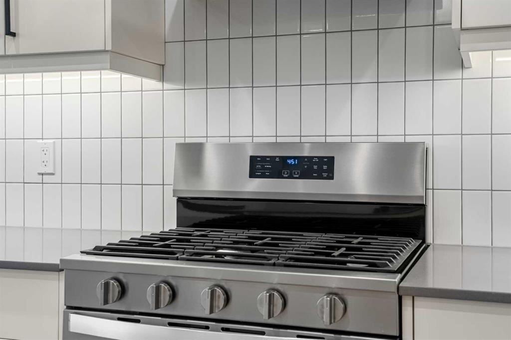 A separate side entrance leads to a lower level built on a 9’ foundation, complete with basement rough-ins—a blank canvas ready for future development. Outdoor living is equally appealing with a rear deck featuring stairs to grade and a gas line, ideal for barbecues, family gatherings, and enjoying Calgary’s summer evenings.