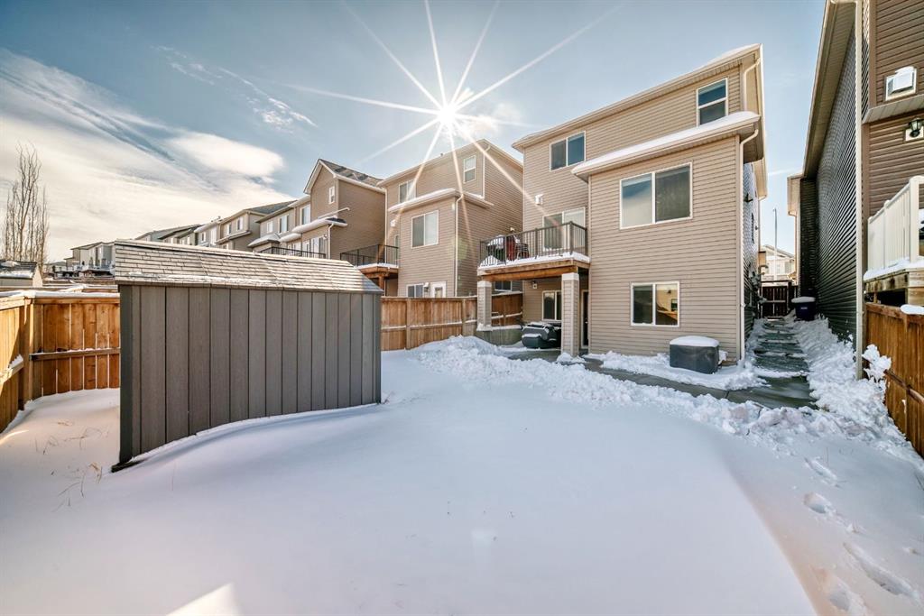 Welcome to the desirable and sought after Nolan Hill where this stunning 2-storey single family Dream home is sure to impress! Offering 3 + 1 den with, 2.5 baths, and a rare walk out fully finished 2 Bed, 1 Bath LEGAL Suite, this well-kept residence offers a perfect family environment! Check out the open-concept main floor outfitted with beautiful Hard wood flooring, walls painted with cool tones that give that warm and homey vibe, and plenty of sunshine from the large windows. Comes with a gas fireplace and Central Air conditioning. The spacious and elegant living room is attached to the nook. Spacious enough to entertain a large number of guests on any occasion next to the dining area. Be inspired to cook delicious meals in the modern kitchen with gorgeous upgraded, wood cabinetry. The house is accented by elegant drop pendant lighting, beautiful stainless steel kitchen appliances, and quartz counters throughout the home. Sliding doors in the dining area lead to a generous sized luxurious vinyl deck, ready with gas line for your barbecue grill! Imagine setting a table and some comfy chairs to create a perfect corner to unwind during sunny afternoons all overlooking the large private fenced landscaped backyard (Concrete and Grass). Over a Covered patio ideal for family entertainment . A 2pc powder room completes the main level. Upstairs, is a cozy great room ideal for any kind of recreational activities with the family. Your private space awaits in the massive primary bedroom featuring a walk-in closet and a spa-like 5 pc ensuite with a large soaking tub. There are 2 more good-sized bedrooms on this floor plus a convenient upper-level separate laundry room. Plenty of windows on all levels provide natural light throughout. The fully finished LEGAL basement is well designed and has a separate Walk out entrance complete with a living room and 2 bedrooms with an opportunity for extra income, comes with a 4 pc bathroom, and its laundry (washer and dryer). Extra storage area is provided with the vinyl outdoor Shed. There’s more space in the private landscaped yard, So much space you can even set up a Gazebo Canopy! Perfect for hosting family and friends. Newly replaced Roof- with Malarkey Class IV asphalt Hail Resistant Shingles. Spacious double attached garage that can house 2 cars with extra storage room. Plus a concrete driveway for 2 more parking. Located conveniently close to schools, transit, shopping, and all other amenities, this gem and rare find home provides all the elements for relaxing and comfortable living. Real value in this move-in-ready DREAM home that checks off all the boxes, in a terrific neighborhood! Call to book your appointment today!