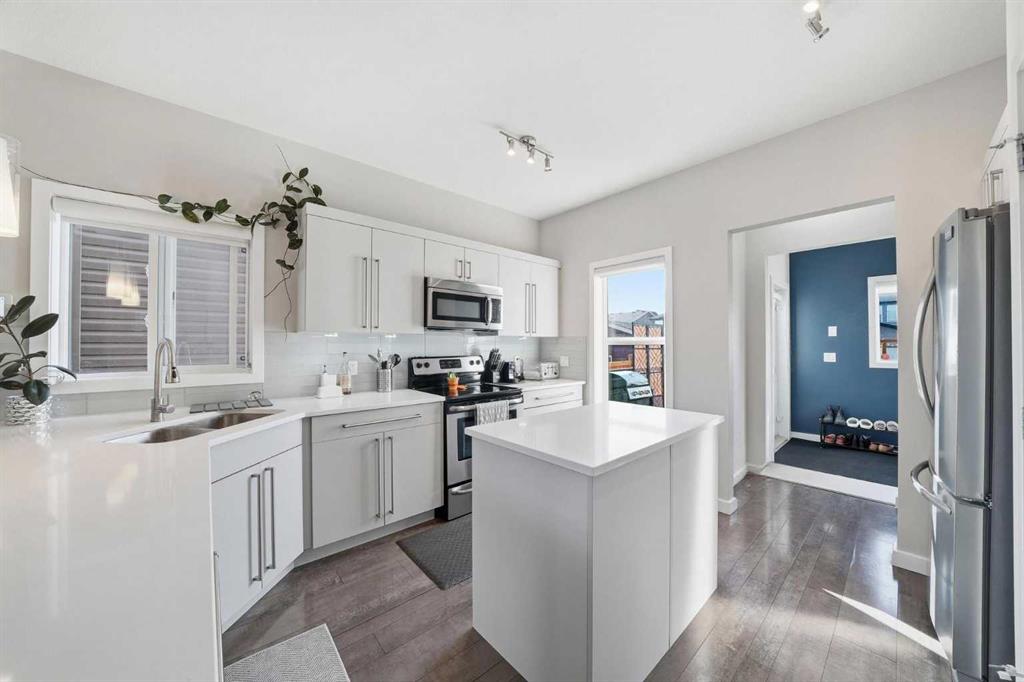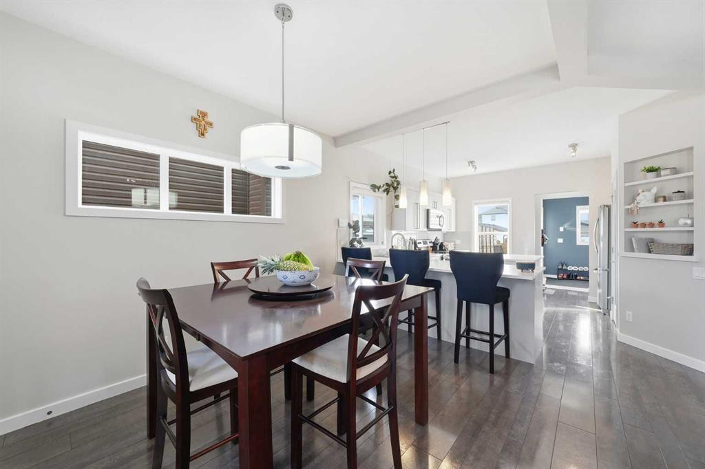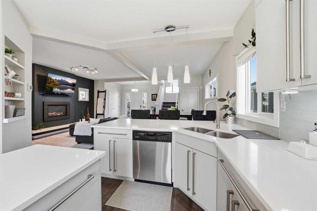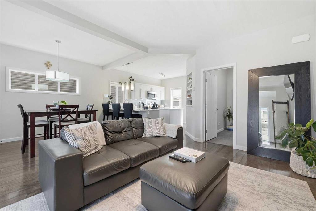 Experience the perfect blend of style and practicality in this ~1,809 sq. ft. home, masterfully crafted by McKee Homes. Situated in the heart of Ravenswood, Airdrie’s premier southeast community, this residence is designed for families who value quality construction and a connected lifestyle. The moment you step onto the spacious front veranda, you’ll feel the “home” vibe. Inside, a grand entrance leads to a bright, open-concept living area where large windows flood the space with natural light. The living room serves as a true centerpiece, featuring a cozy fireplace set against a stunning accent wall. For the modern professional, a dedicated main-floor office/den provides a quiet workspace away from the main hustle. Tucked away for privacy is a stylish half-bathroom, leading toward the home’s operational hub: a huge mudroom that keeps the family organized and the clutter out of sight. Retreat upstairs to find a layout that prioritizes both relaxation and togetherness. The second-floor family room is a versatile escape for movie nights or kid-friendly play space. The sleeping quarters include three generous bedrooms, highlighted by a primary suite complete with a private en-suite. Step out from the dining area onto a good-sized rear deck, perfect for summer BBQs while overlooking the yard and the convenient parking pad. Living in Ravenswood means you are steps away from: Education: Walking distance to École Francophone d’Airdrie and Heloise Lorimer School. Amenities: Minutes from Kingsview Market for all your shopping and dining needs. Active Lifestyle: Explore the neighborhood’s famous manicured green corridors, playgrounds, and kilometers of winding walking paths. This McKee-built beauty combines high-end design with the everyday utility a growing family needs. Don’t miss your chance to join one of Airdrie’s most vibrant communities!