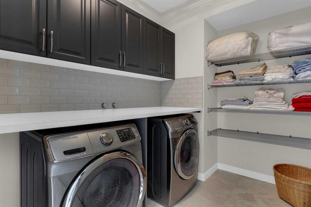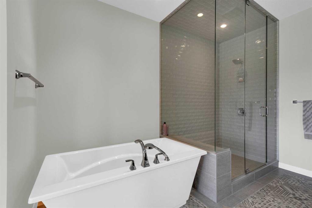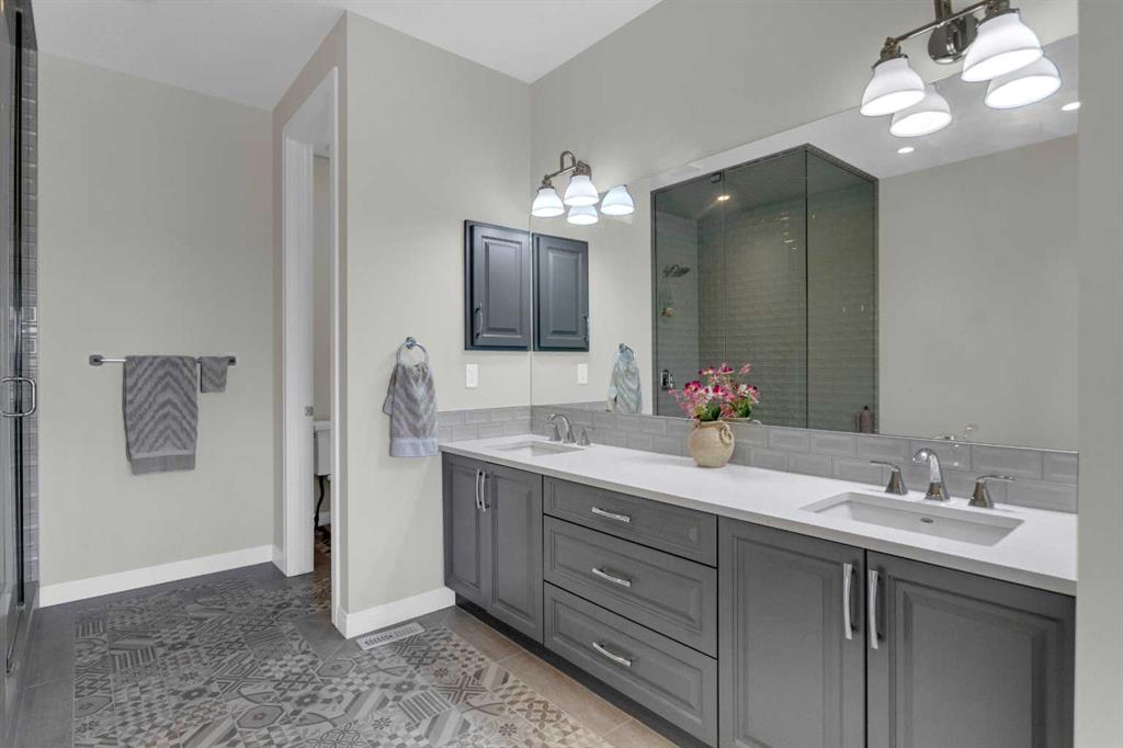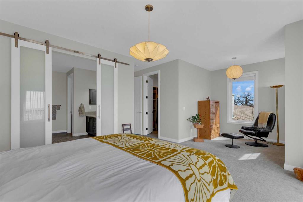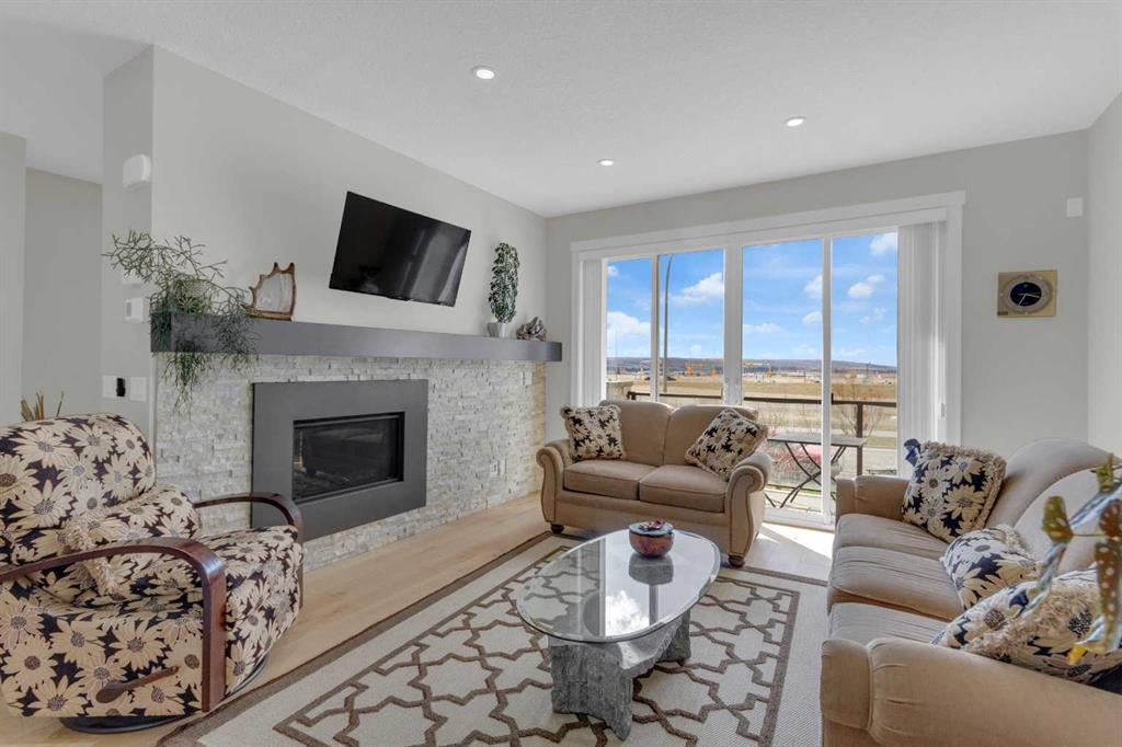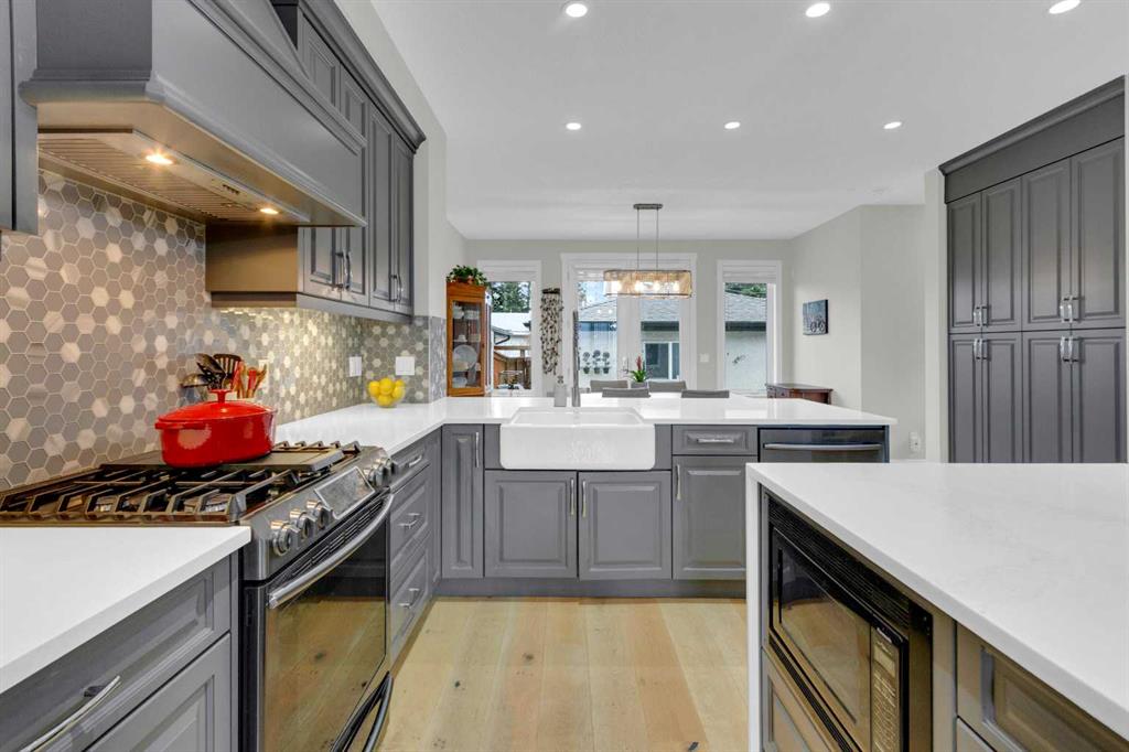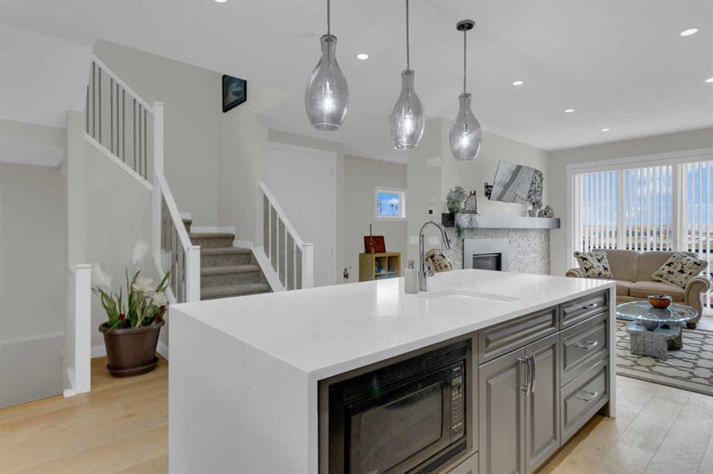 Welcome to this exceptional, upgraded home in the sought-after community of LAKEVIEW, offering MOUNTAIN VIEWS and an unbeatable lifestyle near parks, pathways, and top amenities. The main floor impresses with 9’ CEILINGS, WIDE PLANK HARDWOOD FLOORING, and abundant natural light from OVERSIZED WINDOWS. Designed for both everyday living and entertaining, the open-concept layout is anchored by a stunning CHEF’S KITCHEN, truly the heart of the home. Anchored by a massive WATERFALL QUARTZ ISLAND and an additional L-shaped counter, this space offers exceptional prep area and countertop SEATING FOR UP TO 10, creating the perfect gathering place for family and friends. Highlights include both a PREP SINK AND SECOND FARMHOUSE SINK, CEILING-HEIGHT CABINETRY, and a full suite of stainless-steel appliances including a GAS RANGE and French door refrigerator. The custom hood fan blends seamlessly with the cabinetry, while striking pendant lighting and a stylish backsplash add a polished, designer finish. With an abundance of cabinetry and thoughtfully designed storage throughout, this kitchen delivers both beauty and function at an impressive scale. The living room showcases a FULL WALL GAS FIREPLACE with impressive stonework, and opens to a spacious FRONT DECK with ELECTRIC AWNING and WEST-FACING MOUNTAIN VIEWS. The dining area easily accommodates a large table and flows seamlessly to the backyard through double FRENCH DOORS, creating effortless indoor-outdoor living. At the rear, A MUDROOM WITH BUILT-IN STORAGE, powder room, and BUILT-IN DESK AREA—perfect for keeping daily life organized. Upstairs, the luxurious primary retreat is a true sanctuary, featuring MOUNTAIN VIEWS, a private JULIET BALCONY, and a versatile SITTING AREA ideal for reading, working, or relaxing. The ensuite includes HEATED TILE FLOORS, a STANDALONE SOAKER TUB, oversized GLASS SHOWER WITH BENCH, PRIVATE WATER CLOSET, and a DOUBLE VANITY with ample storage. The DREAM WALK-IN CLOSET is beautifully designed with CUSTOM SHELVING, CABINETRY, and SHOE STORAGE. Two additional spacious bedrooms with large windows, a full 5-PIECE MAIN BATHROOM with double vanity, and a well-appointed laundry room with abundant storage round out the upper level. The backyard is ready for summer entertaining with a LARGE CONCRETE PATIO and gas BBQ hookup. A DOUBLE DETACHED GARAGE with its OWN ELECTRICAL PANEL adds convenience and functionality. The undeveloped basement offers future potential with a bathroom rough-in. Additional features include roof top SOLAR PANELS and AIR CONDITIONING. Ideally located within walking distance to NORTH GLENMORE PARK, the GLENMORE RESERVOIR, and extensive pathway systems, this home is perfect for outdoor enthusiasts. Enjoy easy access to TOP-RATED SCHOOLS, shopping, Mount Royal University, and major routes including Glenmore Trail, Sarcee Trail, and the ring road—MAKING COMMUTING AROUND THE CITY OR ESCAPING TO THE MOUNTAINS EFFORTLESS. VIEW THE VIRTUAL TOUR FOR THE FULL EXPERIENCE!!