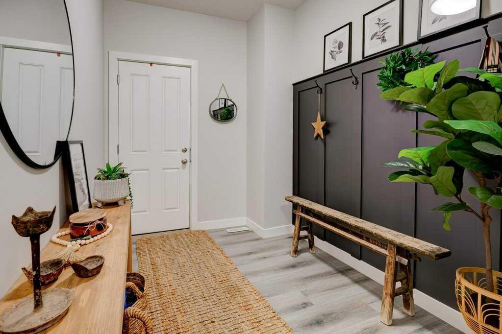 The main floor’s open concept layout is bright and airy, anchored by a designer kitchen with quartz counters, a large island, and quality finishes. Even the flooring and tile have been upgraded, adding style and durability throughout. A welcoming front porch, custom feature walls, and a rear mud room leading to the attached garage add both function and flair.