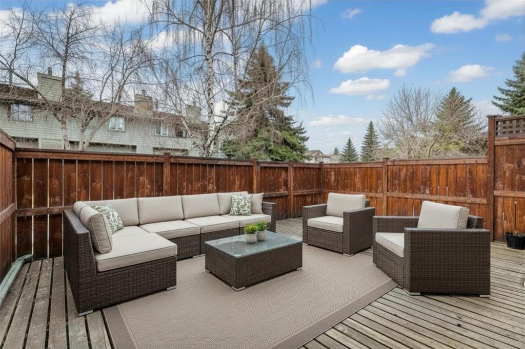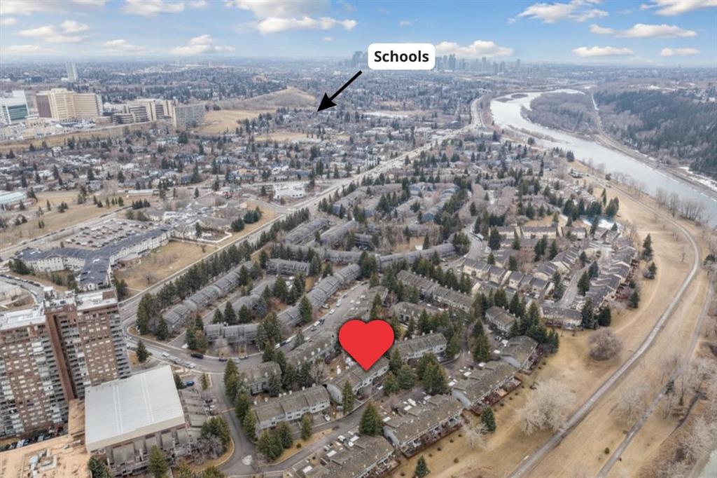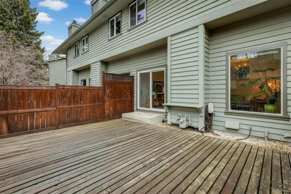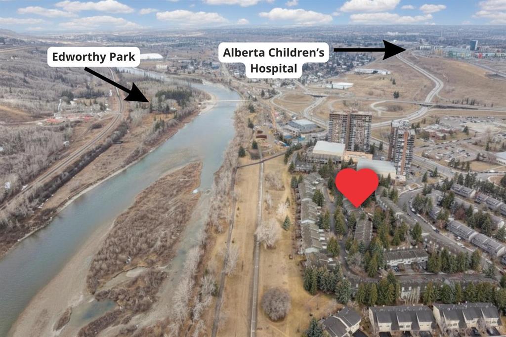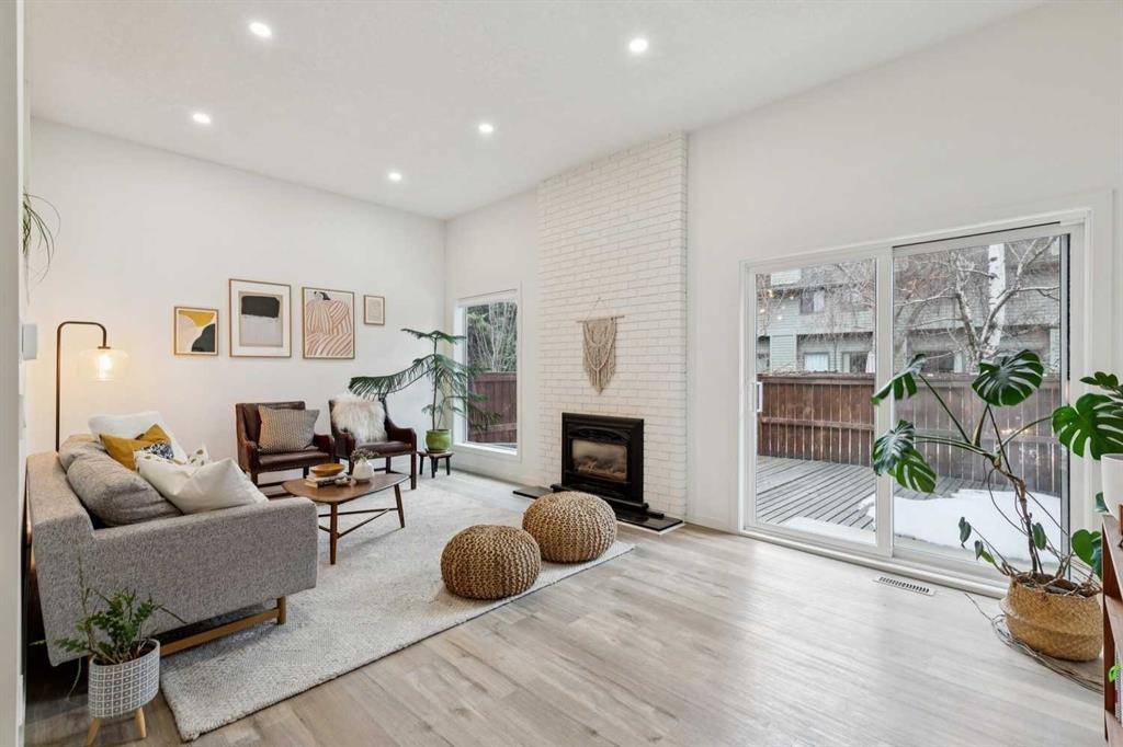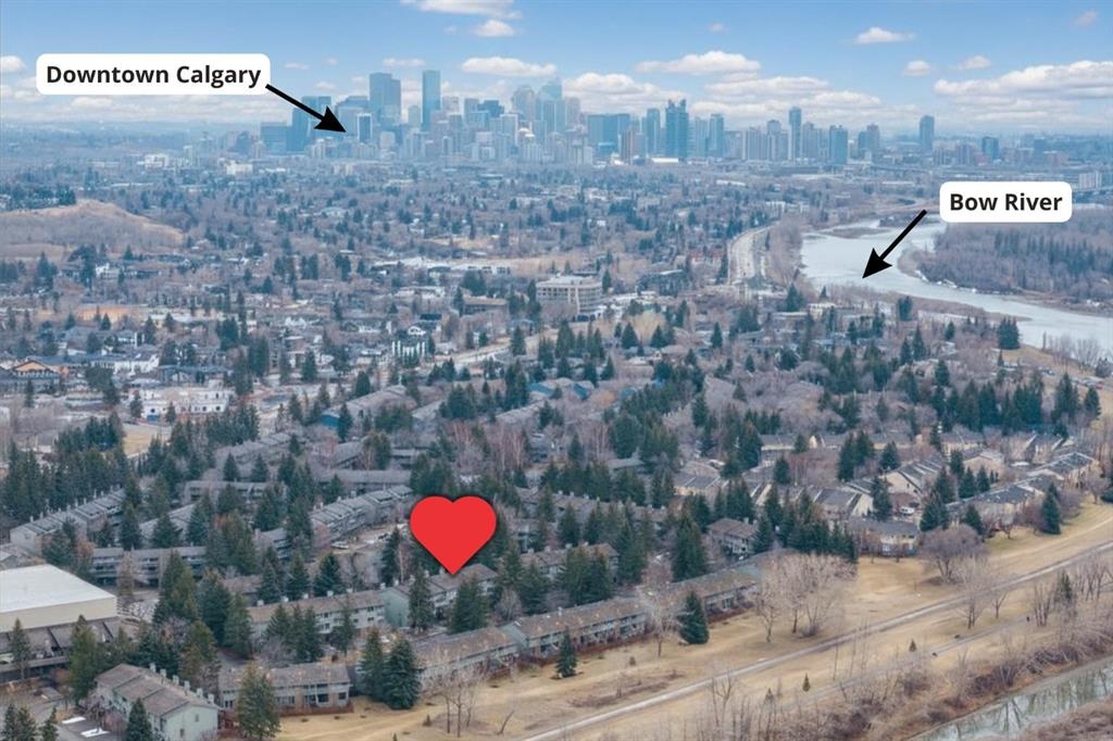 Completely renovated from top to bottom, this high-quality, stylish townhouse offers a rare blend of modern design, thoughtful upgrades, and an unbeatable location with greenspace behind and just one row from the scenic pathways of the Bow River. Featuring a single attached garage with brand-new epoxy flooring and a driveway, this home has been refreshed throughout, including all new windows, creating a truly move-in ready experience. Inside, the main level impresses with a dramatic 2-storey ceiling in the living room, anchored by a cozy gas fireplace and finished with durable LVP flooring, while patio doors lead to a private, FULLY FENCED BACKYARD. The adjacent kitchen and dining area are equally striking, showcasing beautiful updates with a large island with breakfast bar, stainless steel appliances including an oven that has barely been used, stone countertops and backsplash, custom cabinetry, floating open shelves, a large walk-in pantry, and a charming bay window with cafĂ©-style seating, perfect for morning coffee or a work-from-home nook. The dining space features a custom built-in bench, adding both style and function. Also on this level, the show-stopping half bathroom is beautifully finished with tile flooring, granite countertops, bold black walls, and unique, modern design details with updated fixtures throughout. Upstairs, you will find 3 well-sized bedrooms and 2 full bathrooms, including a spacious primary retreat with a large walk-in closet complete with built-ins, new window coverings, and a private, treed outlook with mature evergreens. The ensuite offers double sinks, granite counters, tile flooring, and a large, gorgeous tiled shower, while the secondary bathroom includes a tub/shower combo and granite countertops. The fully finished basement extends your living space with LVP flooring, laundry, a flex room, and convenient under-stair storage. A welcoming front patio sitting area adds to the home’s charm, while the surrounding community offers a unique, nature-filled setting with mature trees throughout, easy access to downtown, the Children’s Hospital, the Foothills Hospital, and quick routes west to the mountains – making this an exceptional opportunity for those seeking both lifestyle and location. The maintenance fees are some of the lowest in the neighbourhood!