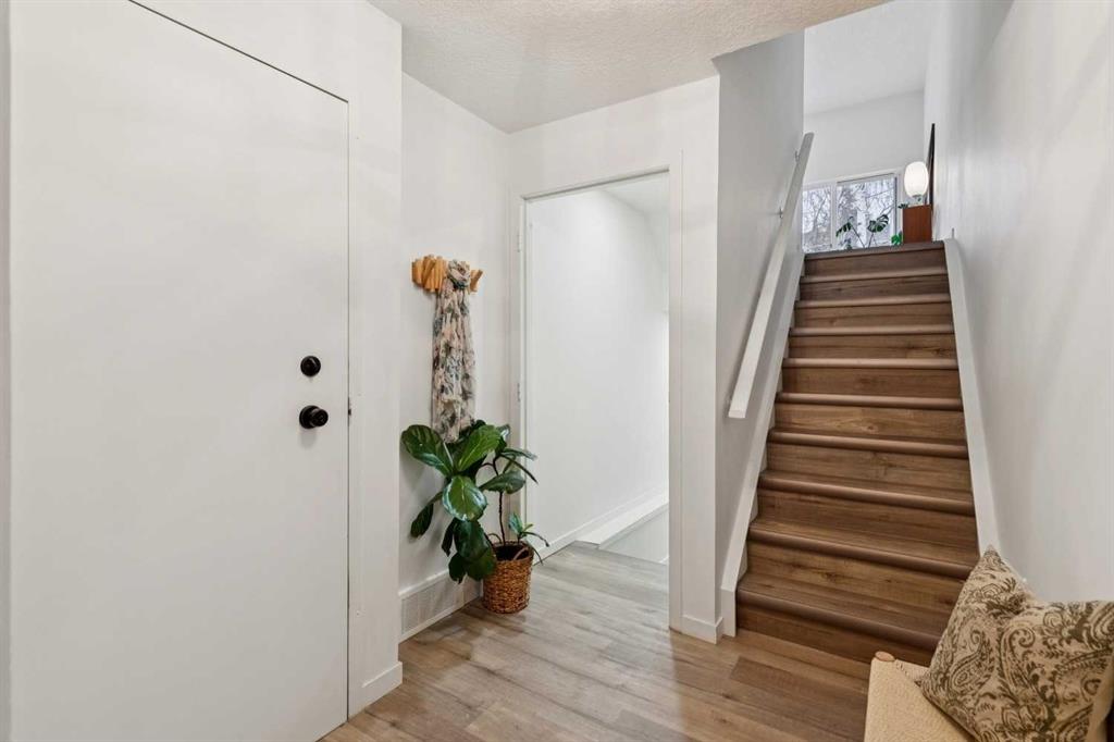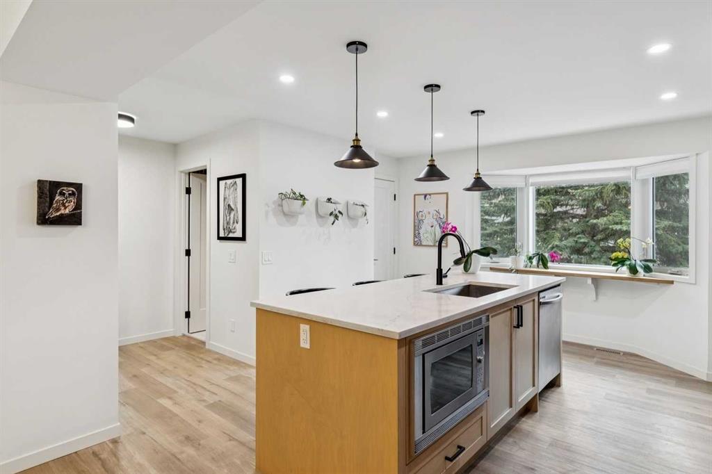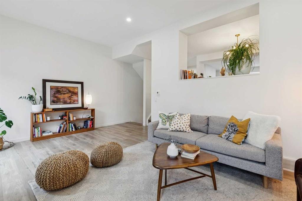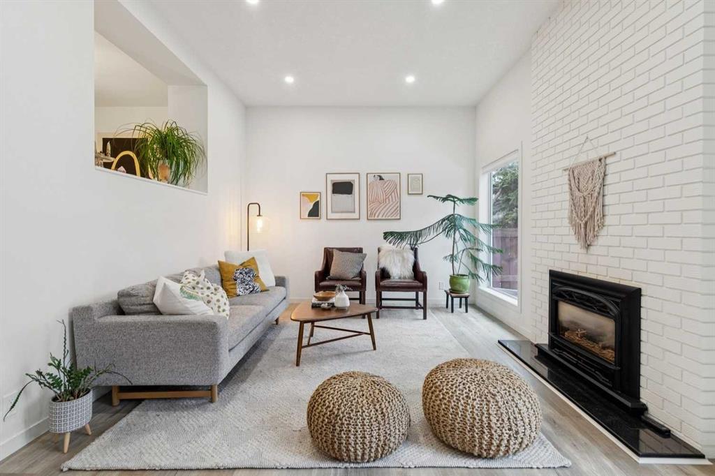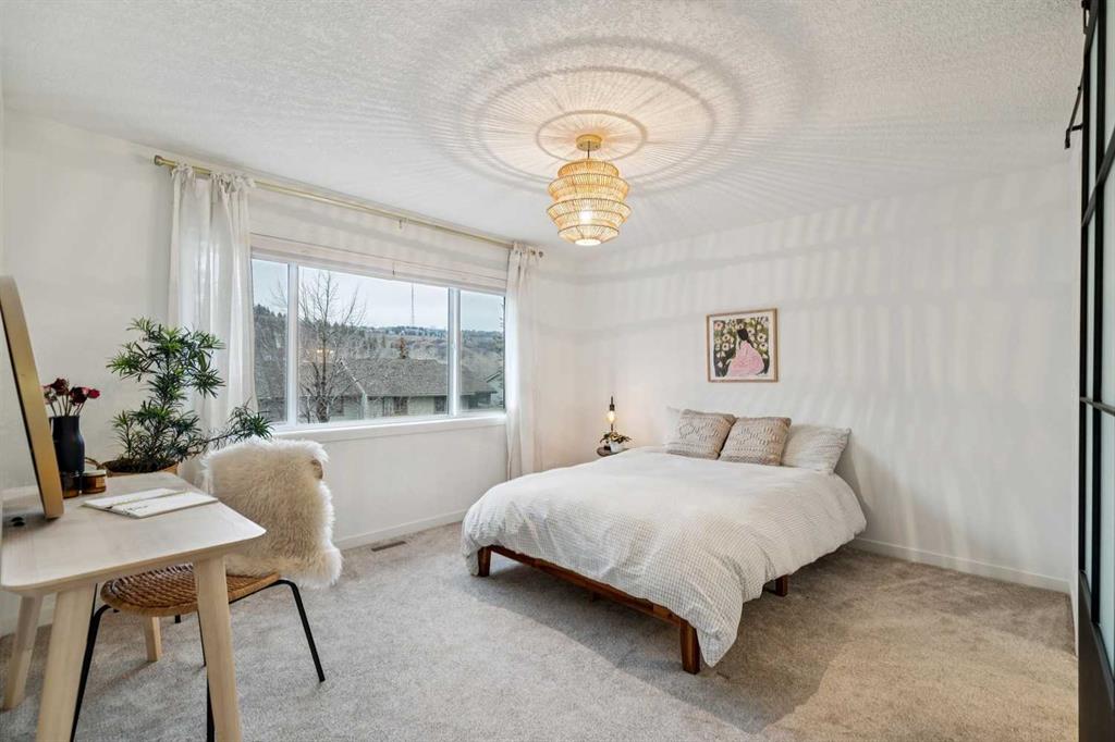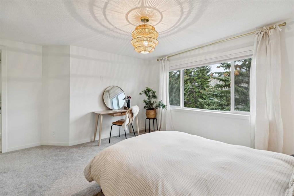 Completely renovated from top to bottom, this high-quality, stylish townhouse offers a rare blend of modern design, thoughtful upgrades, and an unbeatable location with greenspace behind and just one row from the scenic pathways of the Bow River. Featuring a single attached garage with brand-new epoxy flooring and a driveway, this home has been refreshed throughout, including all new windows, creating a truly move-in ready experience. Inside, the main level impresses with a dramatic 2-storey ceiling in the living room, anchored by a cozy gas fireplace and finished with durable LVP flooring, while patio doors lead to a private, FULLY FENCED BACKYARD. The adjacent kitchen and dining area are equally striking, showcasing beautiful updates with a large island with breakfast bar, stainless steel appliances including an oven that has barely been used, stone countertops and backsplash, custom cabinetry, floating open shelves, a large walk-in pantry, and a charming bay window with cafĂ©-style seating, perfect for morning coffee or a work-from-home nook. The dining space features a custom built-in bench, adding both style and function. Also on this level, the show-stopping half bathroom is beautifully finished with tile flooring, granite countertops, bold black walls, and unique, modern design details with updated fixtures throughout. Upstairs, you will find 3 well-sized bedrooms and 2 full bathrooms, including a spacious primary retreat with a large walk-in closet complete with built-ins, new window coverings, and a private, treed outlook with mature evergreens. The ensuite offers double sinks, granite counters, tile flooring, and a large, gorgeous tiled shower, while the secondary bathroom includes a tub/shower combo and granite countertops. The fully finished basement extends your living space with LVP flooring, laundry, a flex room, and convenient under-stair storage. A welcoming front patio sitting area adds to the home’s charm, while the surrounding community offers a unique, nature-filled setting with mature trees throughout, easy access to downtown, the Children’s Hospital, the Foothills Hospital, and quick routes west to the mountains – making this an exceptional opportunity for those seeking both lifestyle and location. The maintenance fees are some of the lowest in the neighbourhood!