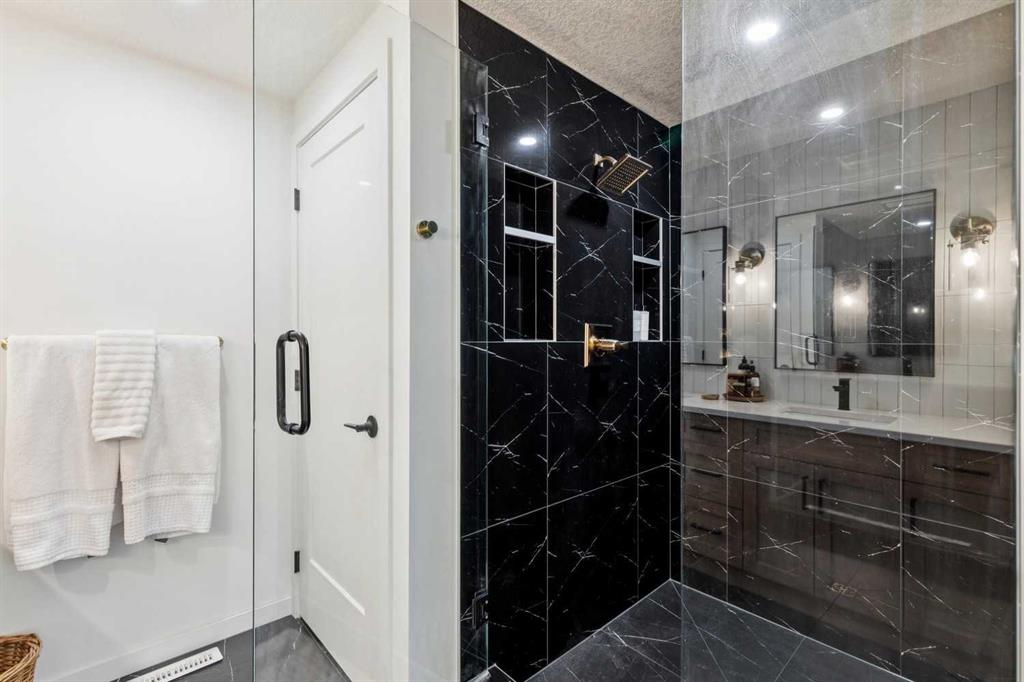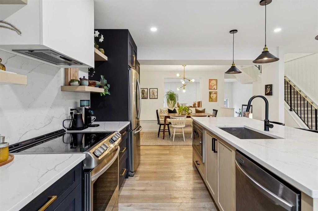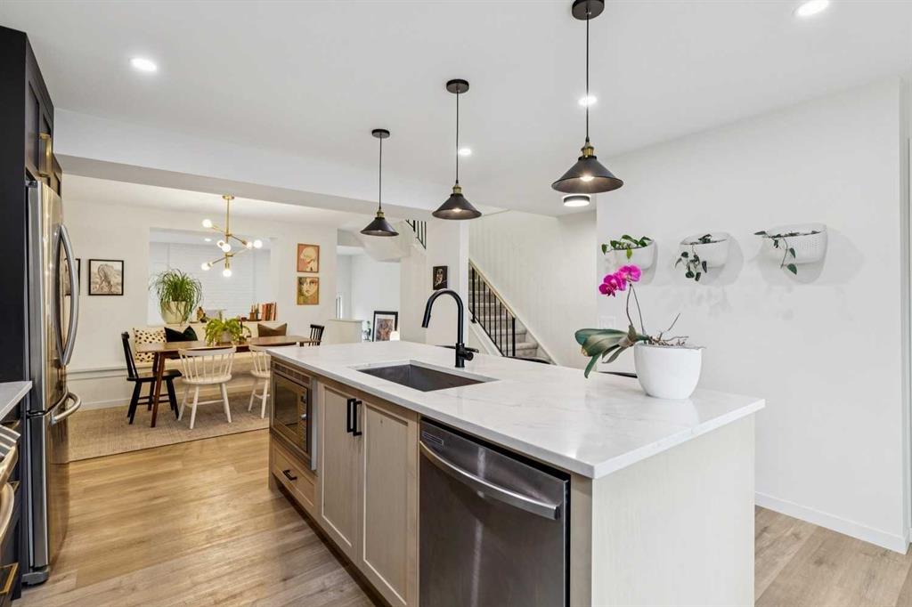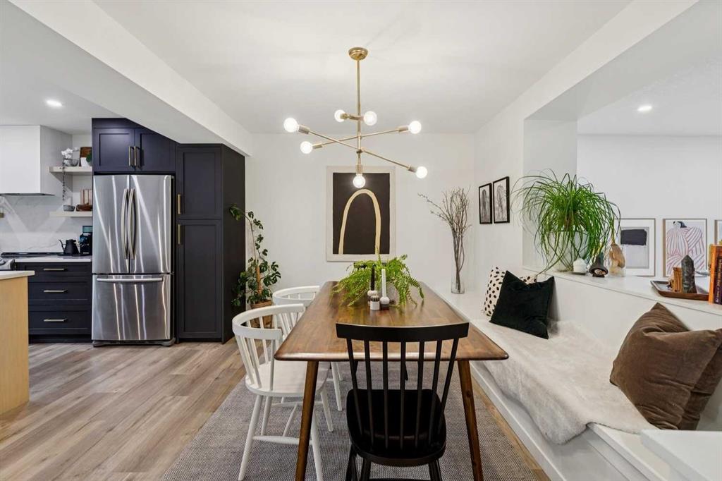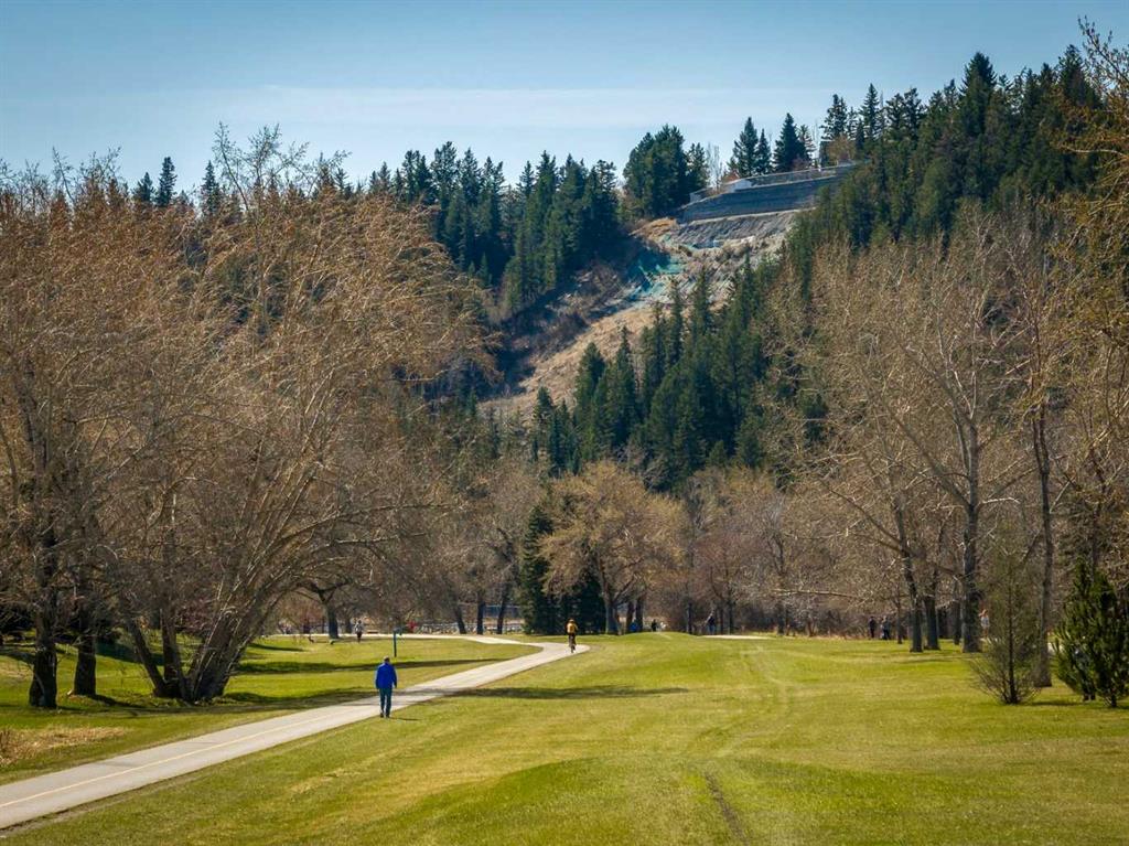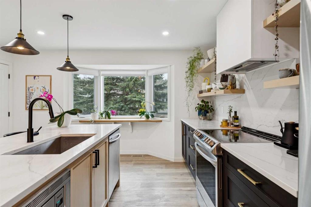 Completely renovated from top to bottom, this high-quality, stylish townhouse offers a rare blend of modern design, thoughtful upgrades, and an unbeatable location with greenspace behind and just one row from the scenic pathways of the Bow River. Featuring a single attached garage with brand-new epoxy flooring and a driveway, this home has been refreshed throughout, including all new windows, creating a truly move-in ready experience. Inside, the main level impresses with a dramatic 2-storey ceiling in the living room, anchored by a cozy gas fireplace and finished with durable LVP flooring, while patio doors lead to a private, FULLY FENCED BACKYARD. The adjacent kitchen and dining area are equally striking, showcasing beautiful updates with a large island with breakfast bar, stainless steel appliances including an oven that has barely been used, stone countertops and backsplash, custom cabinetry, floating open shelves, a large walk-in pantry, and a charming bay window with cafĂ©-style seating, perfect for morning coffee or a work-from-home nook. The dining space features a custom built-in bench, adding both style and function. Also on this level, the show-stopping half bathroom is beautifully finished with tile flooring, granite countertops, bold black walls, and unique, modern design details with updated fixtures throughout. Upstairs, you will find 3 well-sized bedrooms and 2 full bathrooms, including a spacious primary retreat with a large walk-in closet complete with built-ins, new window coverings, and a private, treed outlook with mature evergreens. The ensuite offers double sinks, granite counters, tile flooring, and a large, gorgeous tiled shower, while the secondary bathroom includes a tub/shower combo and granite countertops. The fully finished basement extends your living space with LVP flooring, laundry, a flex room, and convenient under-stair storage. A welcoming front patio sitting area adds to the home’s charm, while the surrounding community offers a unique, nature-filled setting with mature trees throughout, easy access to downtown, the Children’s Hospital, the Foothills Hospital, and quick routes west to the mountains – making this an exceptional opportunity for those seeking both lifestyle and location. The maintenance fees are some of the lowest in the neighbourhood!
