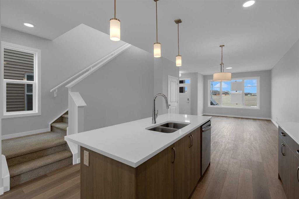 4 BEDROOMS ABOVE GRADE, WALK OUT BASEMENT that is roughed in for LEGAL 2 BEDROOM SUITE (with city permits and approvals). Introducing the COHEN: an amazing, BRAND NEW attached home by EXCEL HOMES offering 1735 SF above grade of upgraded luxury! Nestled in the vibrant Northwest community of Carrington. Step into a life of luxury and convenience with this stunning residence, where every detail has been meticulously crafted for comfort and style. Enjoy the benefits of living in an established neighborhood that brings a plethora of amenities right to your doorstep, along with swift access to major highways. Enjoy the local pathways, environmental reserve – central pergola & seating areas and mixed level playground w/basketball court, skate park & more.! The COHEN offers a sprawling 1735 square feet of thoughtfully designed living space, perfect for both families and entertaining. The open floor plan, complemented by neutral designer tones, creates a welcoming atmosphere that is both elegant and comfortable. The chef-quality kitchen stands as the heart of the home, equipped with an abundance of cabinets, pot/pan drawers, and upgraded stainless steel appliances. The expansive engineered stone countertops, a large island with seating, and a convenient pantry make it a dream kitchen for those who love to cook and entertain. The main floor also features versatile luxury vinyl plank flooring. Uniquely ON THE MAIN FLOOR, you’ll find a BEDROOM & FULL 4 PCE BATHROOM. Ascend to the second level where leisure meets luxury in the large central bonus room with vaulted ceilings — ideal for movie nights and family gatherings. The primary bedroom is a true retreat, boasting a walk-in closet and a spa-like ensuite with stone vanity tops. Additionally, two more generously sized bedrooms provide ample space and easy access to the main bathroom. The convenience continues with a laundry room (w/folding counter), strategically located on the same floor. The possibilities extend into the partially developed WALKOUT basement that has separate ENTRY & ROUGH IN’S FOR a LEGAL 2 BEDROOM suite (subject to city permits and approvals)…all the electrical, drywall, utilities & plumbing rough ins are in place. You’ll find a pressure treated deck w/aluminum railings accessible from your kitchen! This home includes a 20 x 20 gravel parking pad and sod to the front & backyard. Don’t miss the chance to own this never-lived-in gem with quick possession available. Experience the blend of luxury, comfort, and convenience in Livingston—welcome to your new dream home at the COHEN.